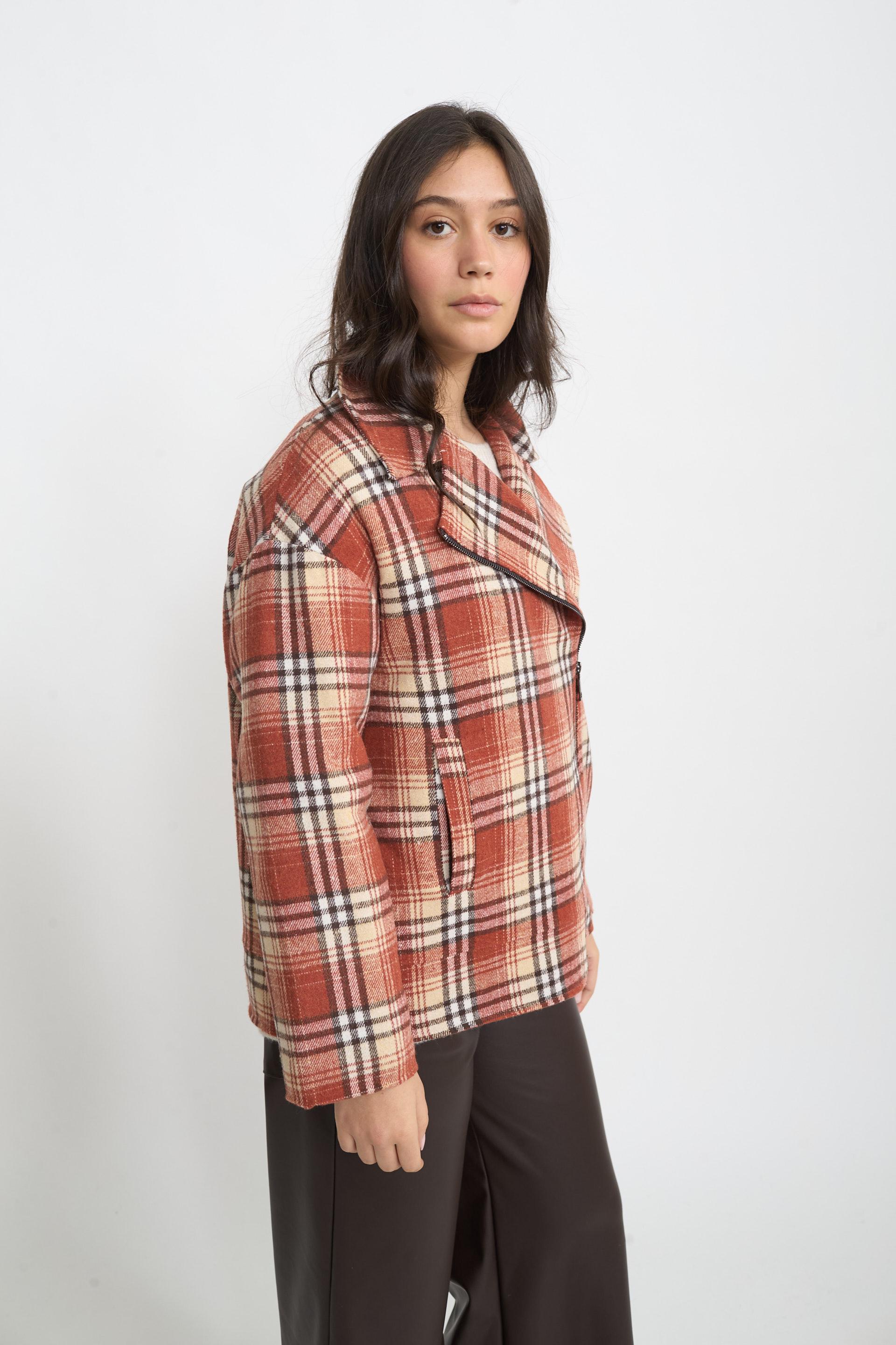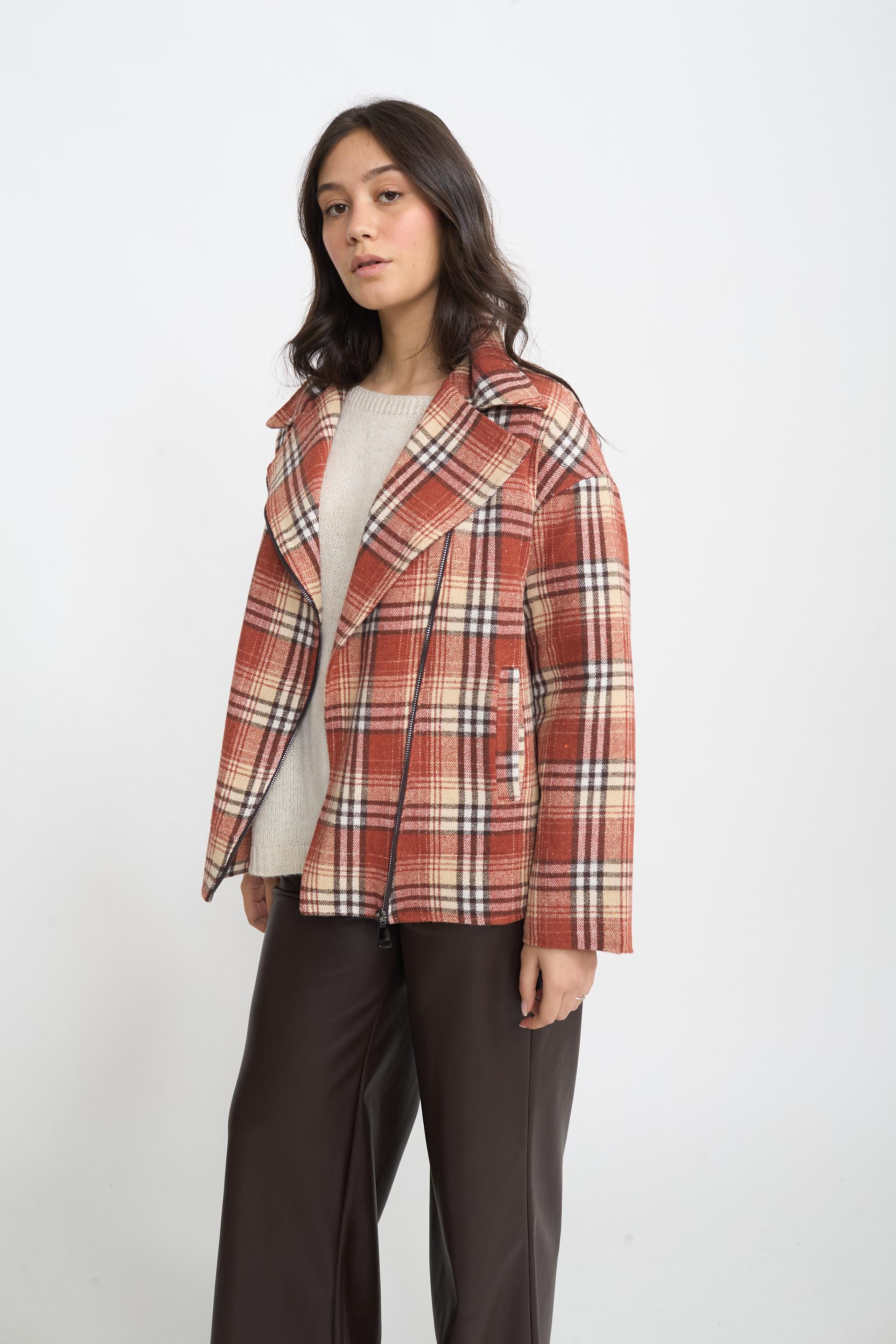 | Blazer over imbottito in tessuto a quadri con chiusura obbliqua tramite zip. Tasche laterali e fodera interna. | ||