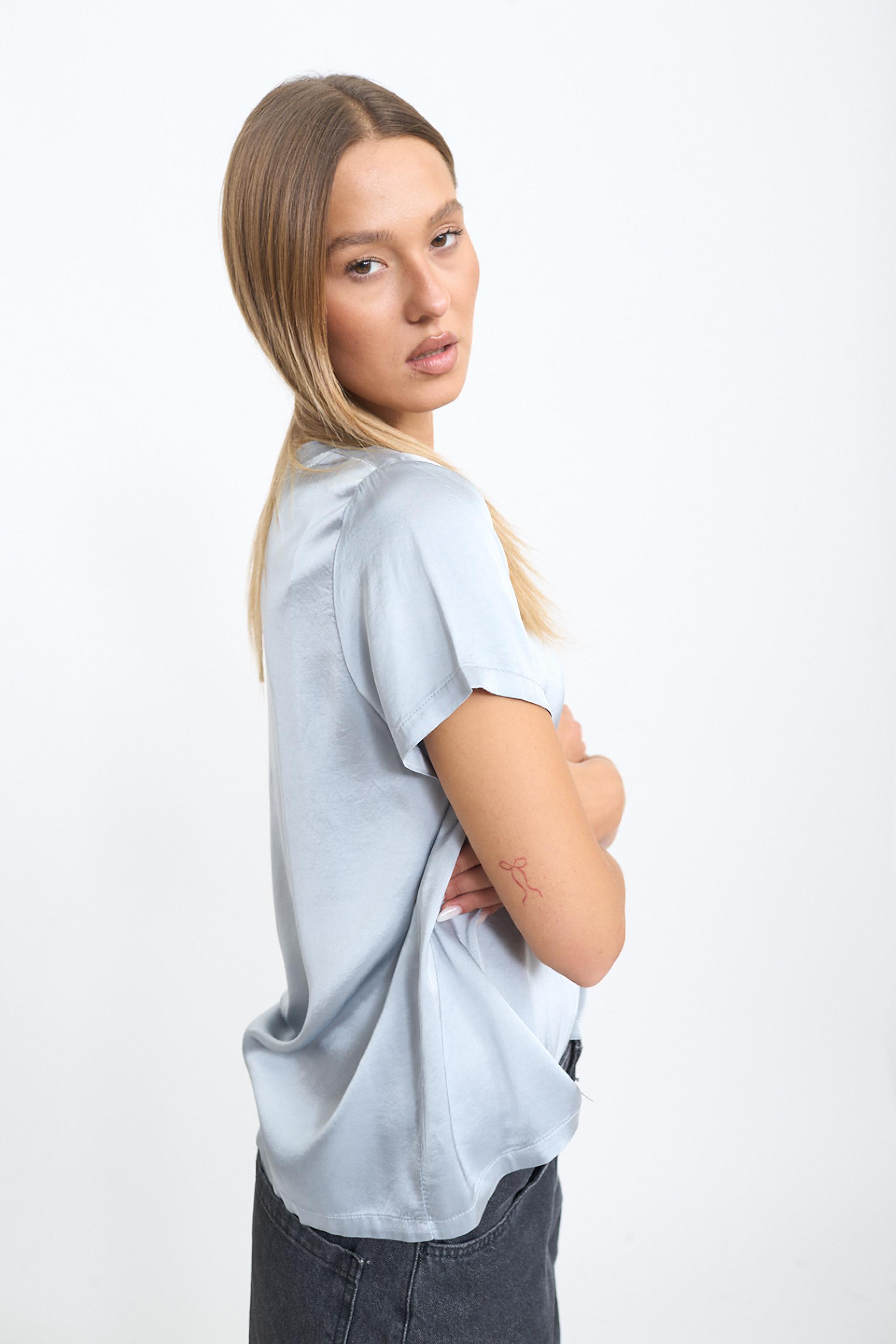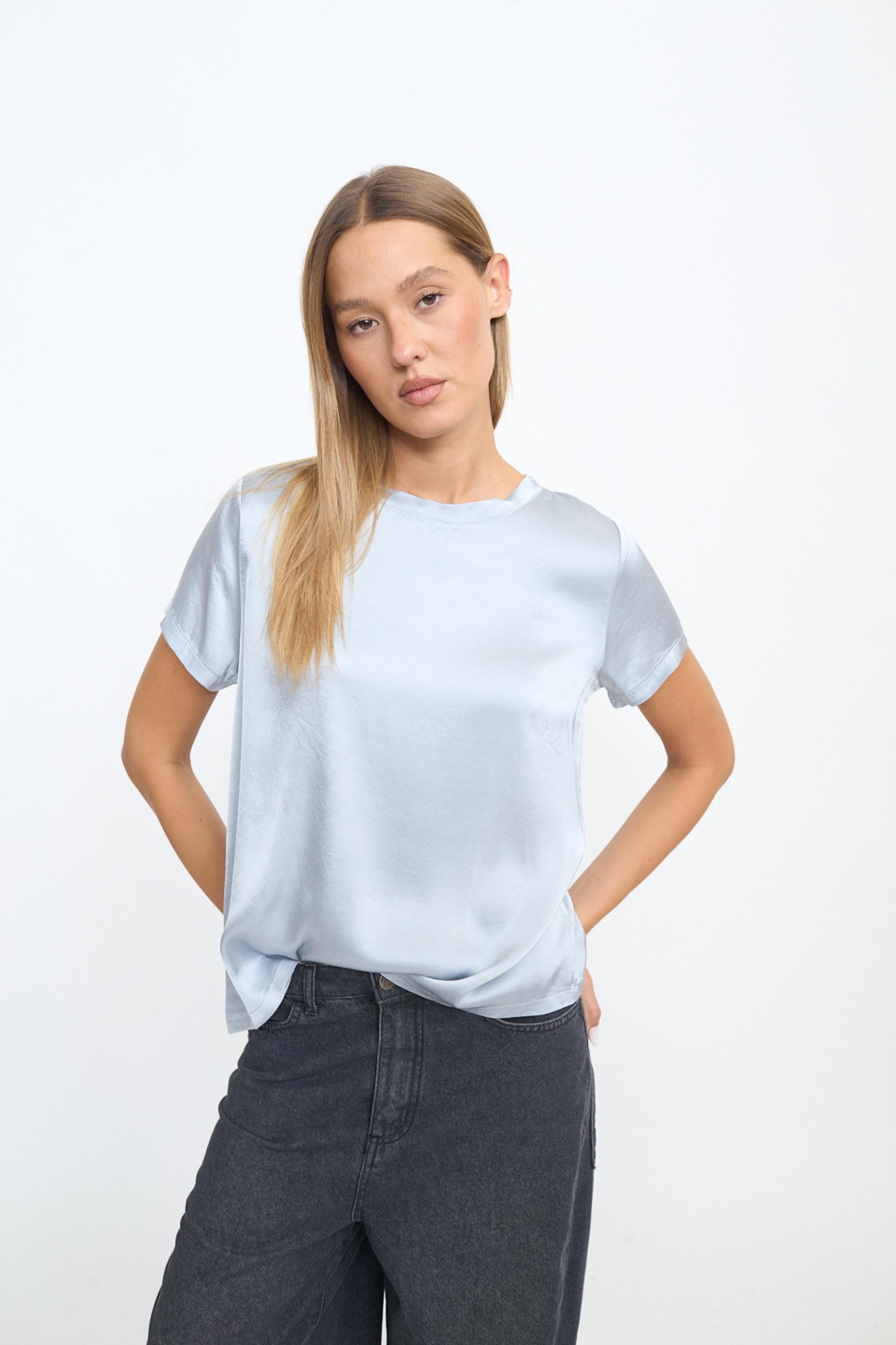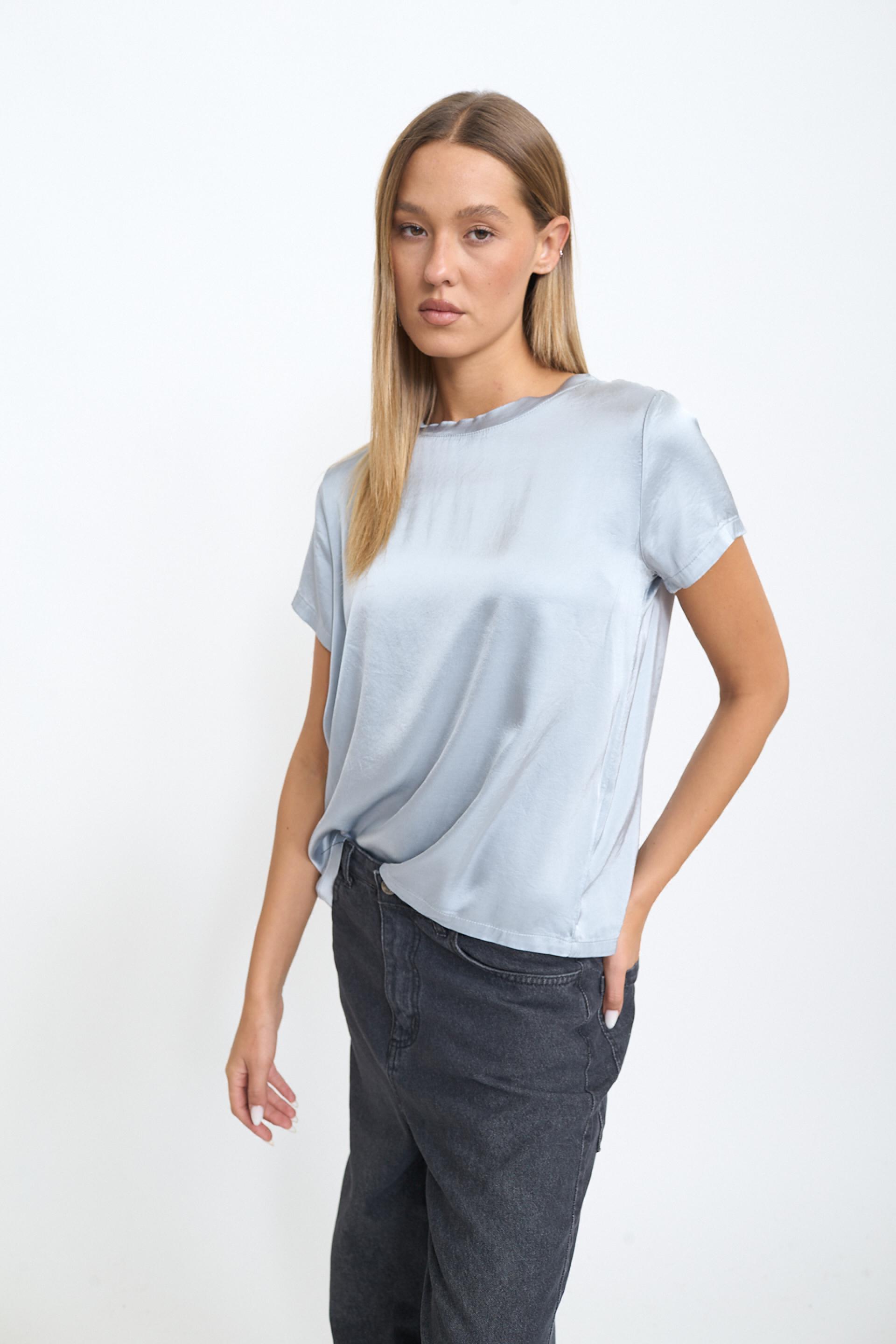 | Blusa 1/2 manica scollo rotondo in raso di viscosa tinta unita. | ||