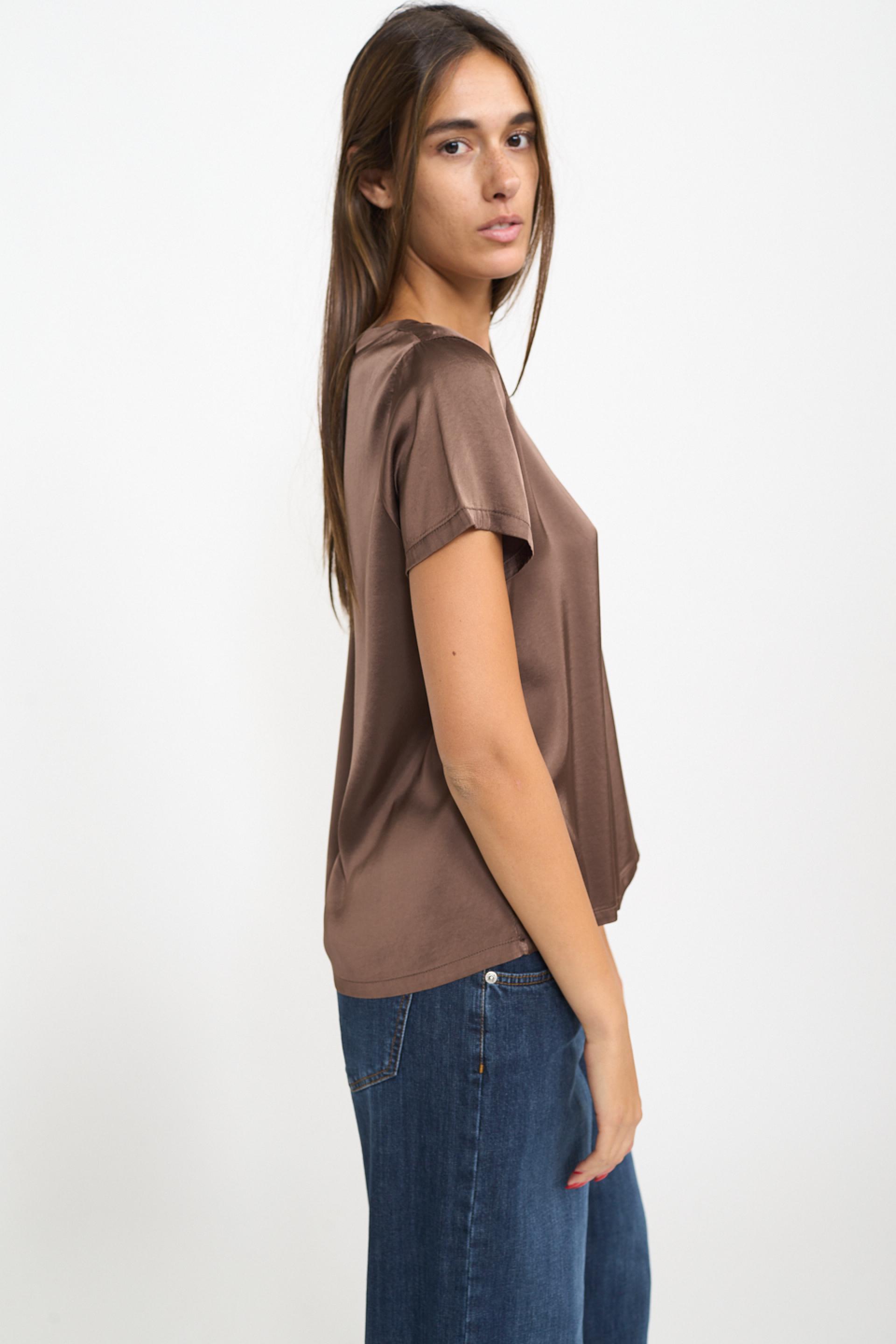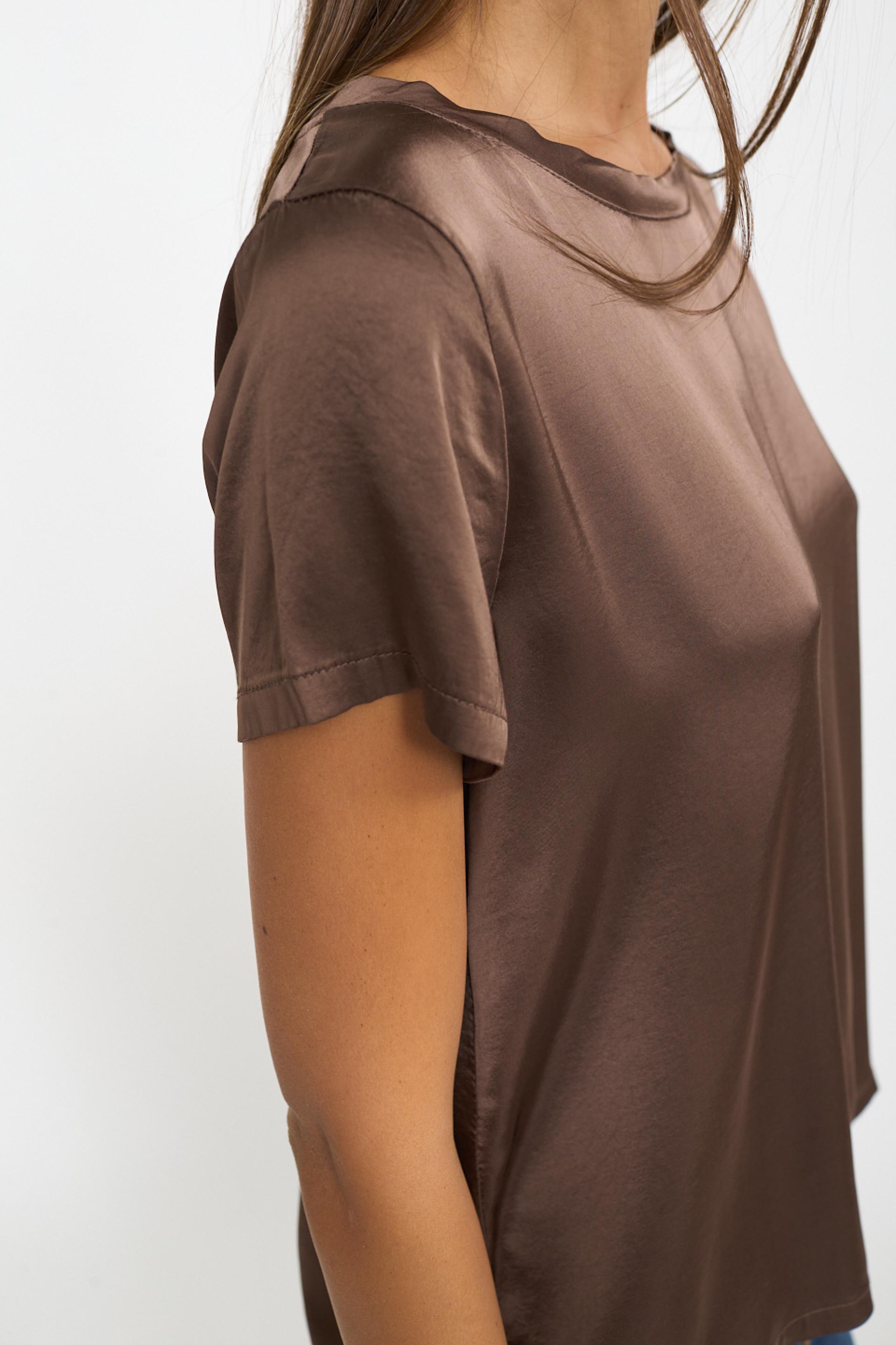 | Blusa 1/2 manica scollo rotondo in raso di viscosa tinta unita. | ||
