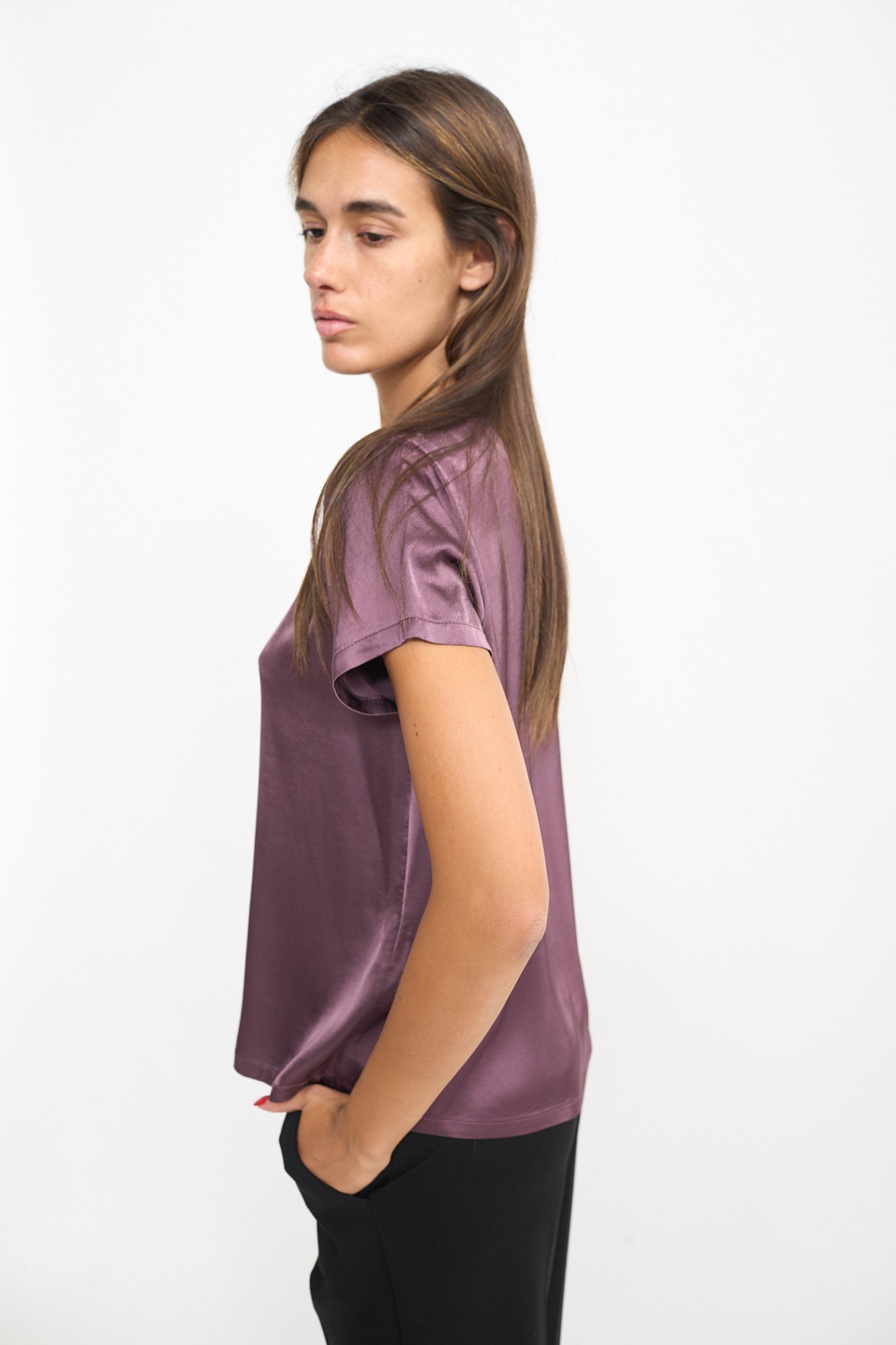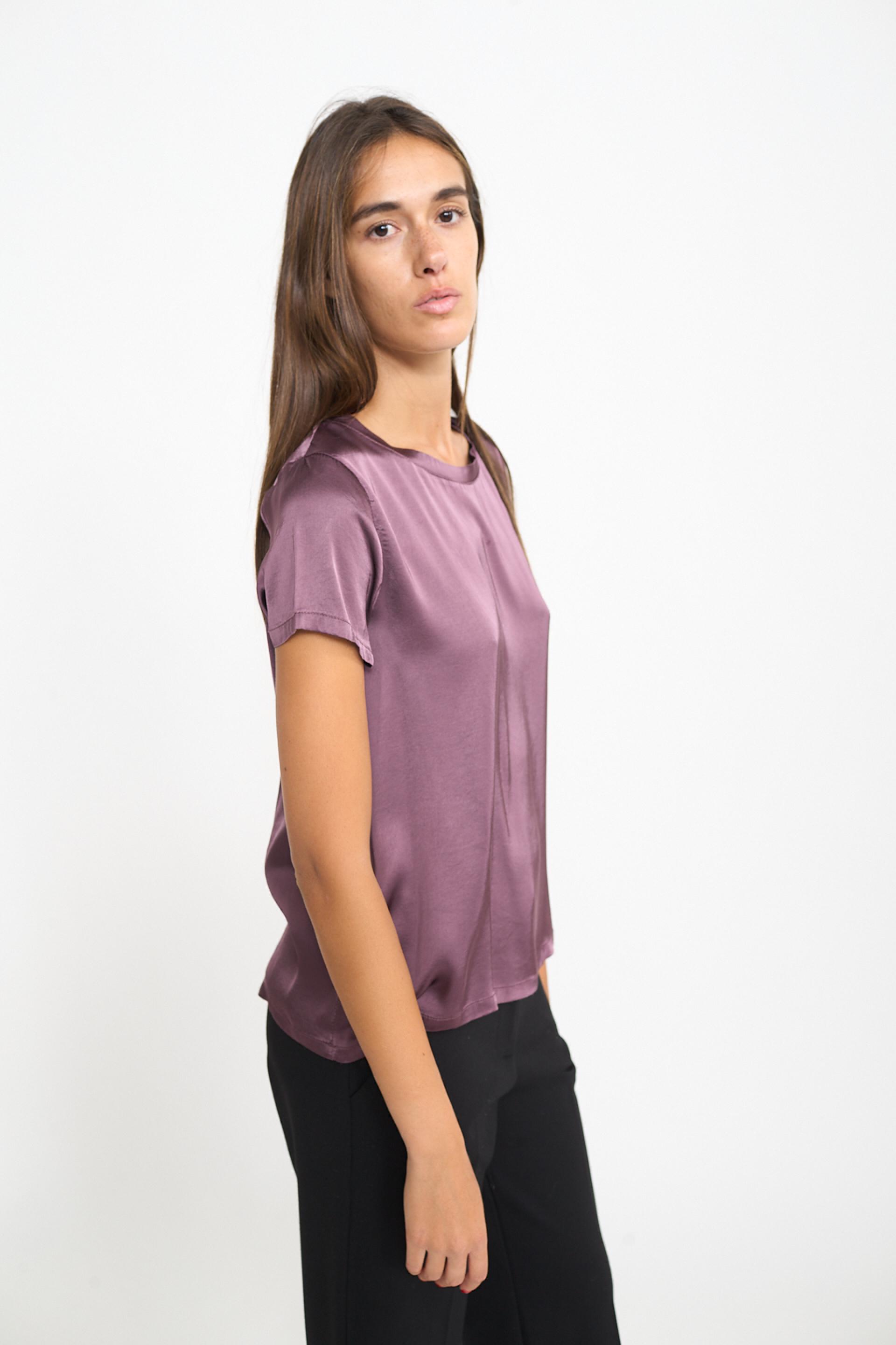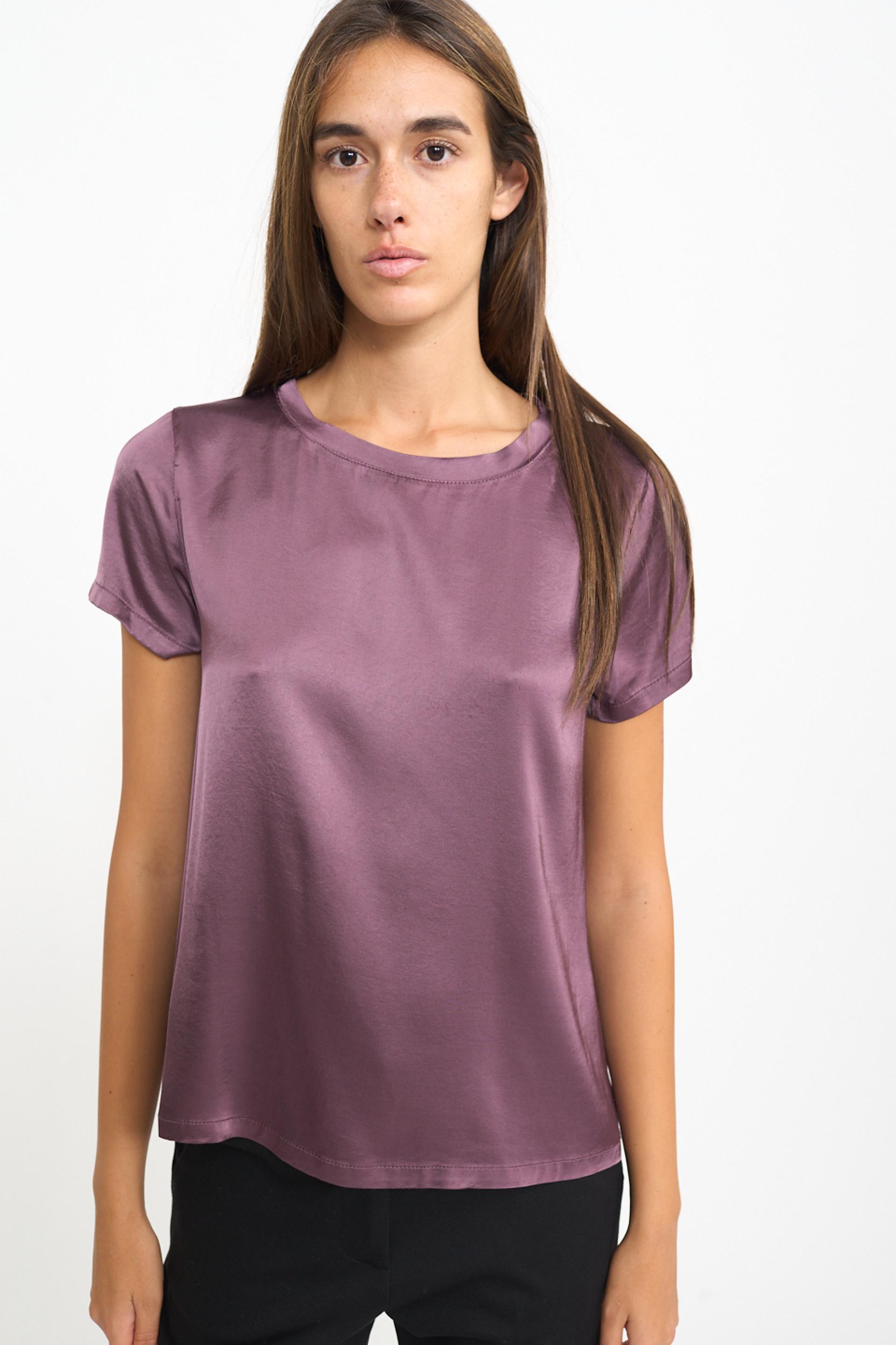 | Blusa 1/2 manica scollo rotondo in raso di viscosa tinta unita. | ||