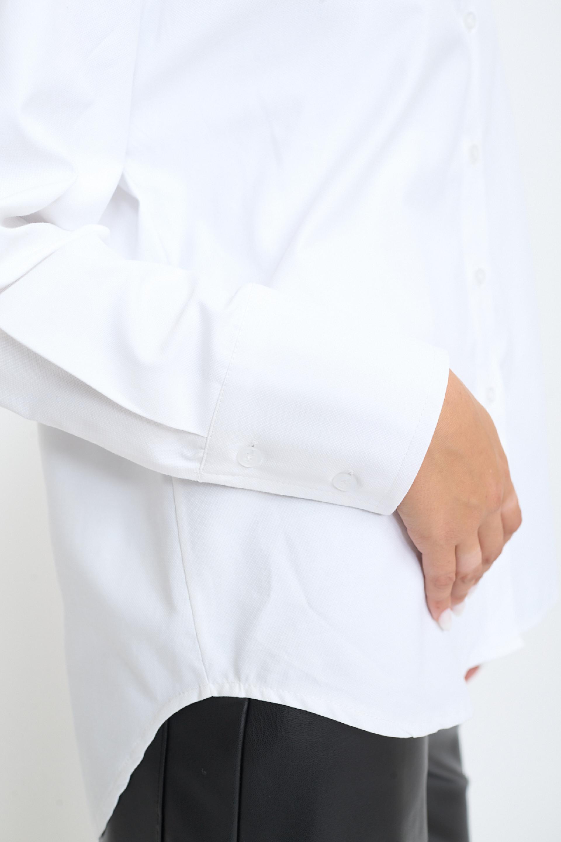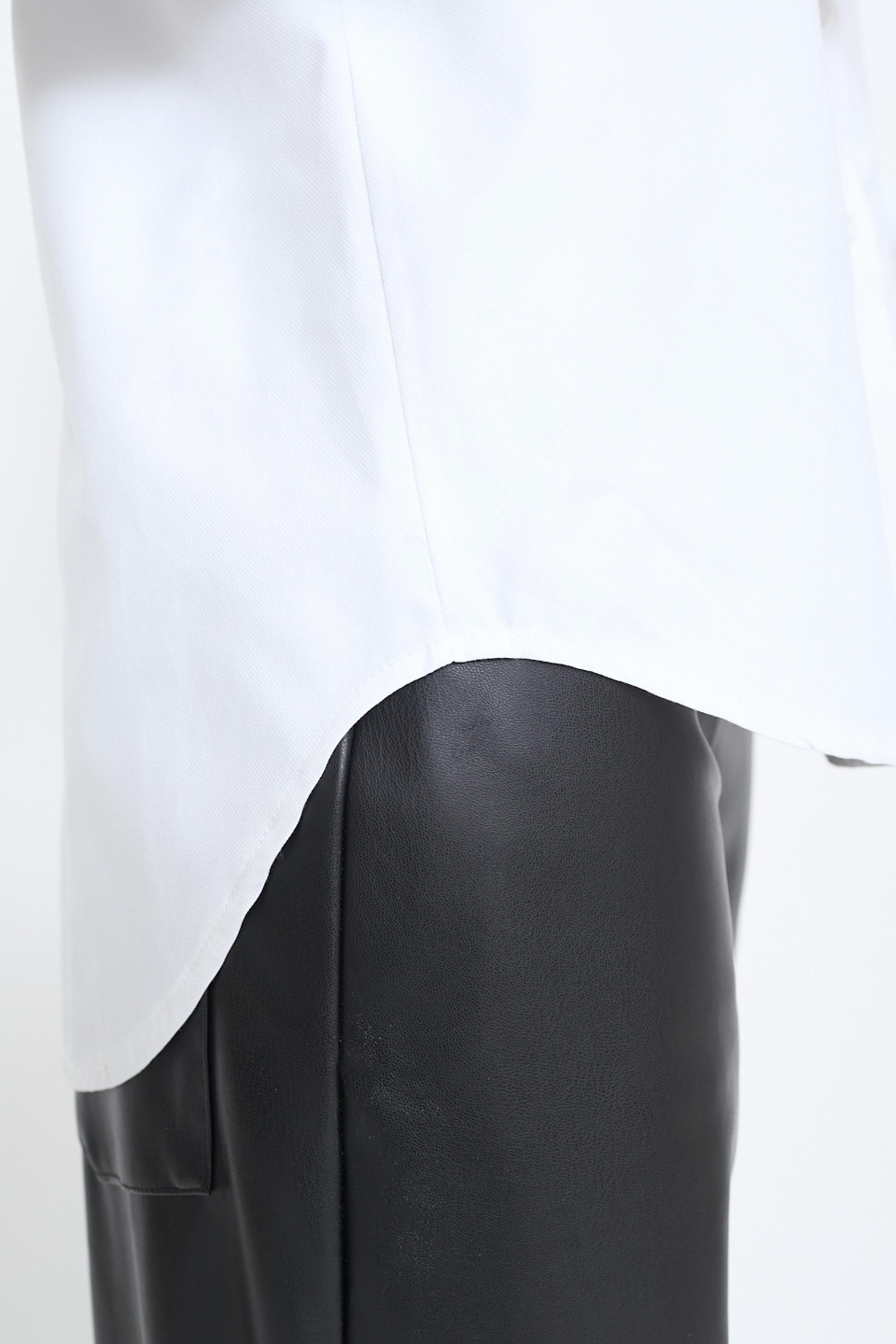 | Camicia modello uomo in cotone Oxford. Orlo stondato e chiusura tramite bottoni. | ||