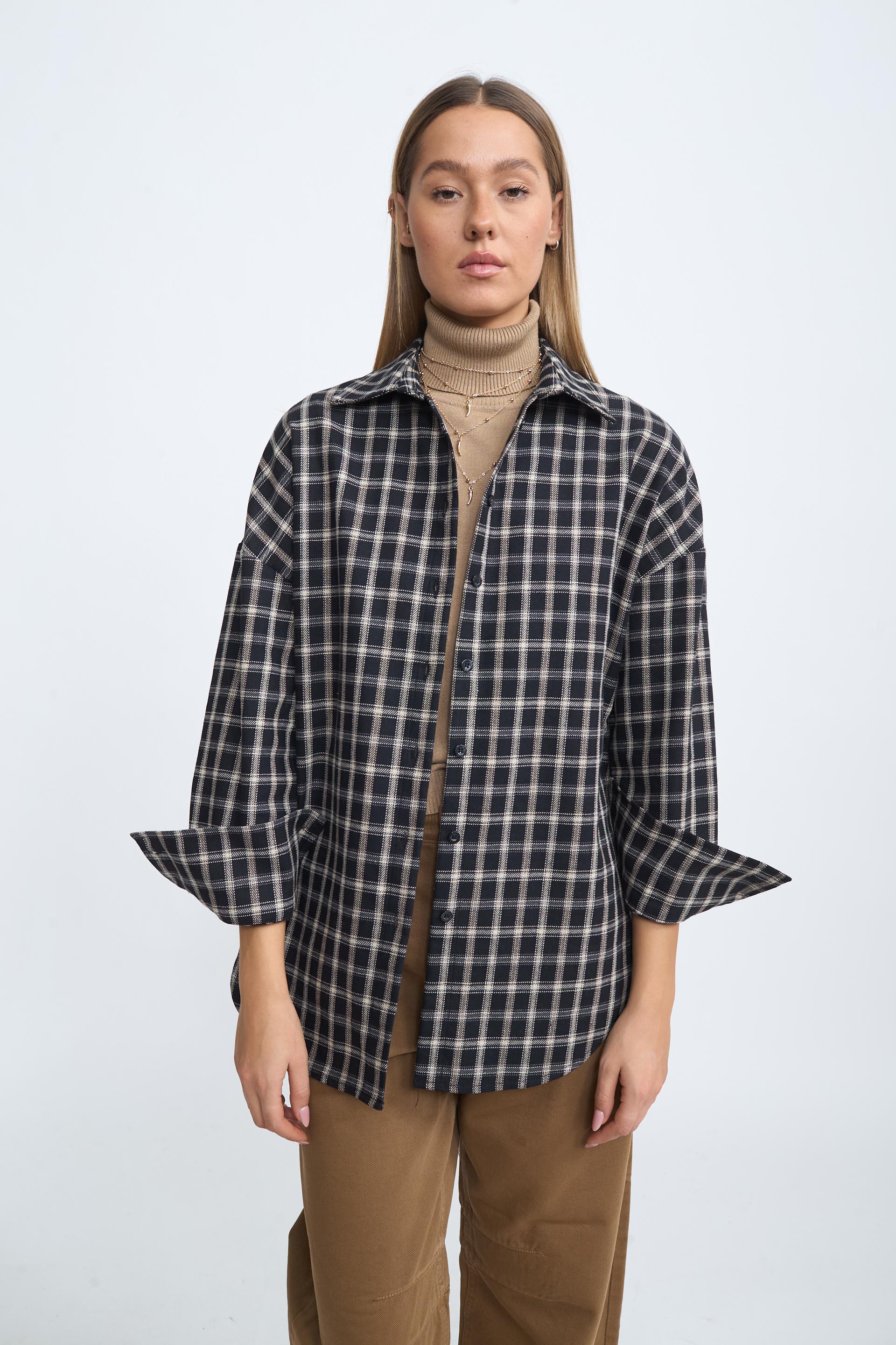 Camicia over in misto cotone fantasia check. Chiusura frontale tramite bottoni. | ||