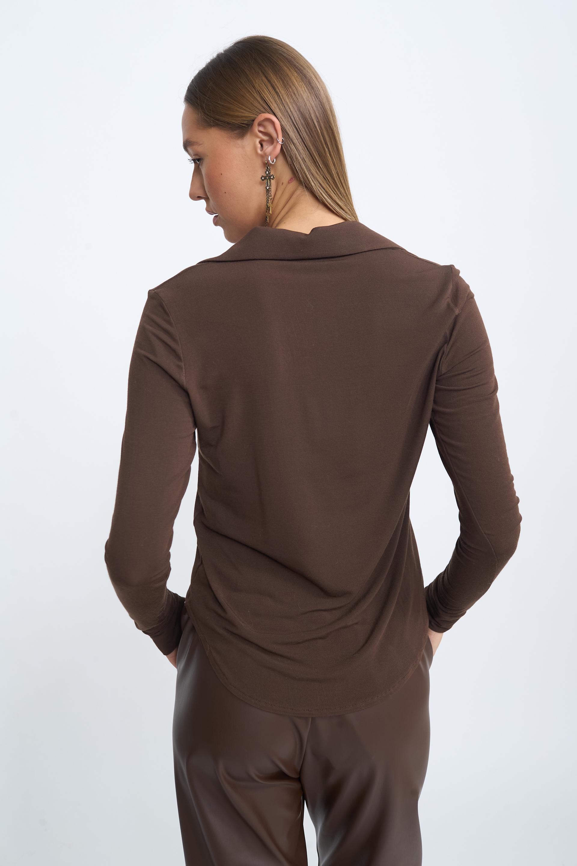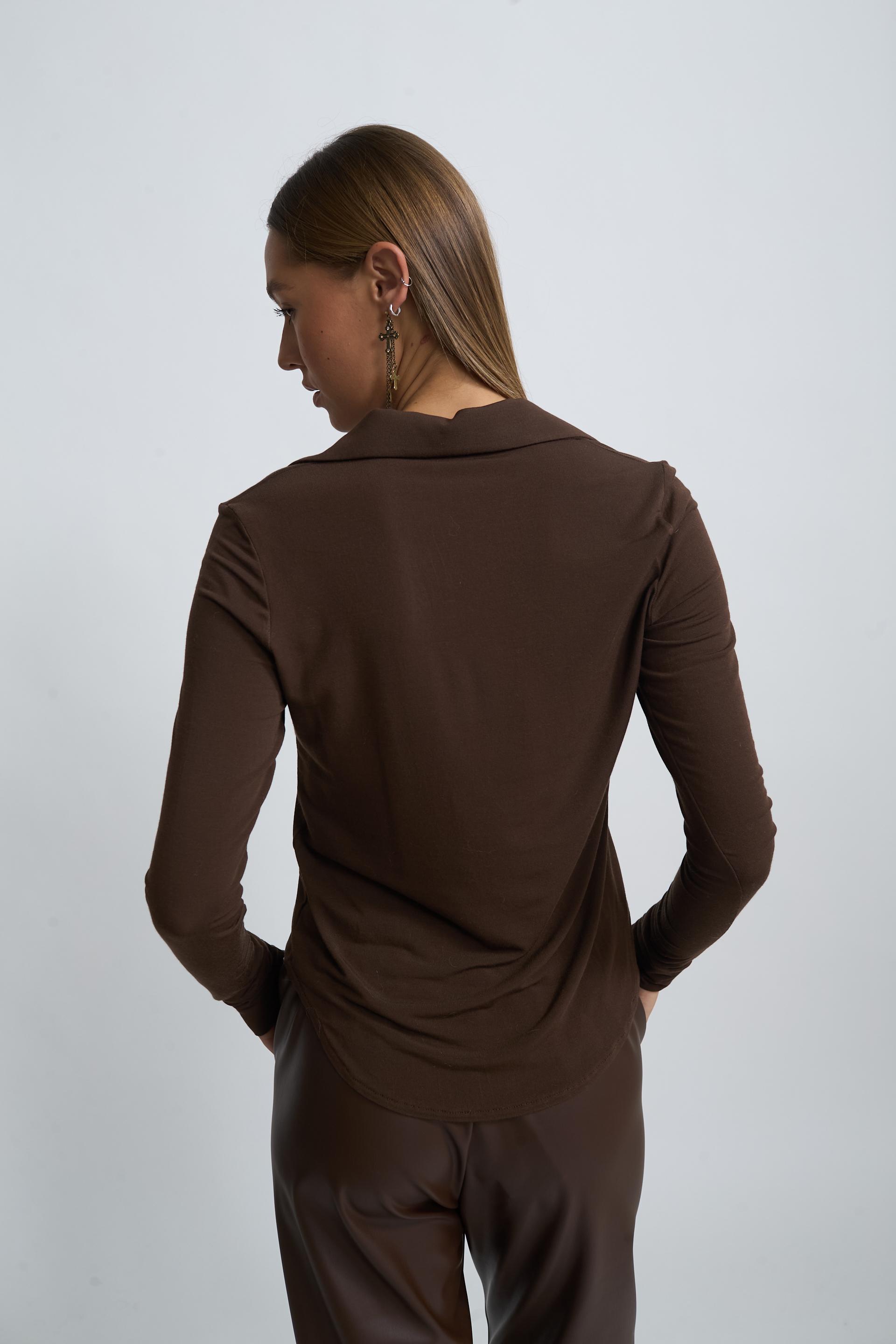 Camicia modello polo in micromodal. Chiusura tramite bottoni tono su tono. | ||