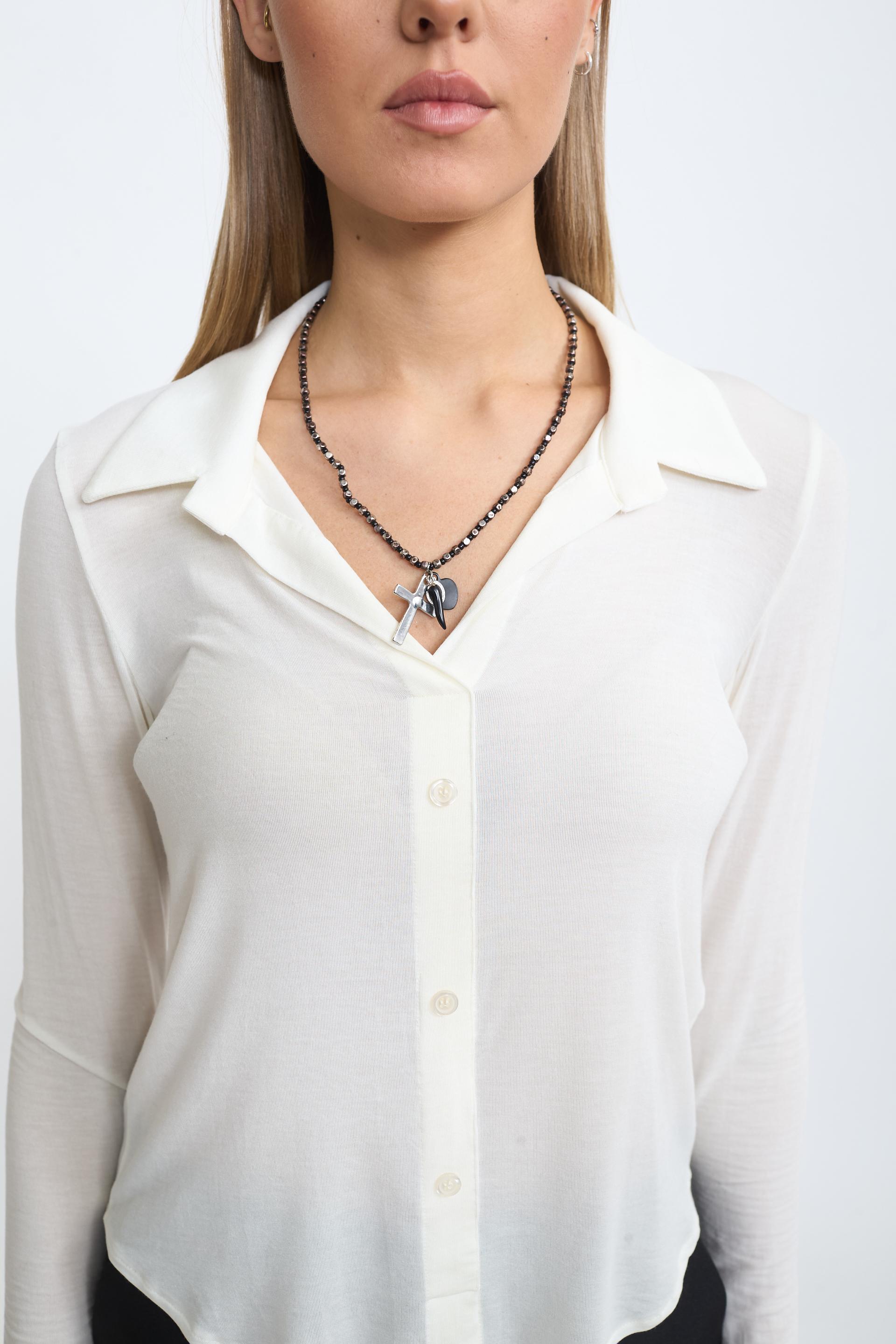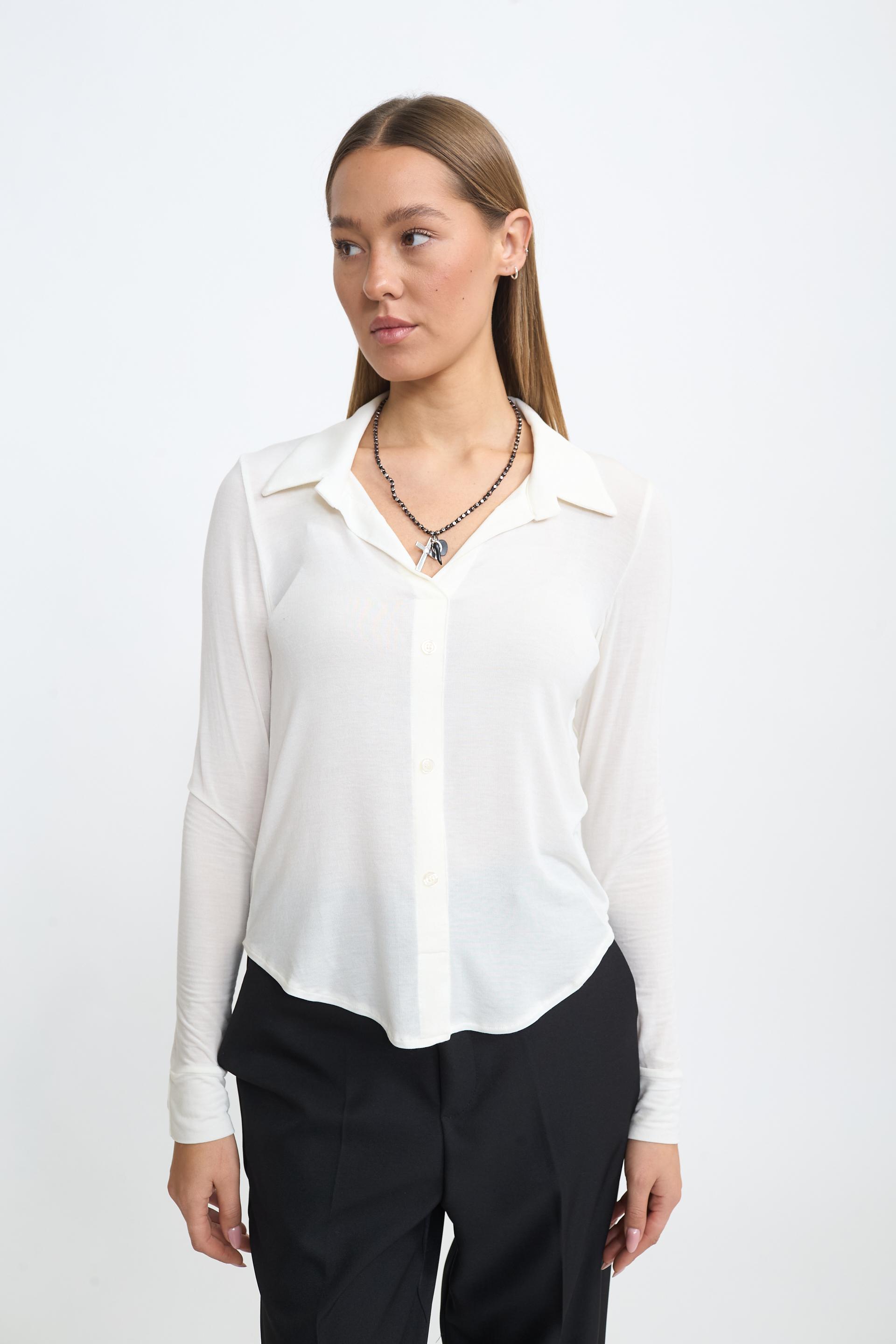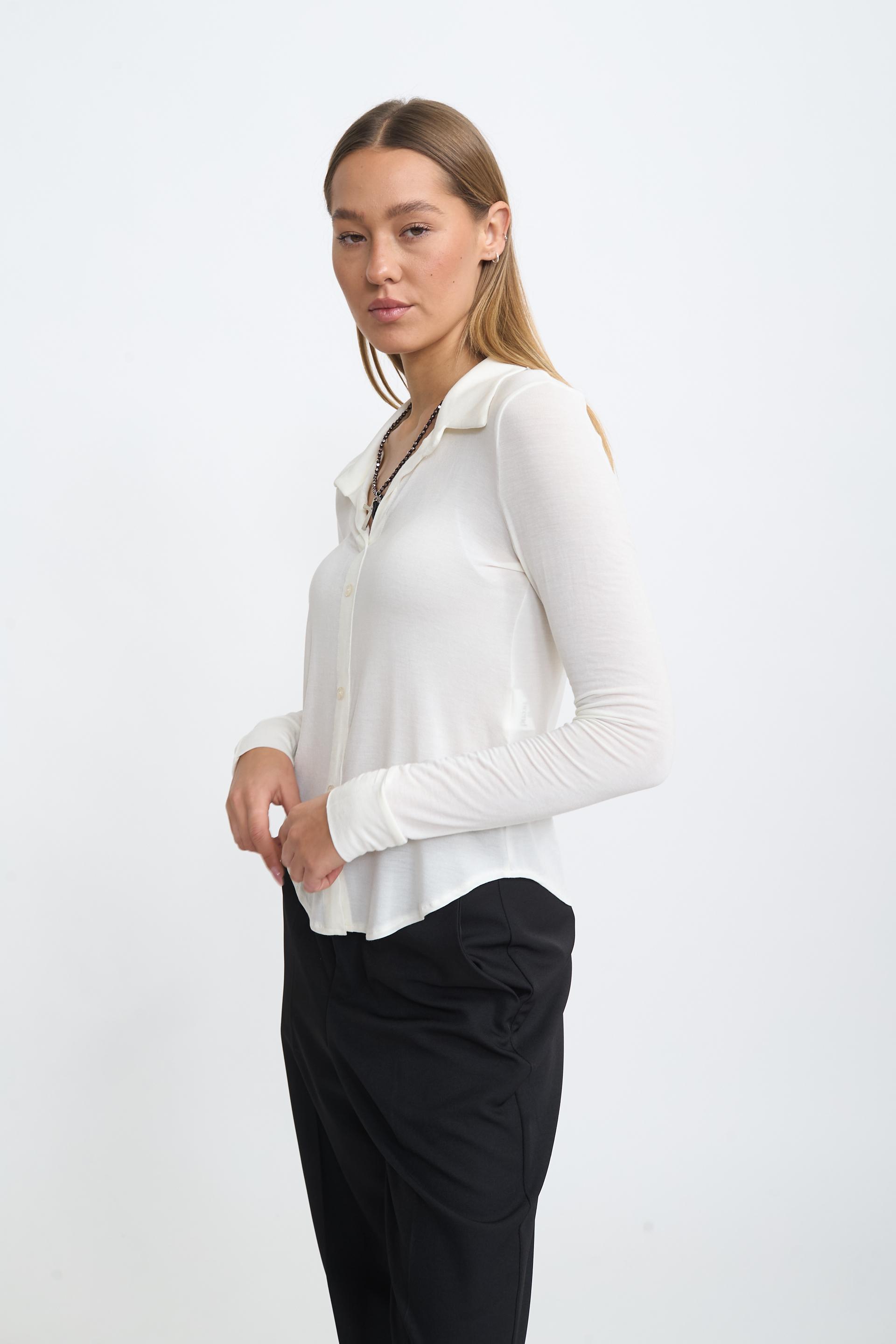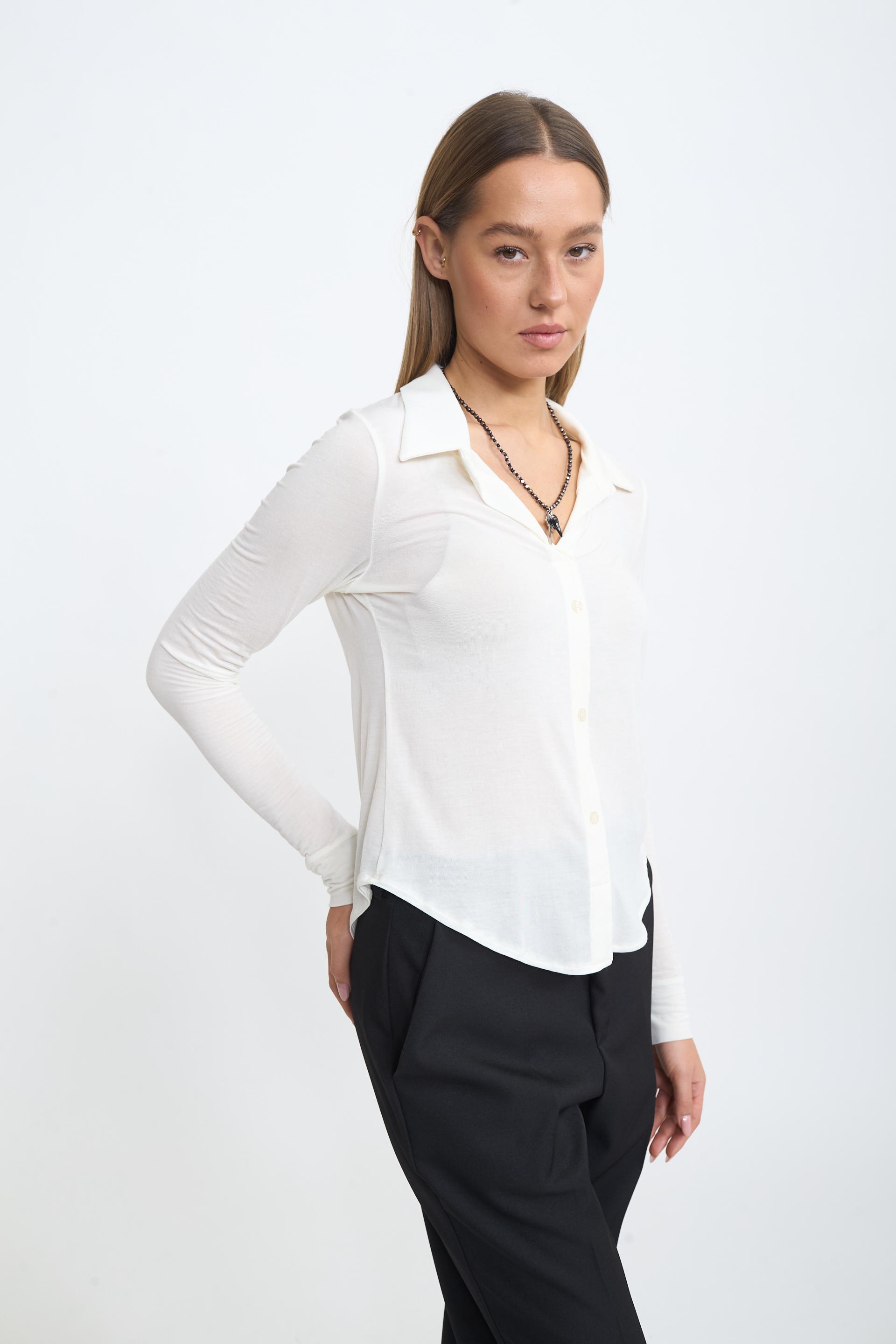 Camicia modello polo in micromodal. Chiusura tramite bottoni tono su tono. | ||