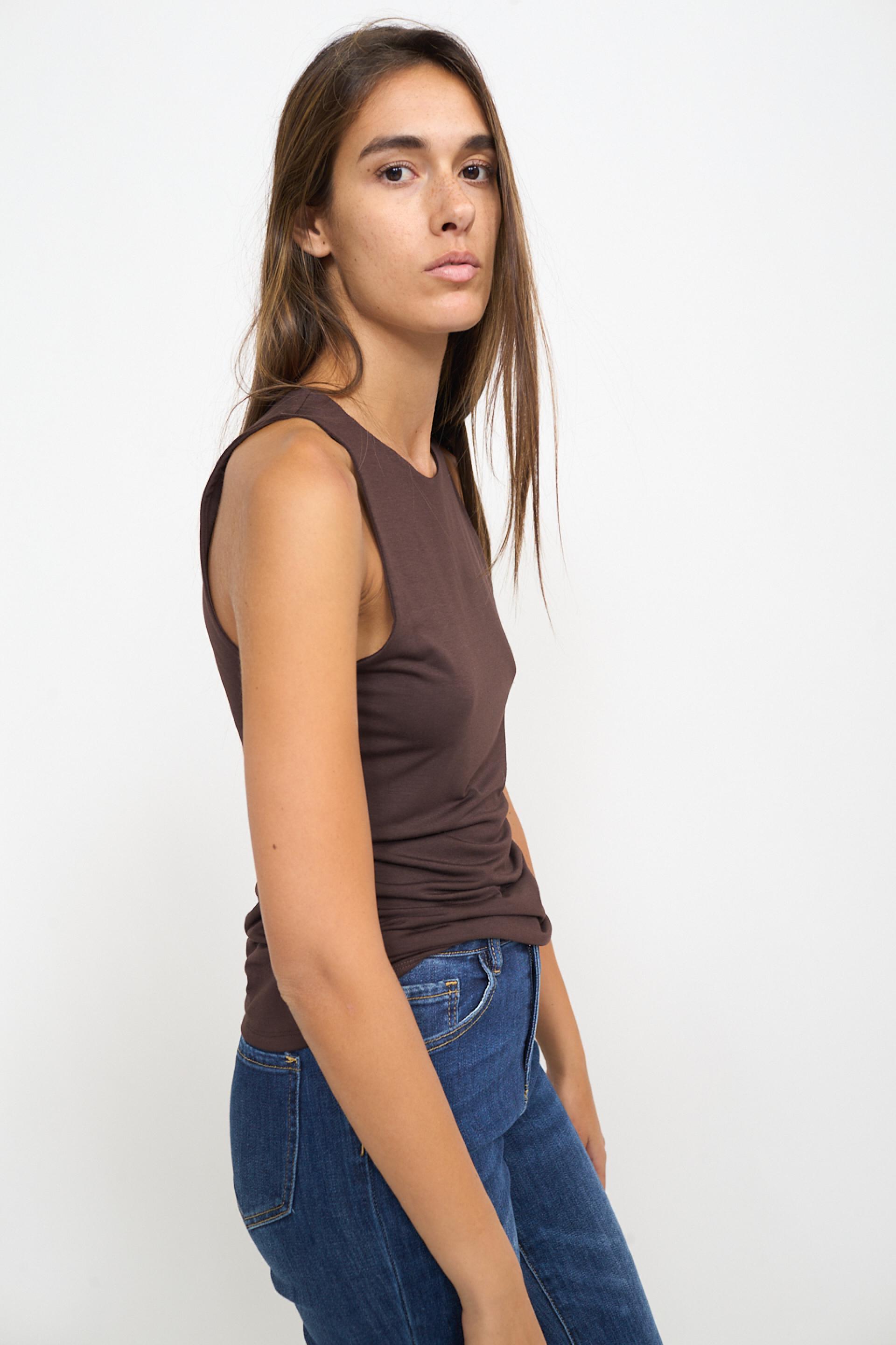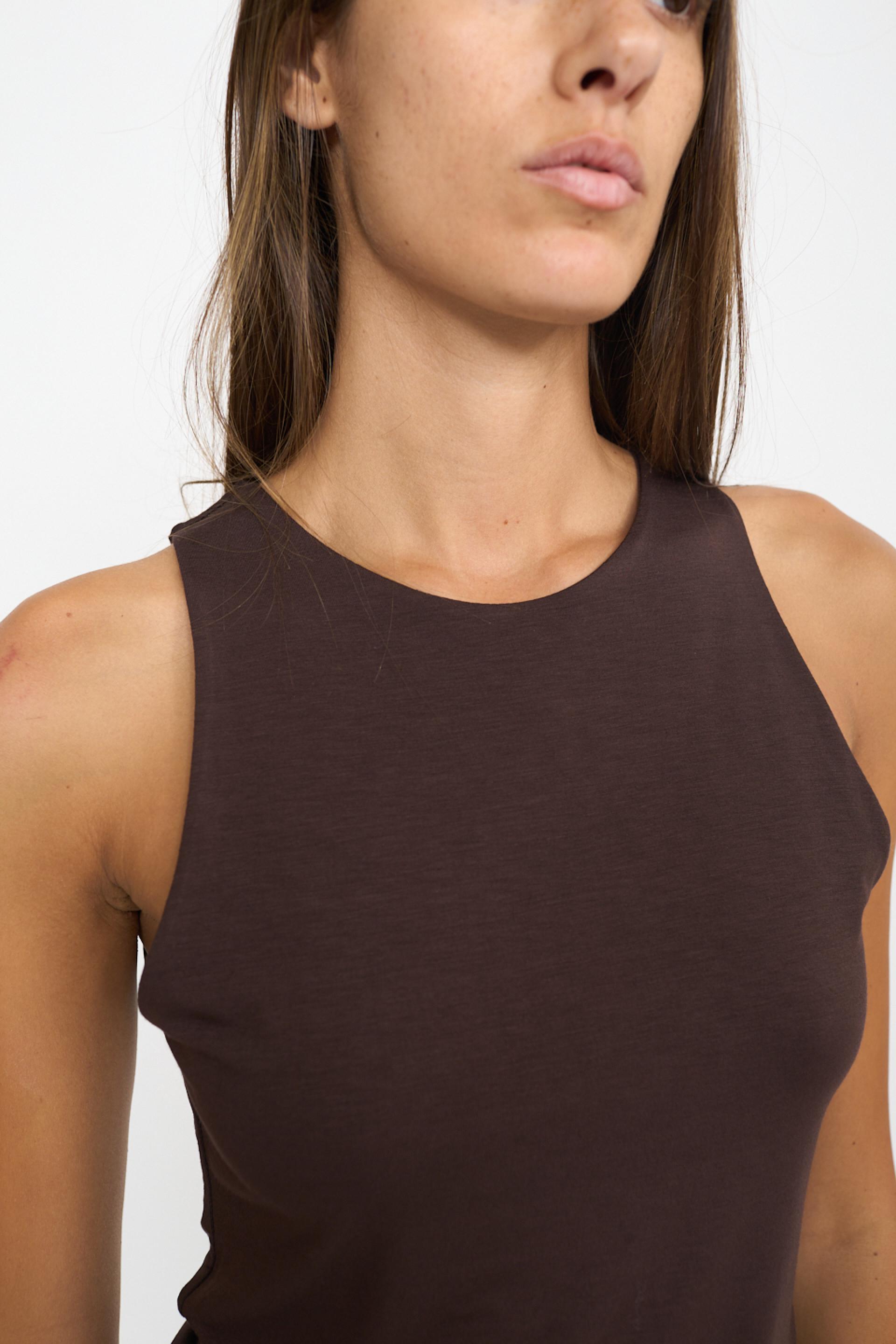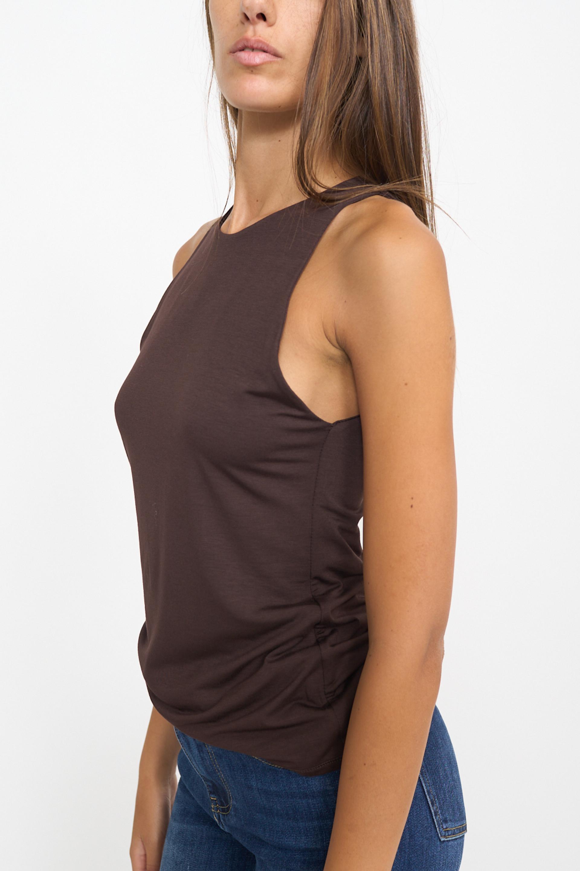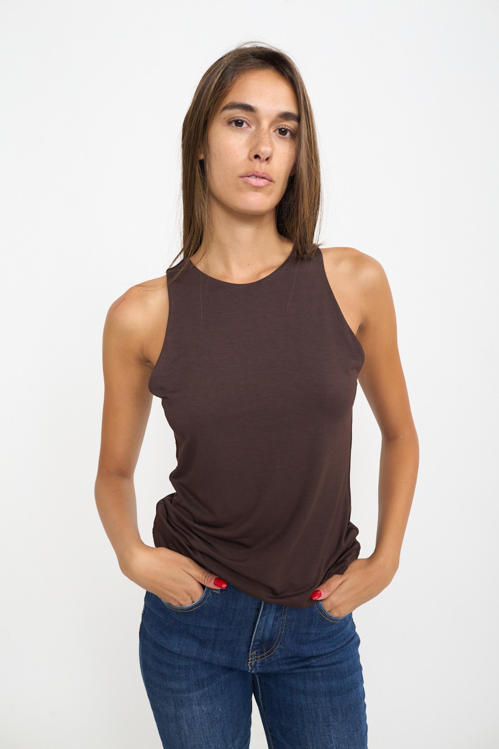 | Canotta vogatore doppiata in viscosa tinta unita. | ||
