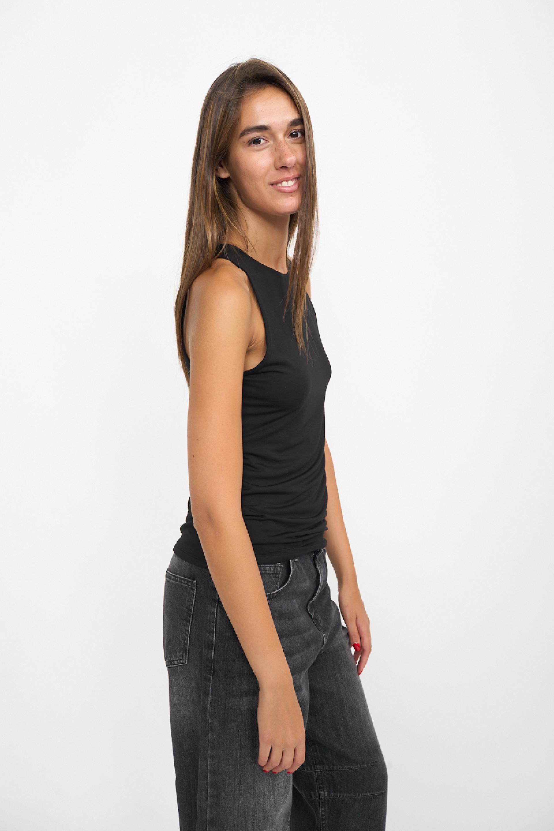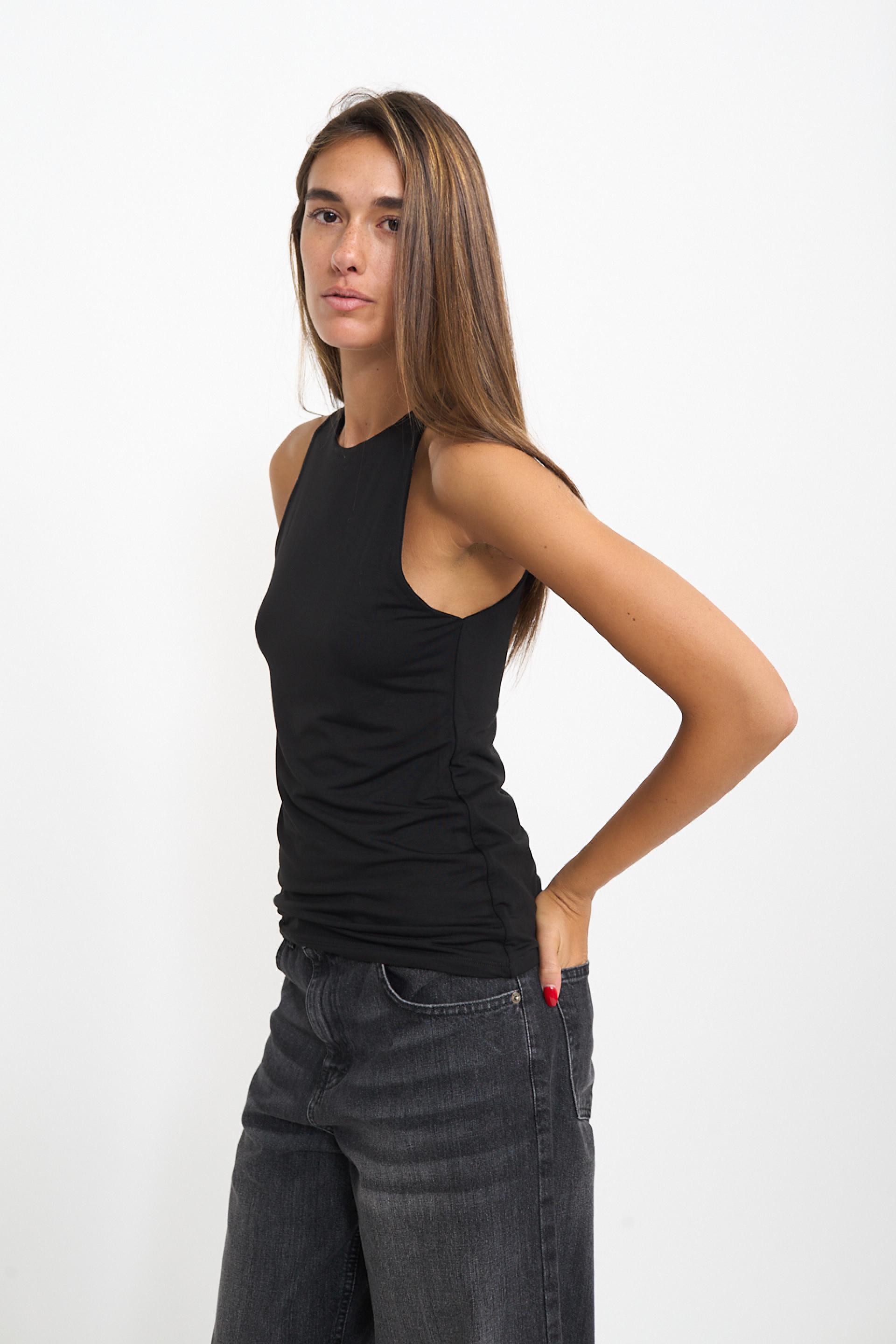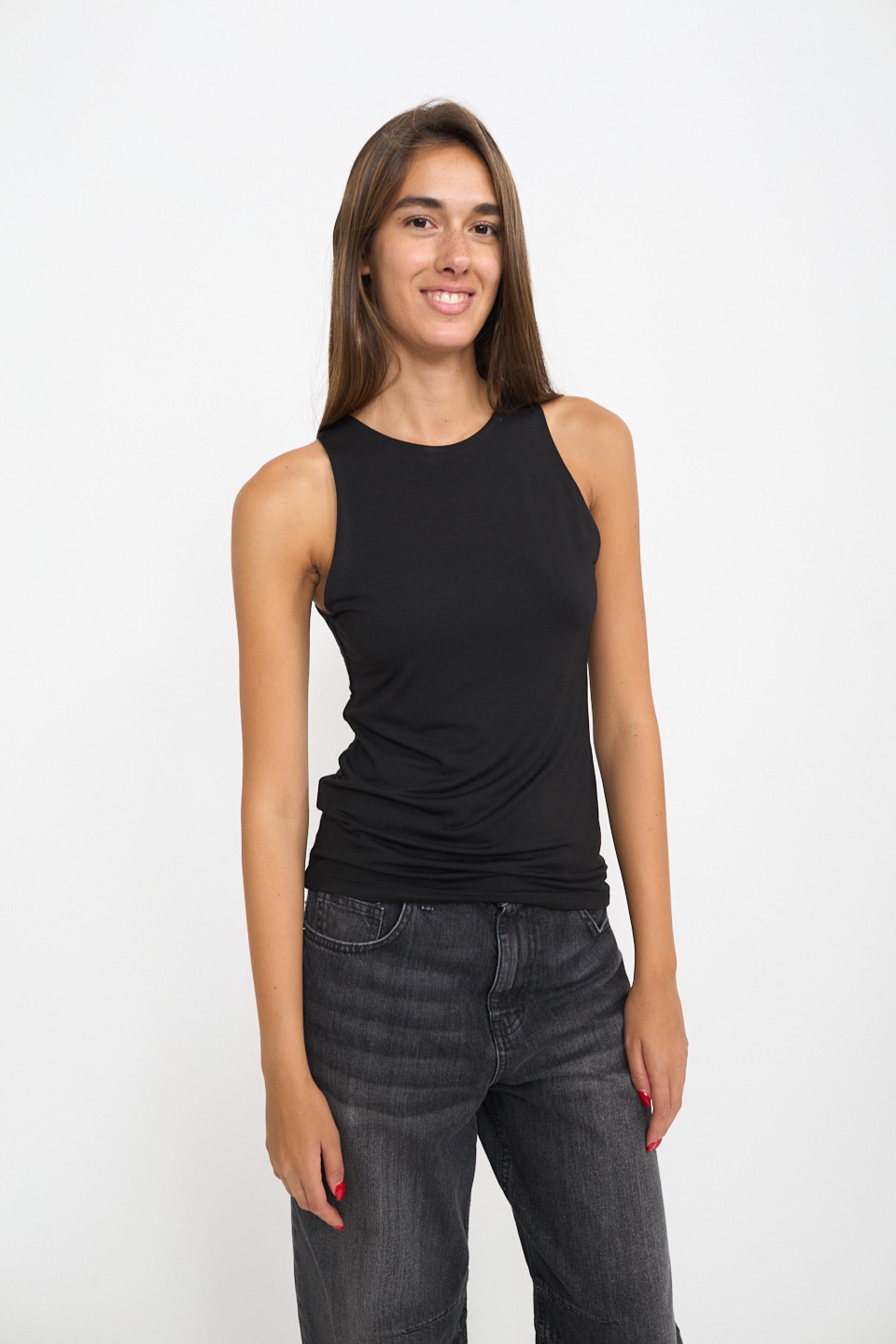 | Canotta vogatore doppiata in viscosa tinta unita. | ||