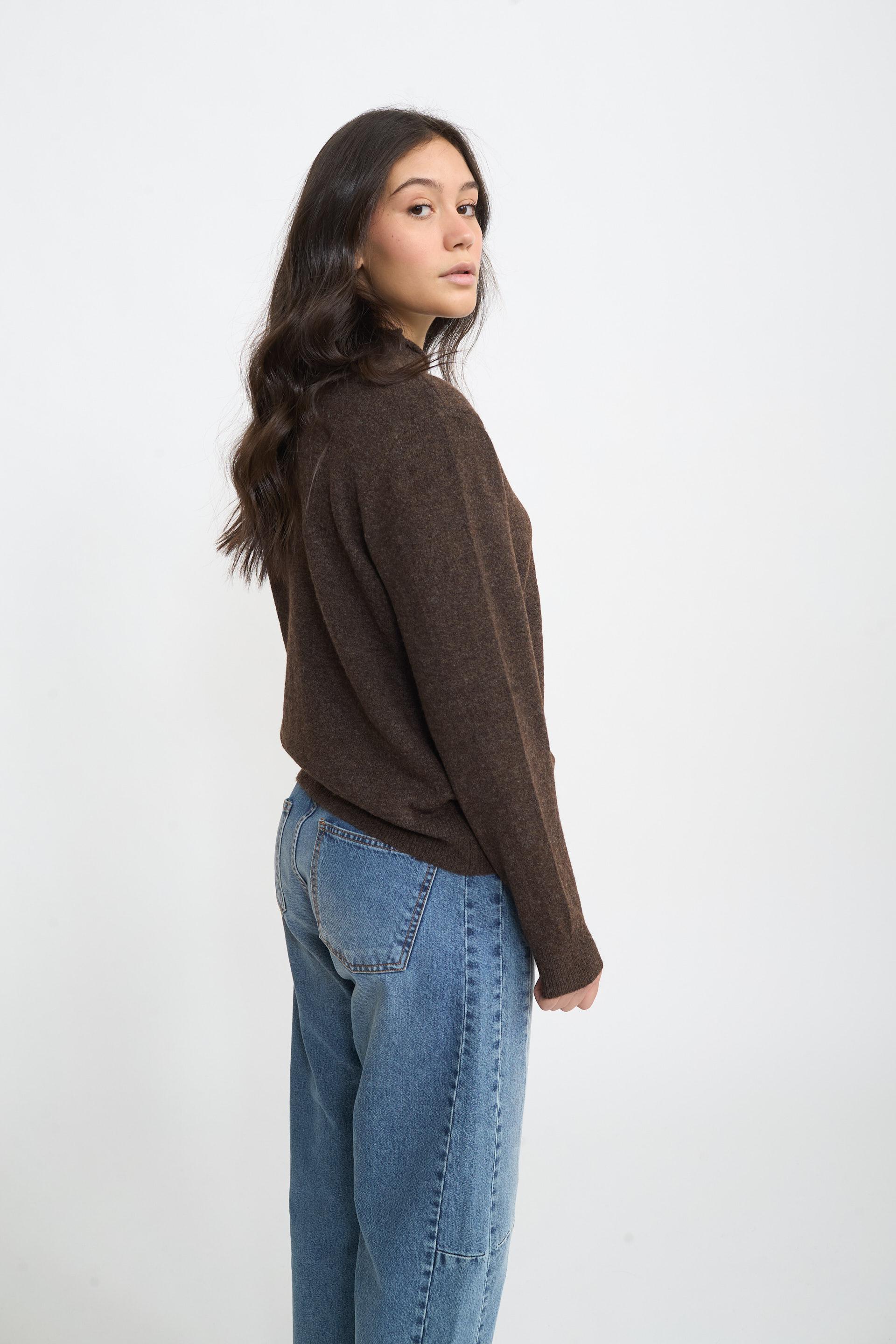 | Cardigan collo alto con chiusura tramite bottoni squadrati tono su tono. | ||