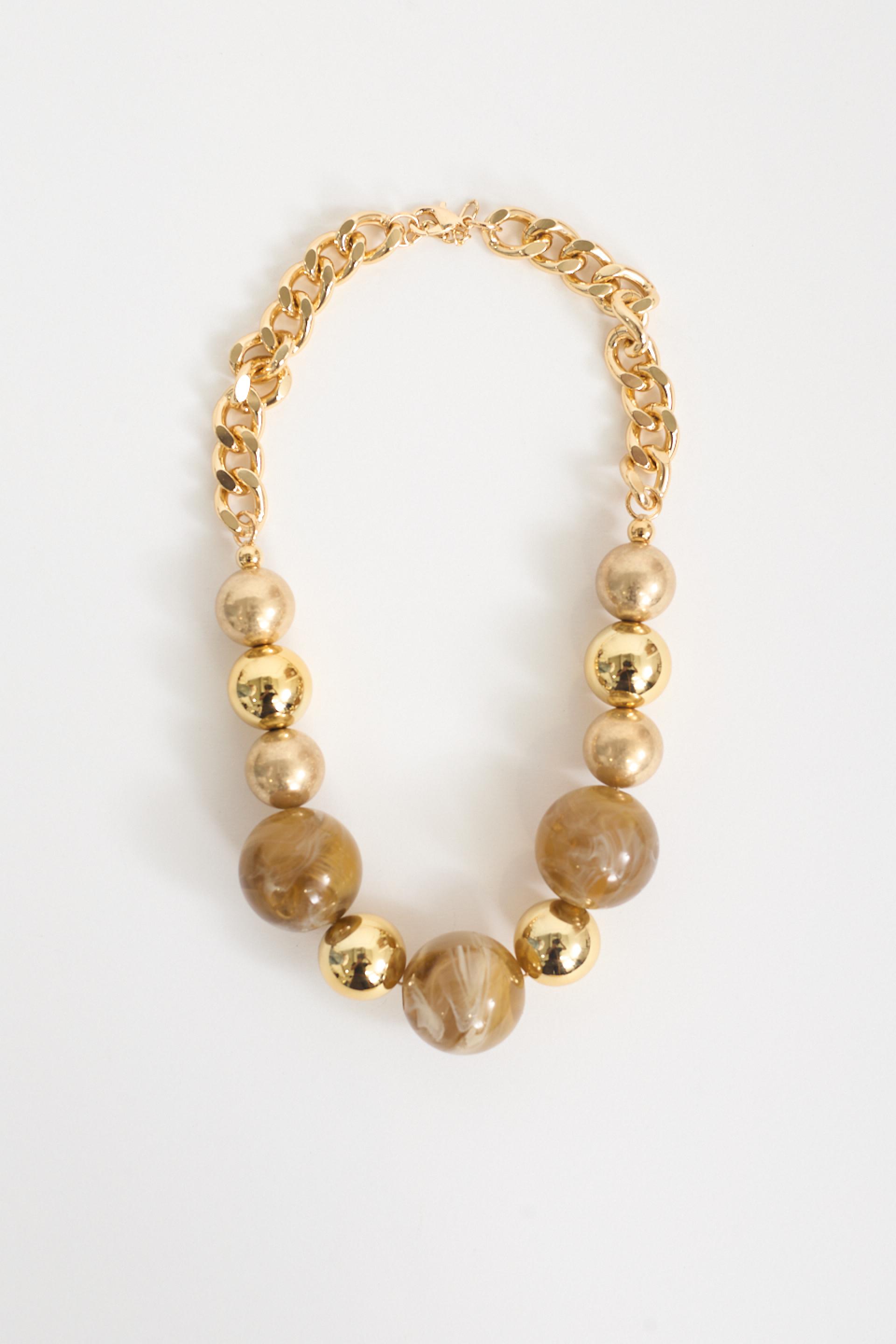 | Collana girocollo catena con sfere di varia grandezza e colore. Chiusura tramite moschettone. | ||