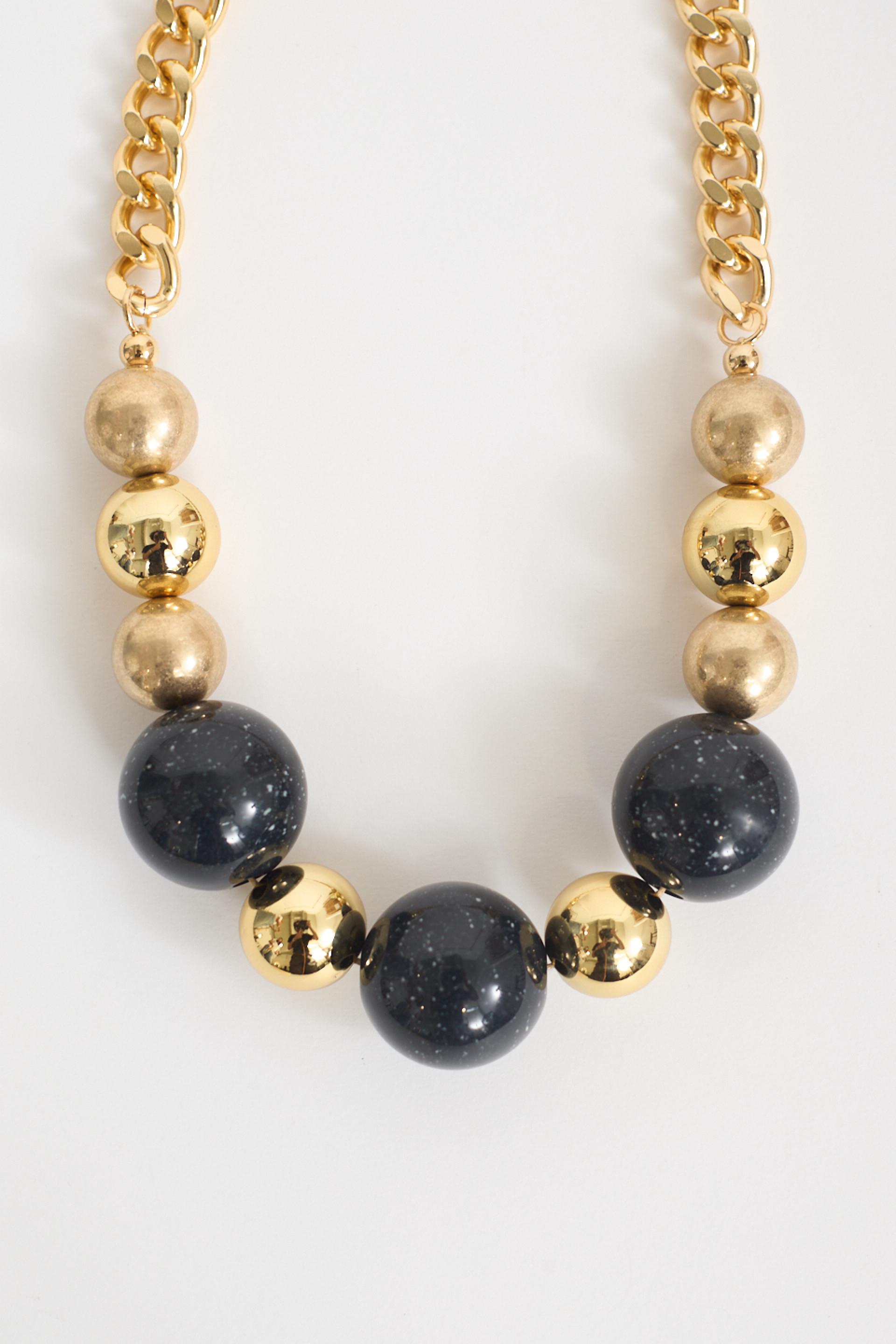 | Collana girocollo catena con sfere di varia grandezza e colore. Chiusura tramite moschettone. | ||