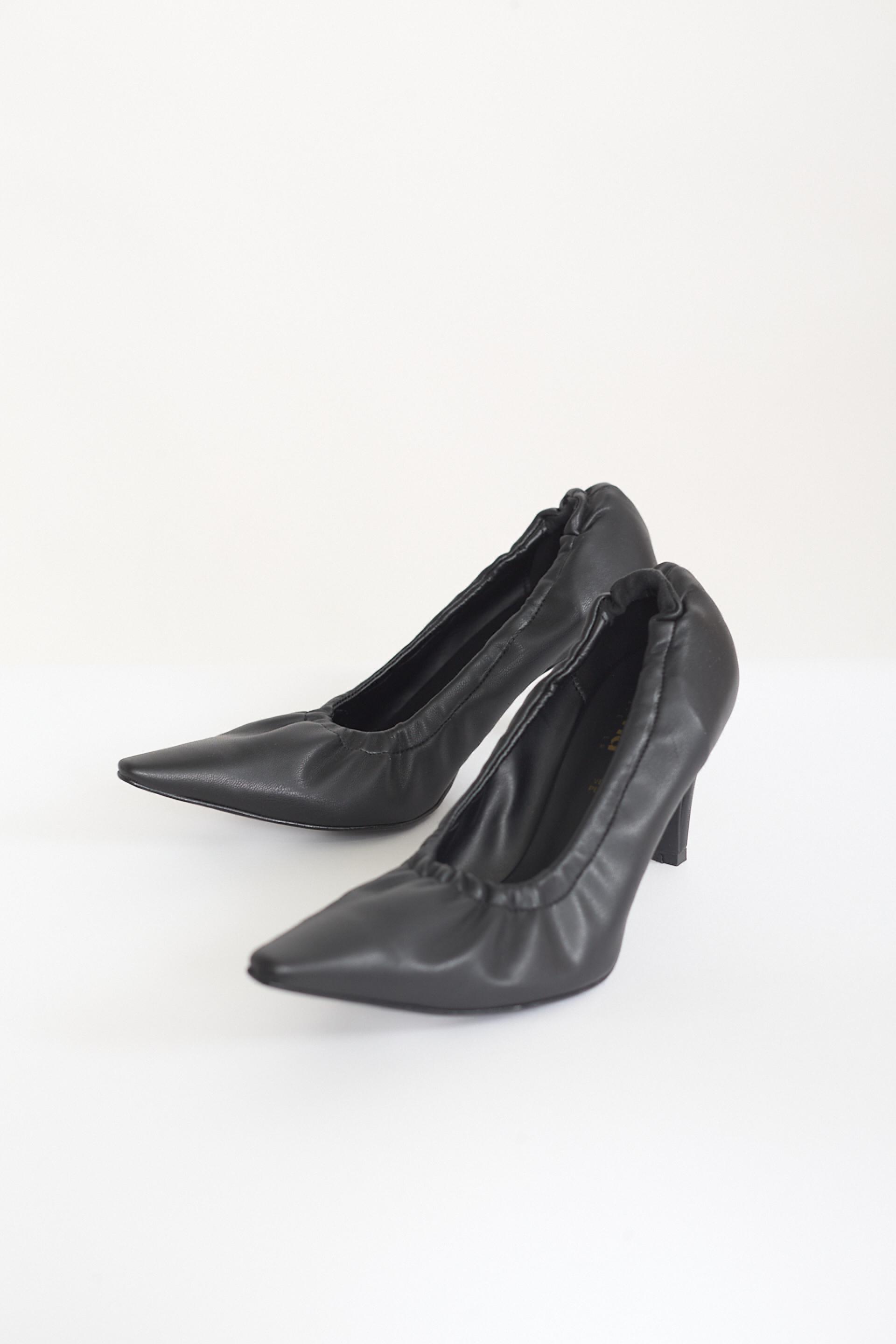 | Dècollettè a punta con arricciatura. Tacco altezza 8 cm. | ||