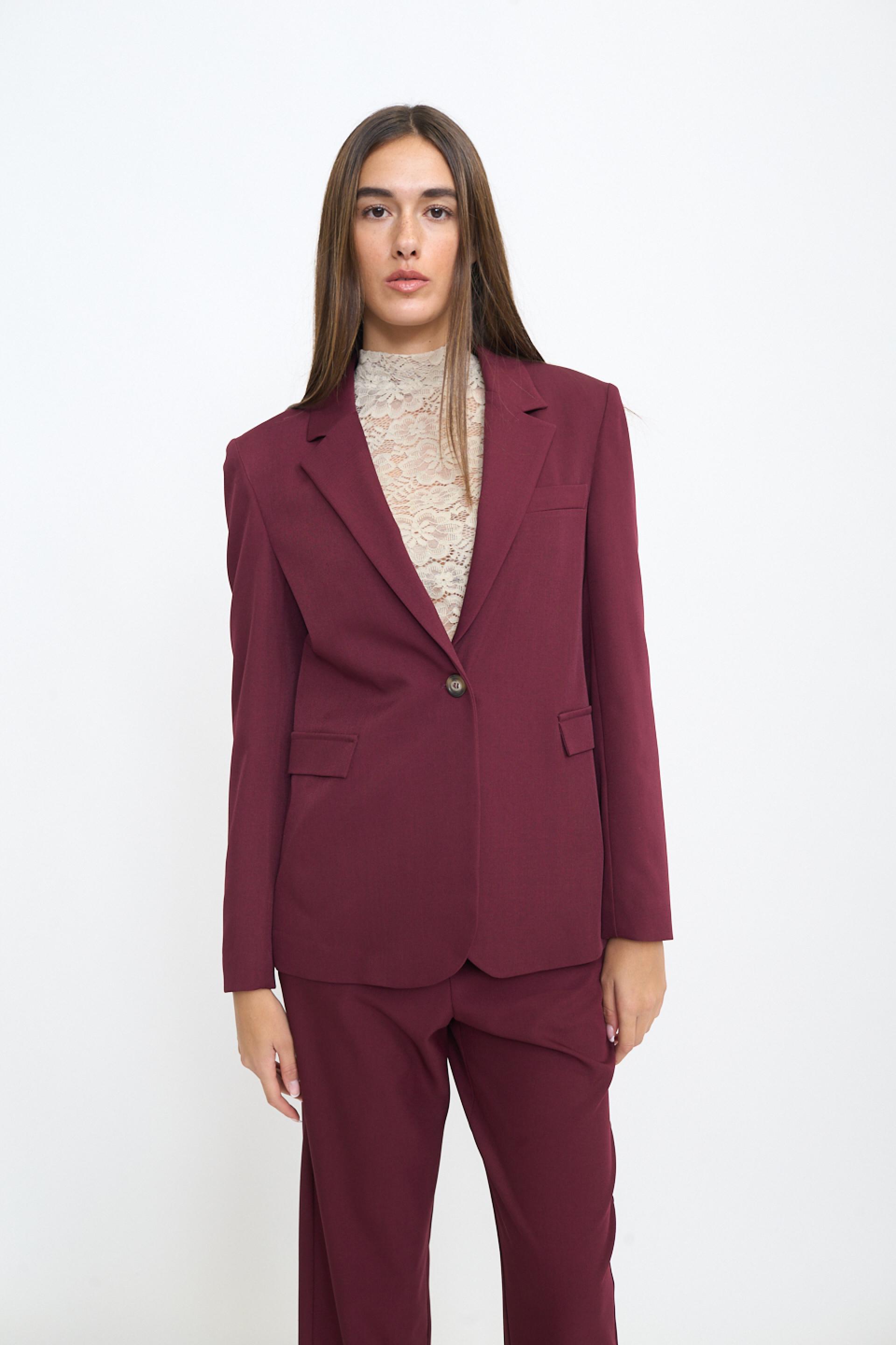 | Giacca collo revers ad 1 bottone con finta tasche con pattine e finto taschino sul petto. Spalline imbottite e fodera interna tono su tono. | ||