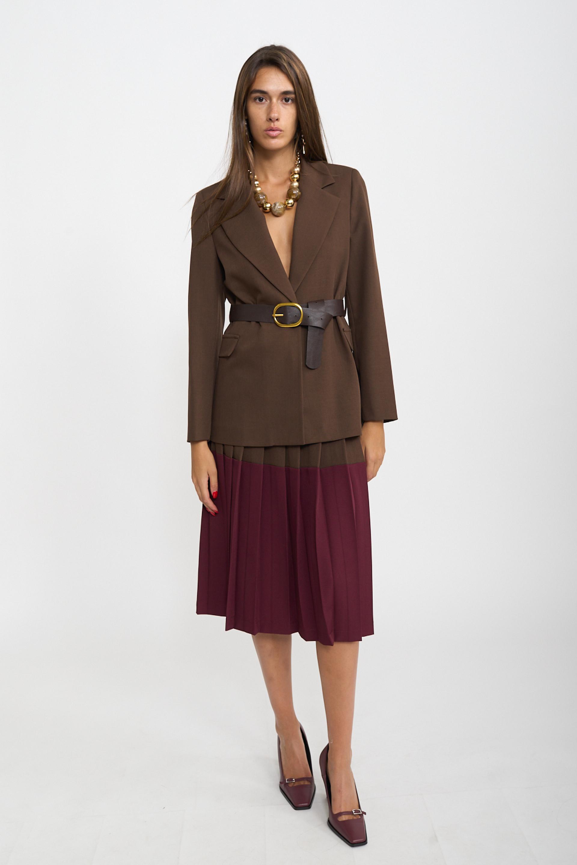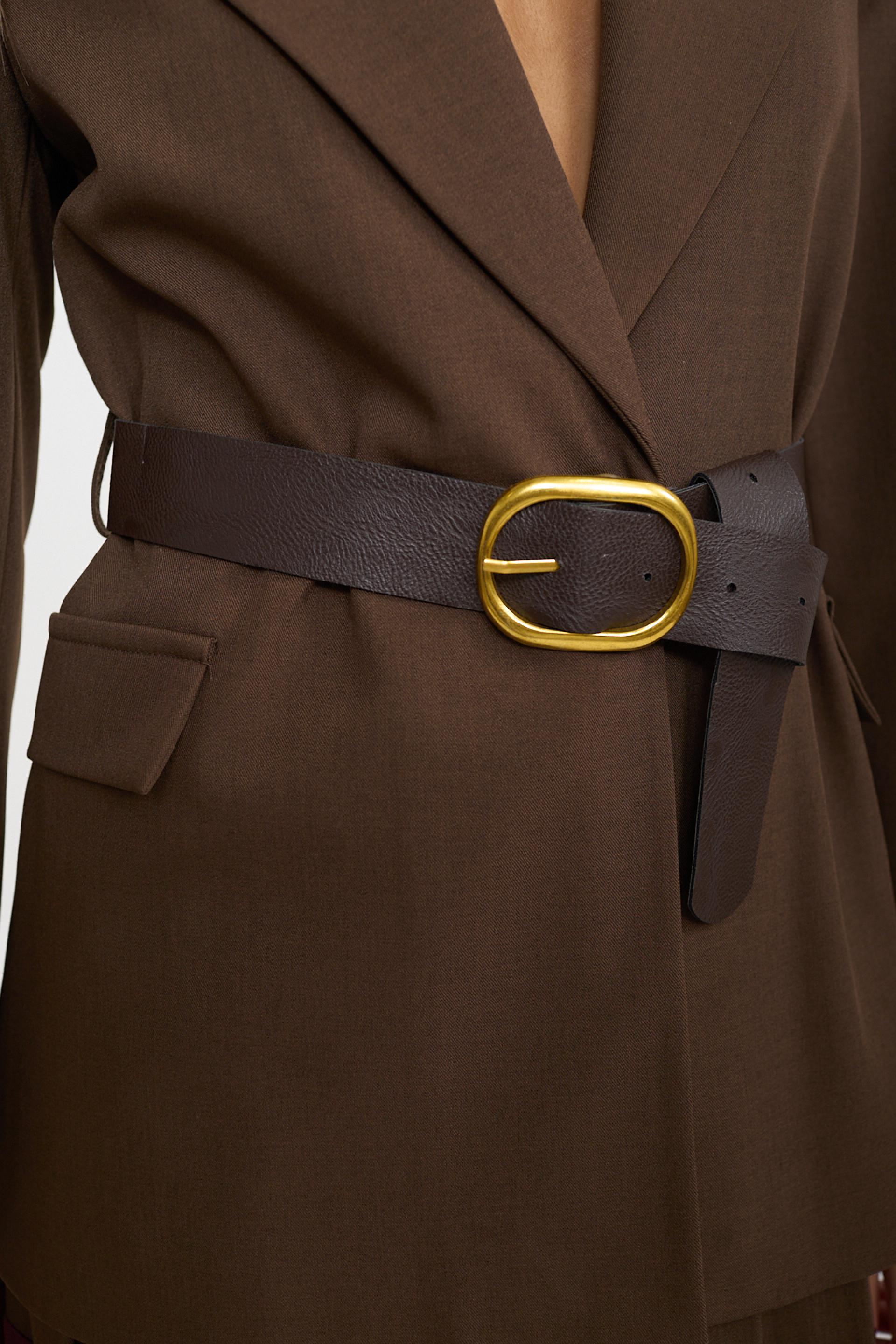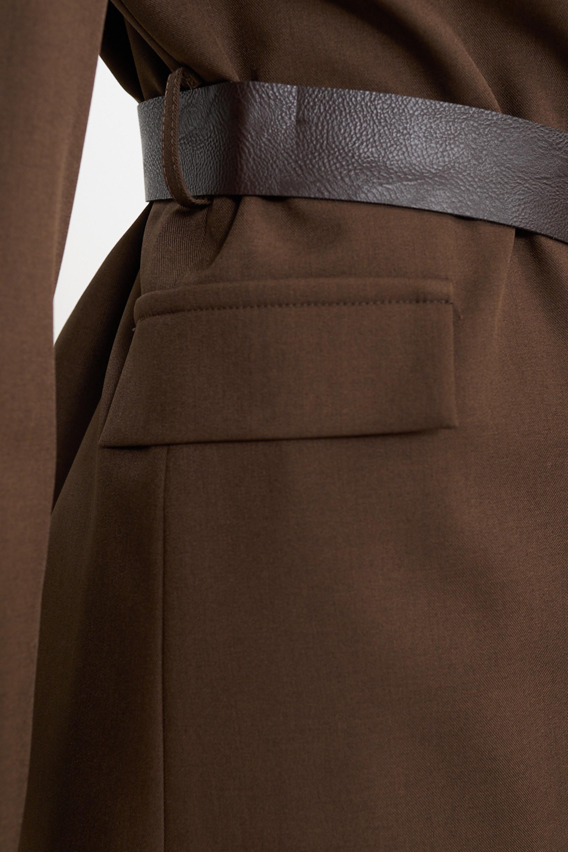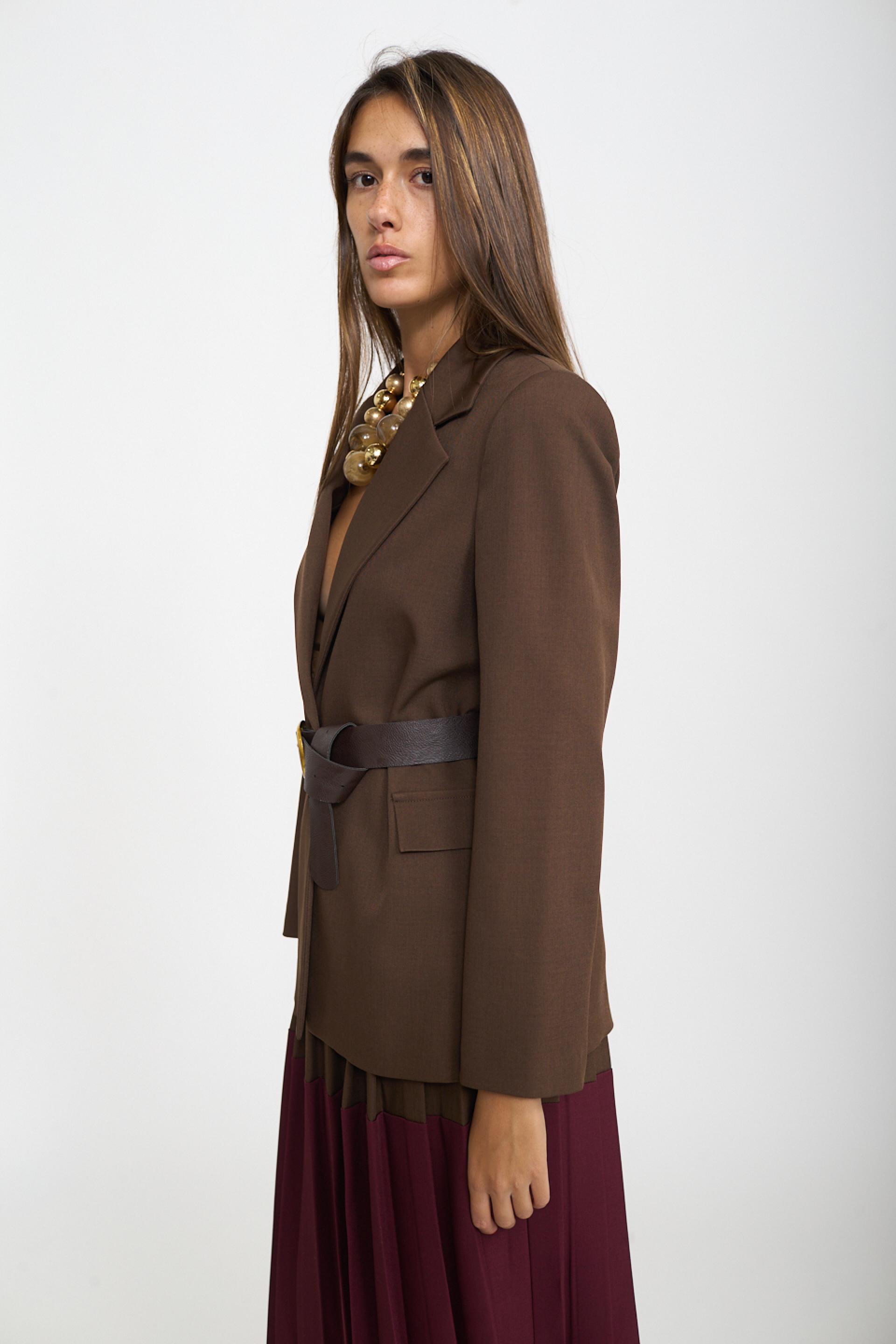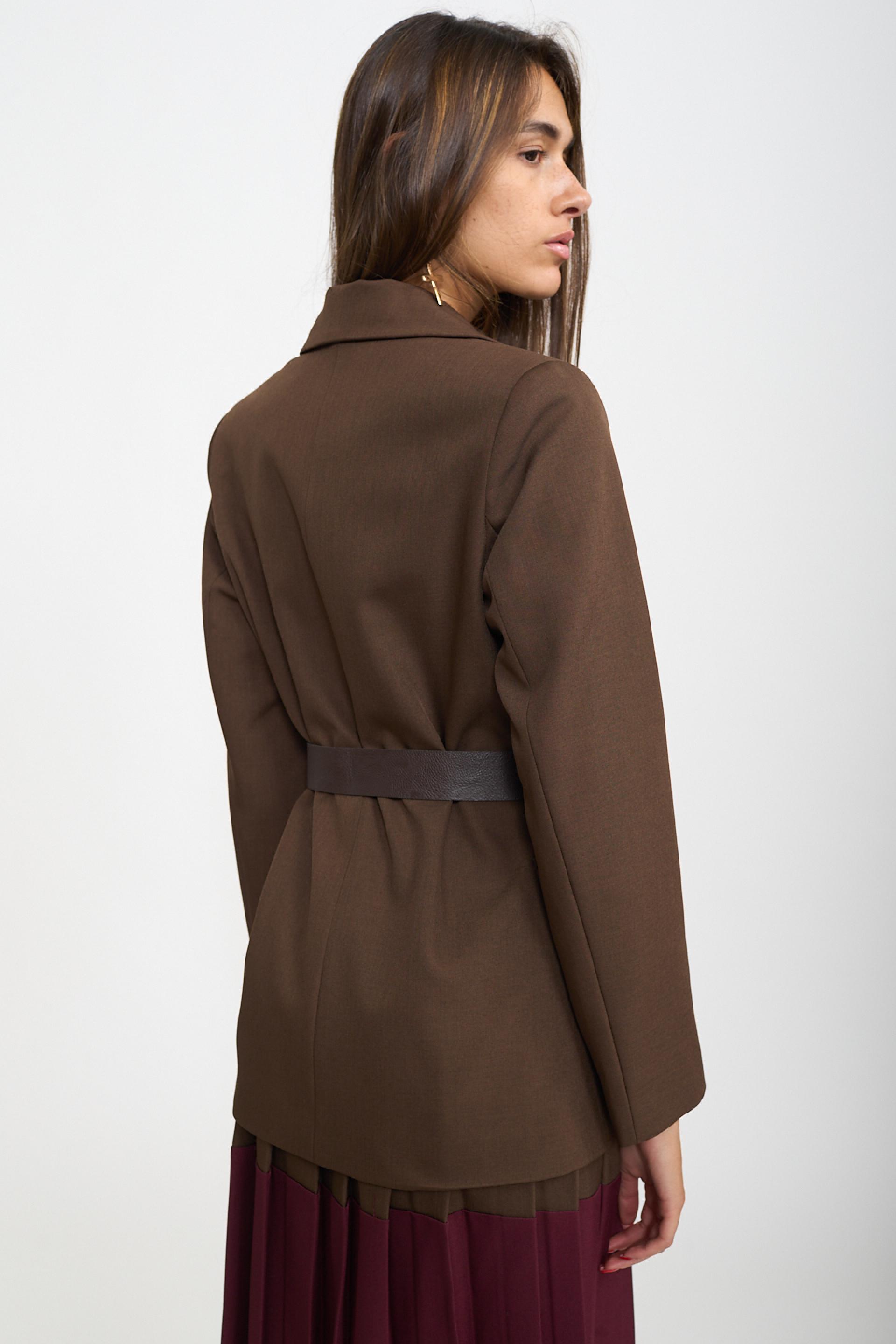 | Giacca collo revers ad 1 bottone con finte tasche con pattine. Passanti in vita e cinta compresa. Fodera interna tono su tono. | ||