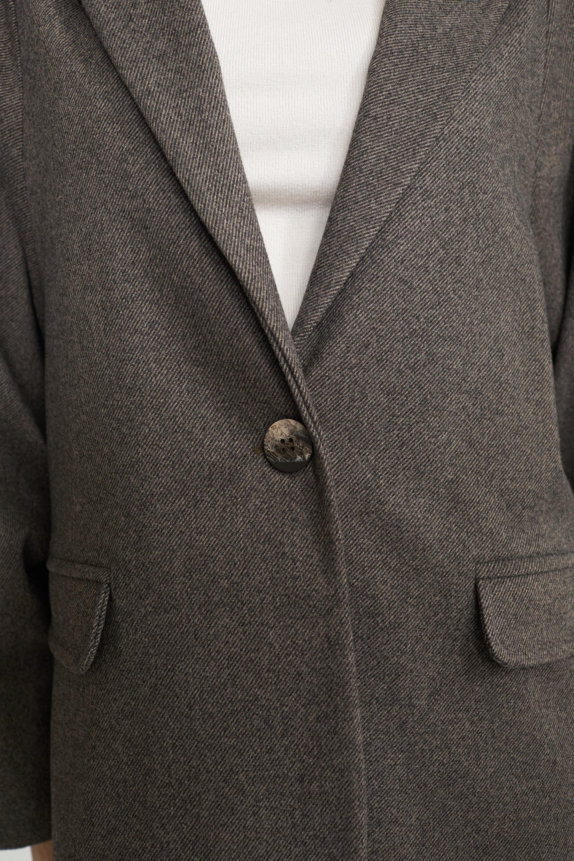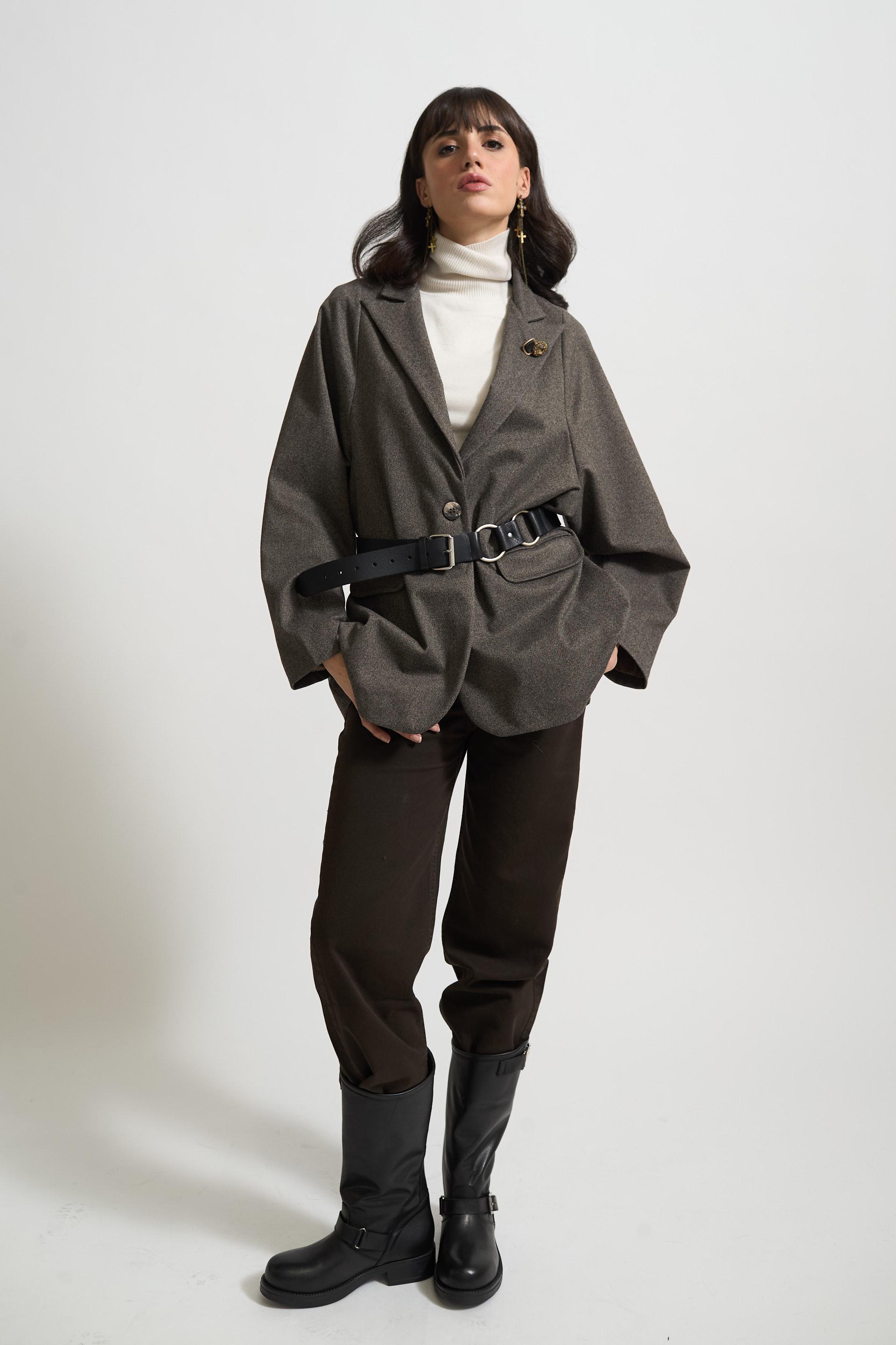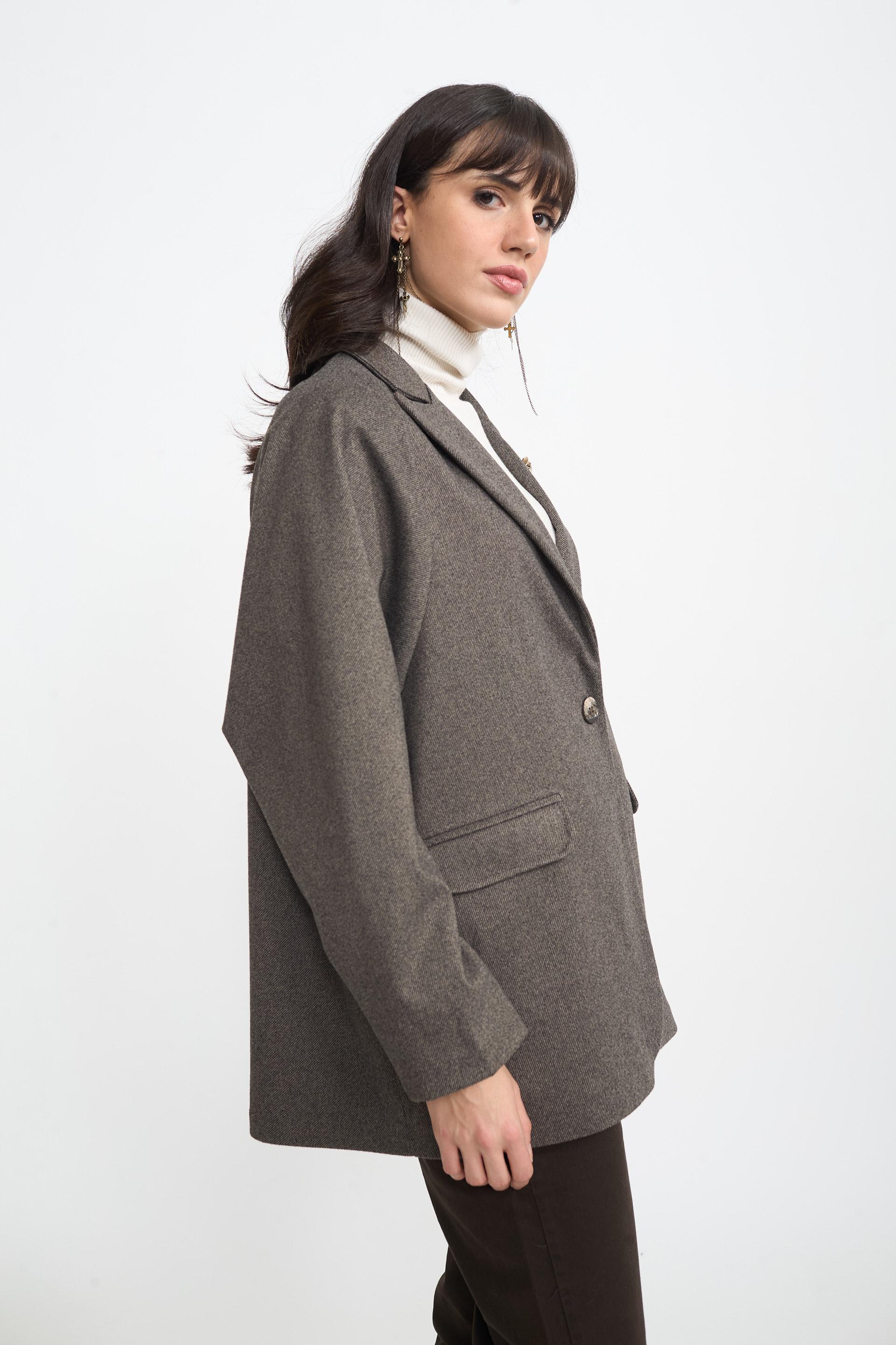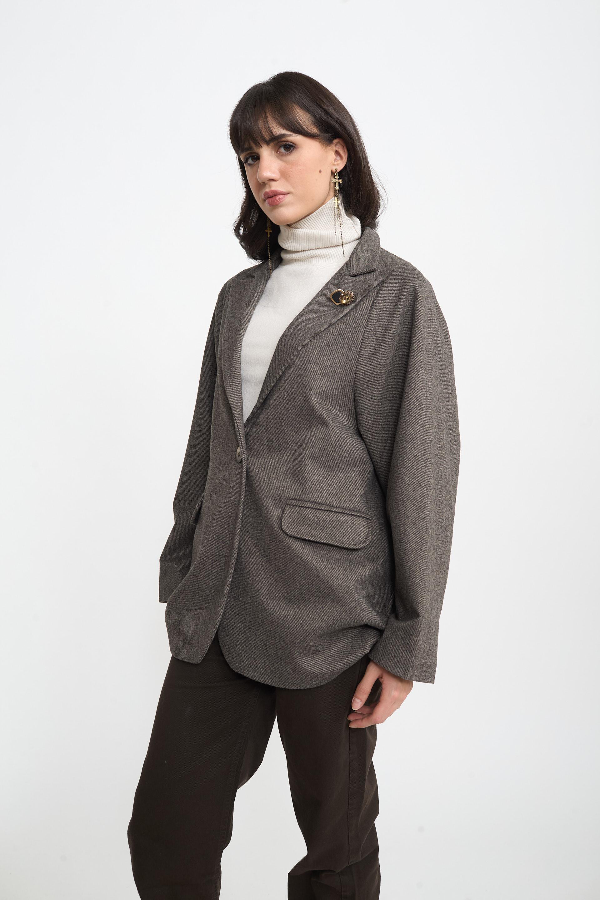| Giacca over con finte tasche con pattine e dettagli di bottoni gioielli a decoro. Fodera interna e chiusura tramite 1 bottone. | ||