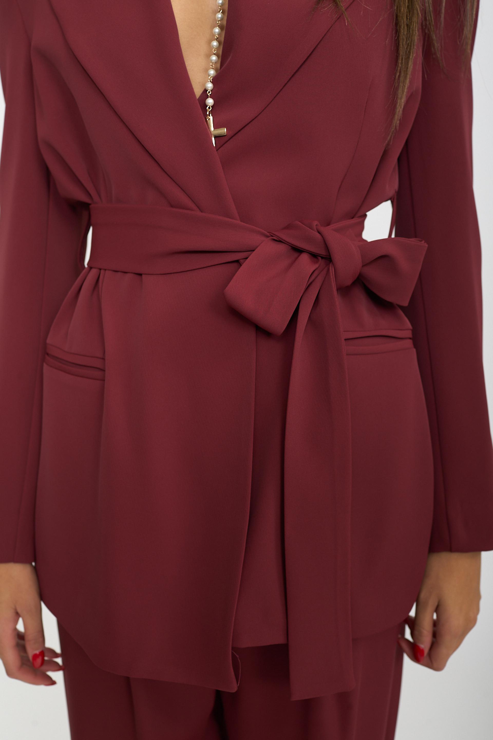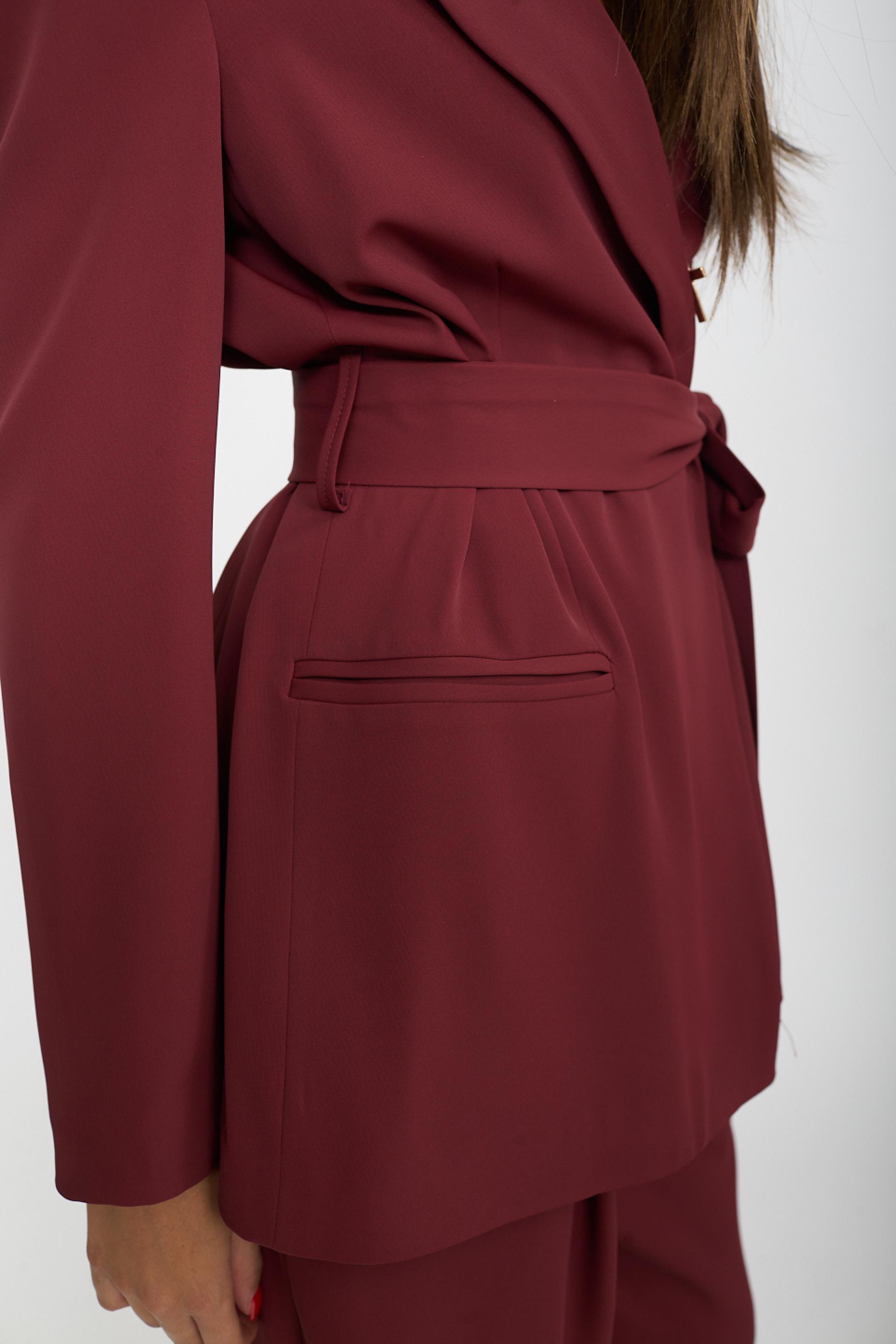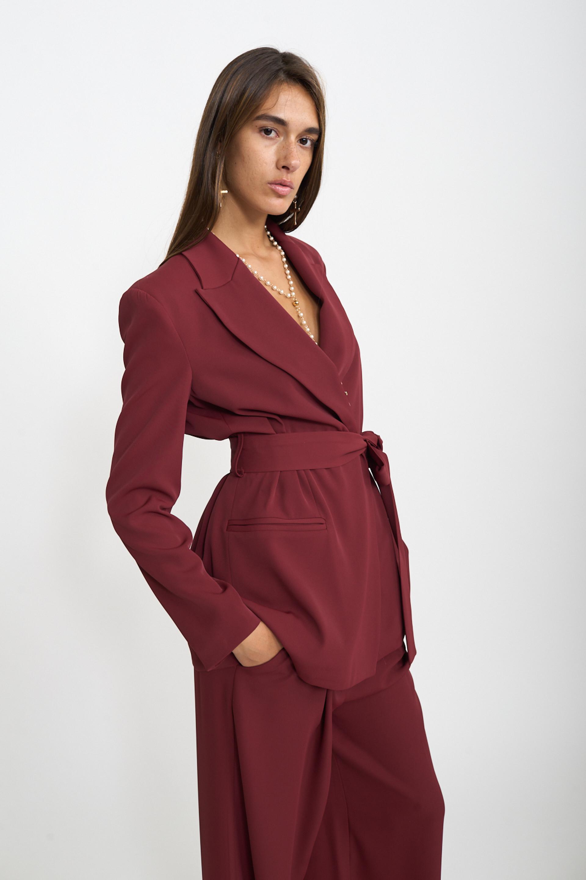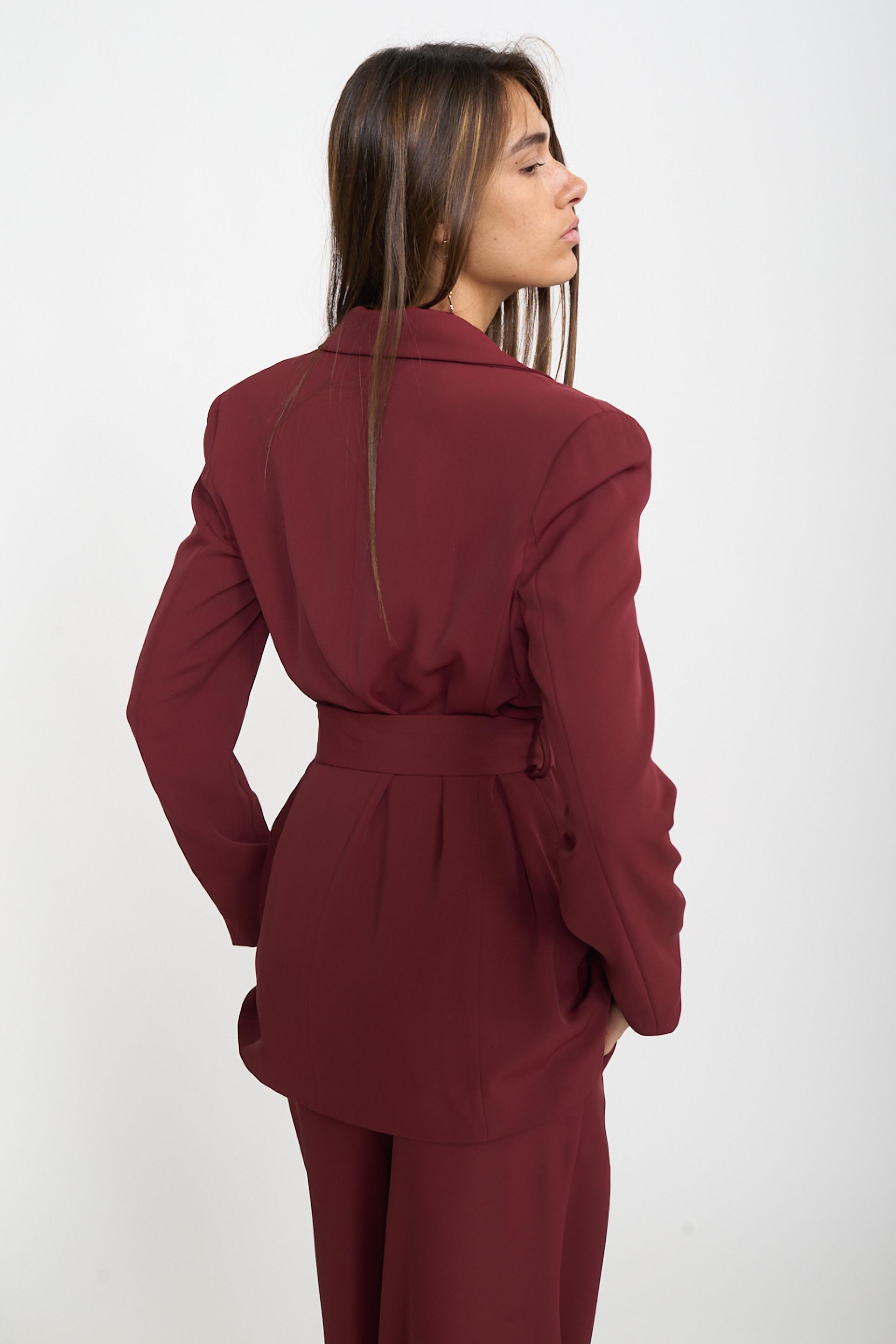 | Giacca con collo revers in tessuto fluido con finte tasche a filetto. Spalline imbottite e fodera interna tono su tono. Passanti in vita e fusciacca in tessuto. | ||