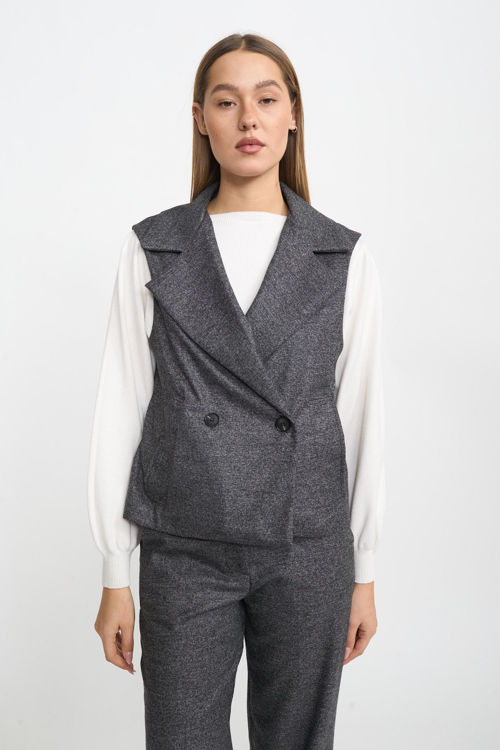 | Gilet collo revers doppio petto con tasche laterali. Fodera interna. | ||