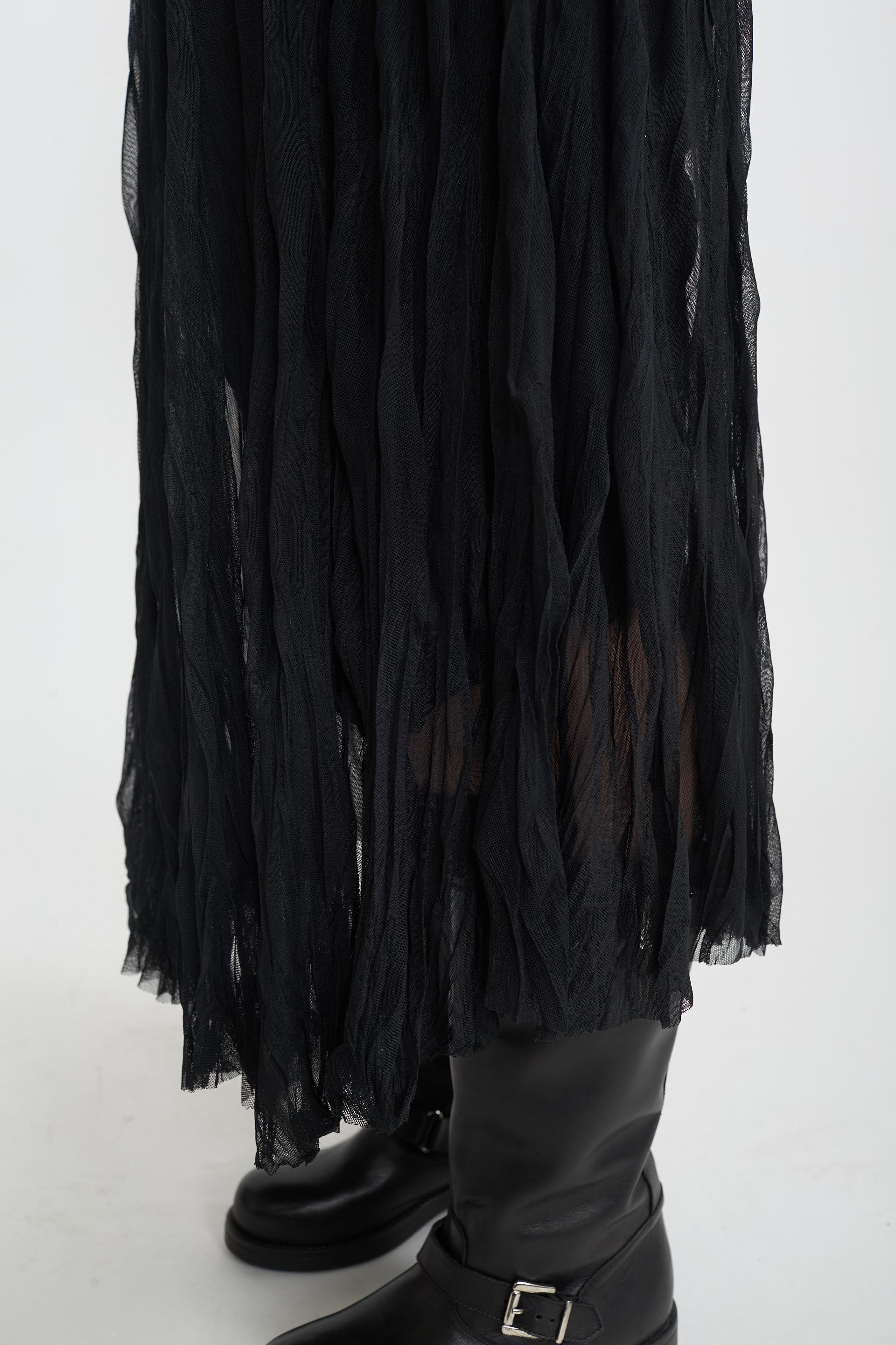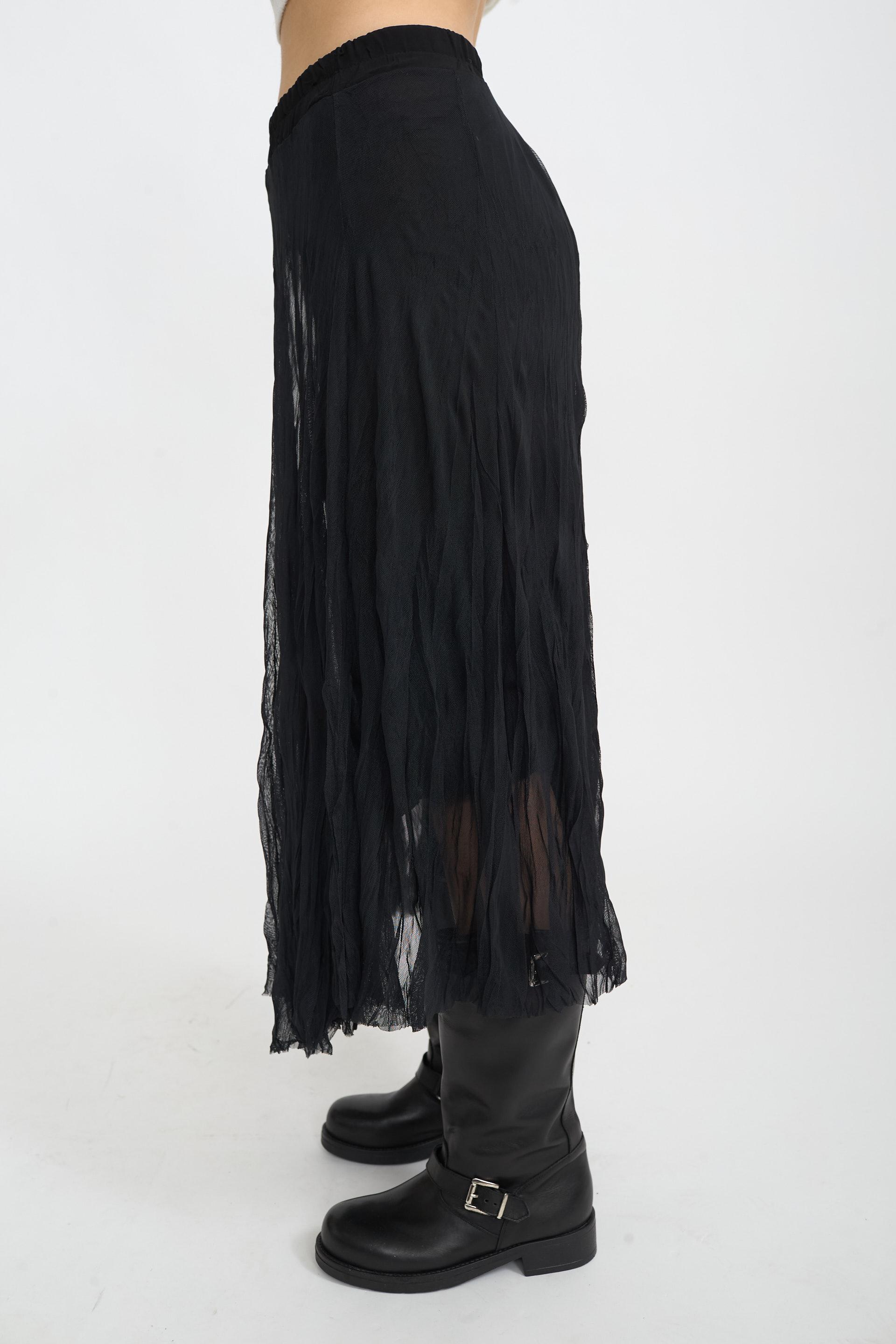 | Gonna midi in tulle effetto goffrato con elastico in vita. Fodera interna tono su tono. | ||