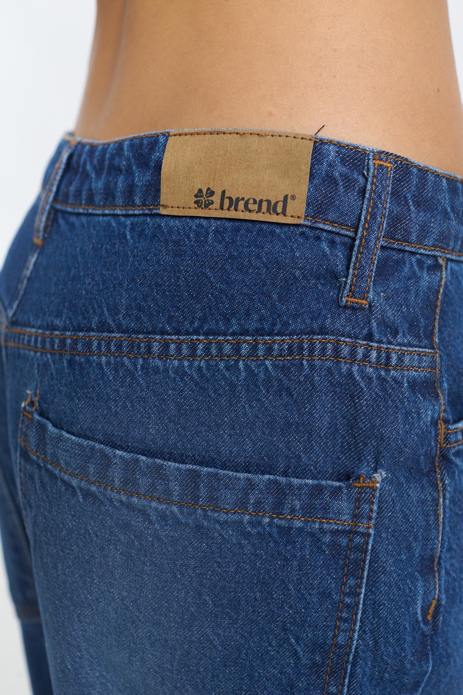 | Jeans palazzo con tasconi posteriori. Chiusura tramite bottone metallico loggato e cerniera. | ||