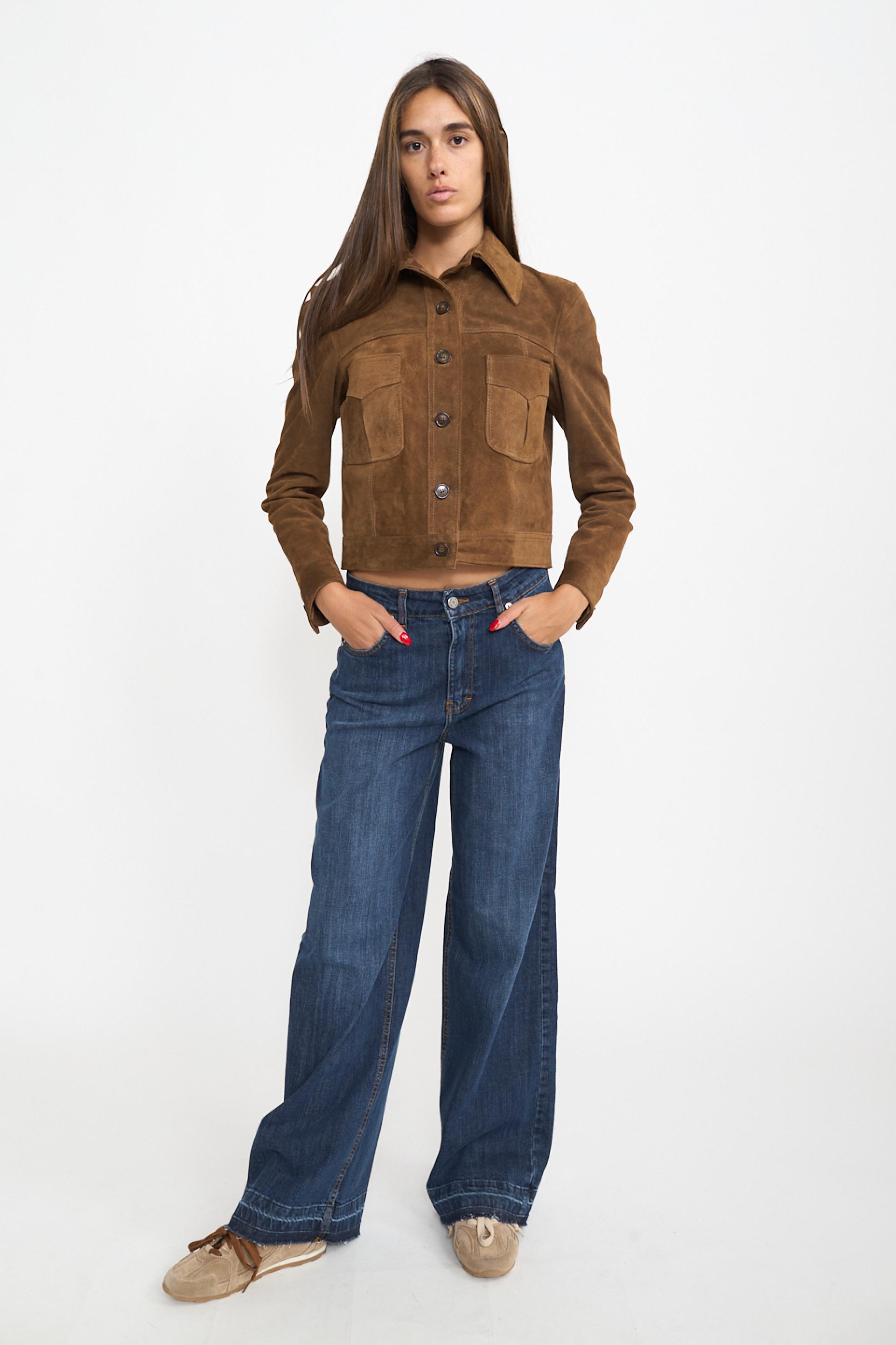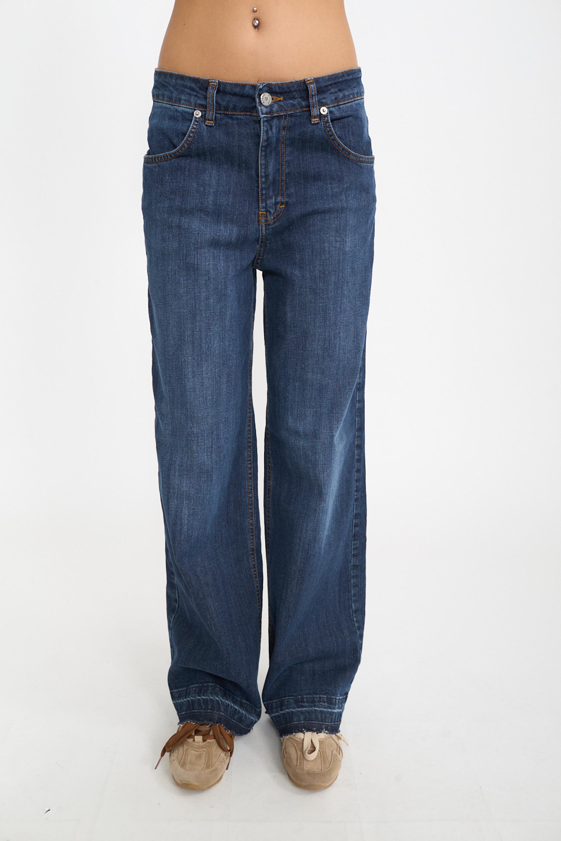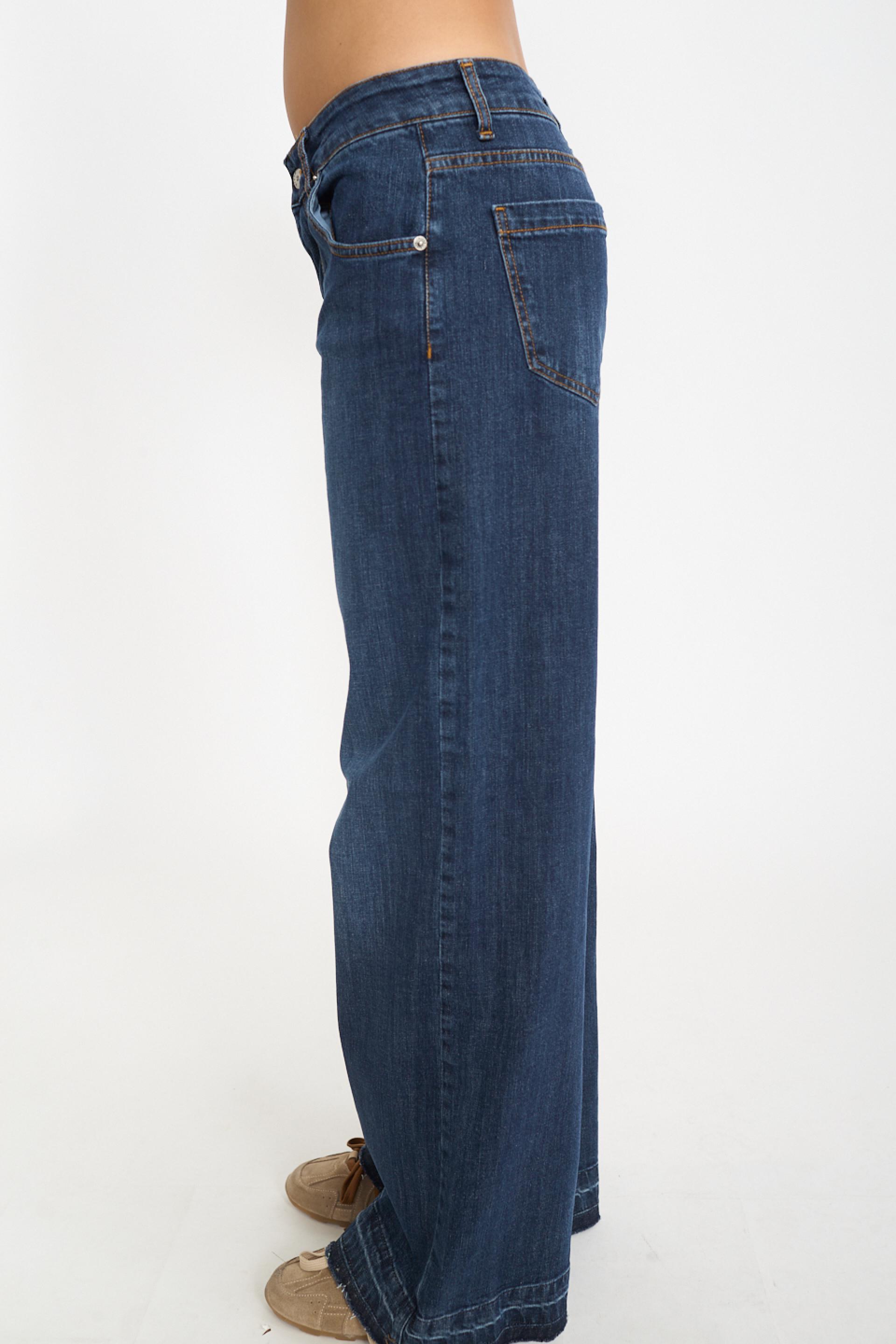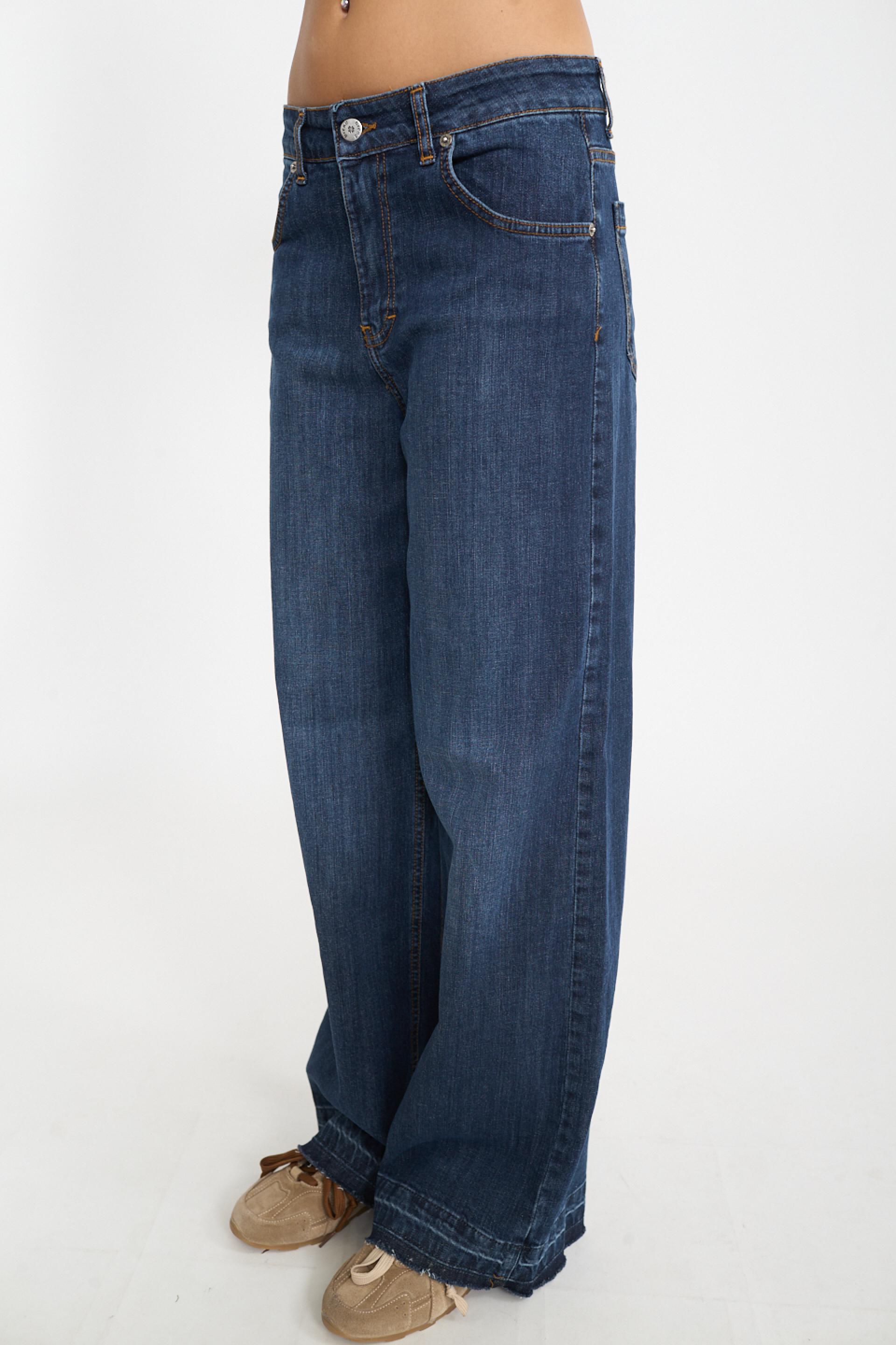 | Jeans wide-leg 5 tasche con orlo sfilacciato. Passanti in vita e targhetta posteriore loggata in cuoio. Chiusura tramite cerniera e bottone metallico loggato. | ||