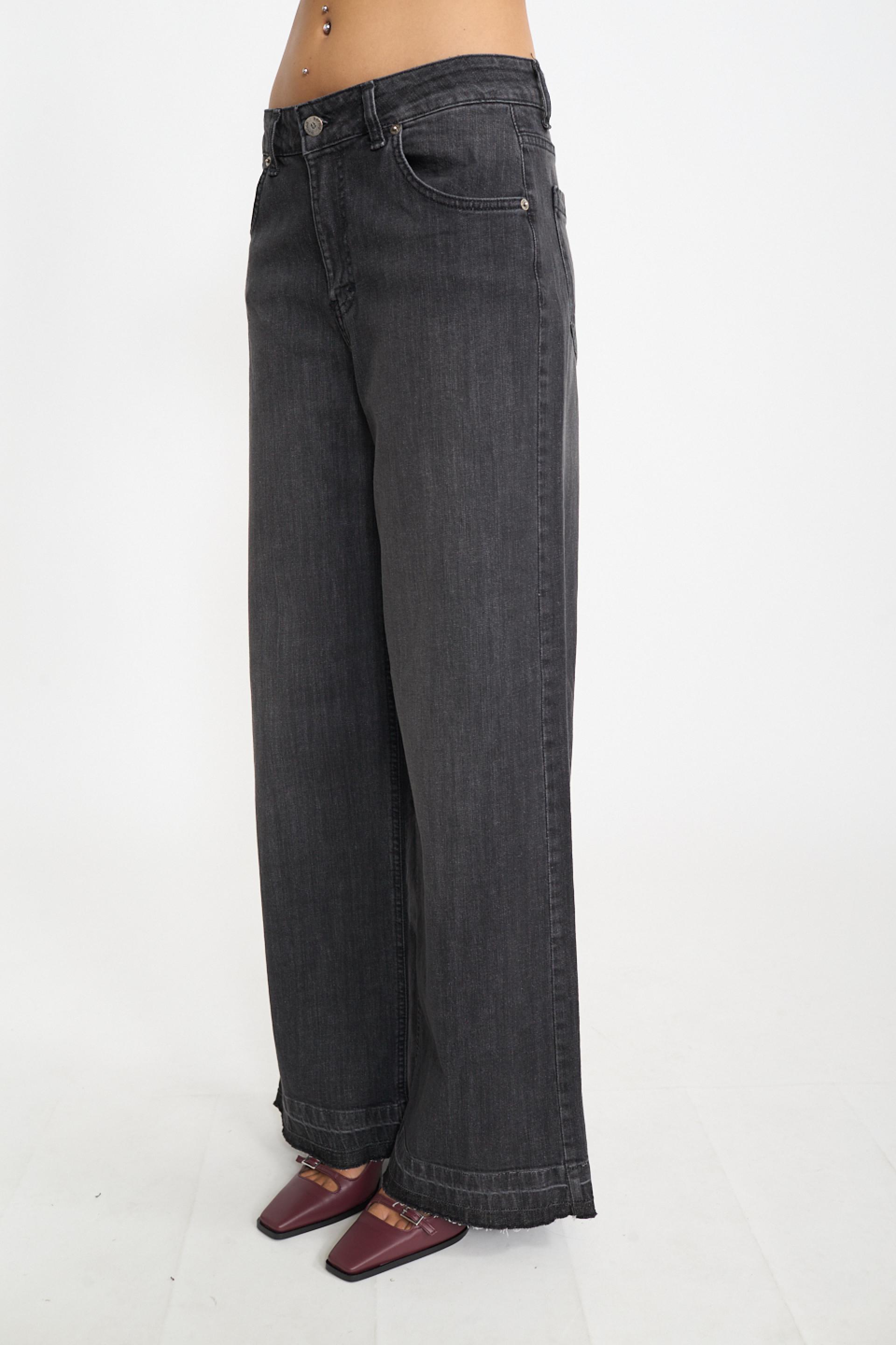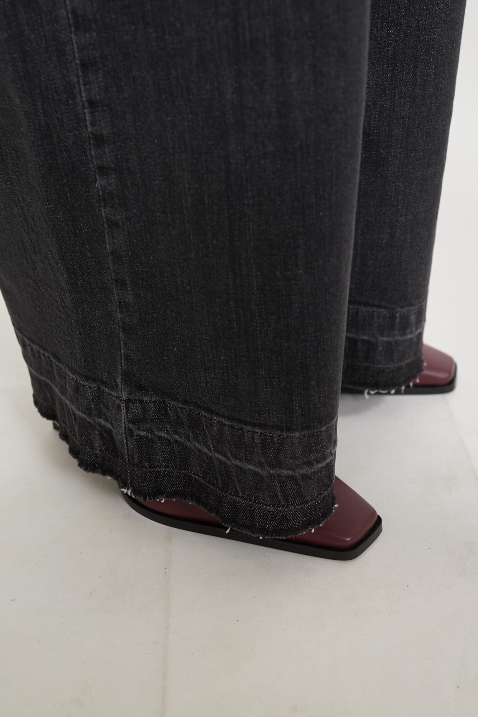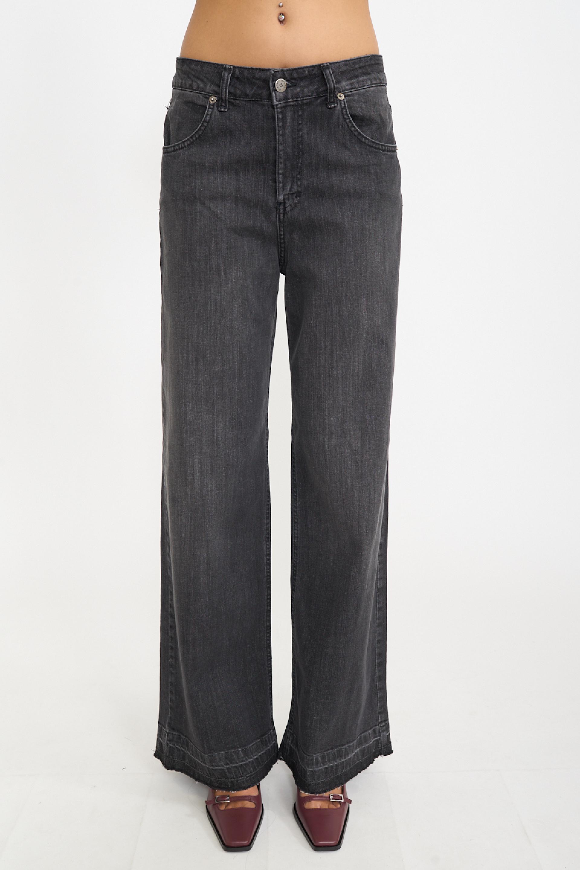 | Jeans wide-leg 5 tasche con orlo sfilacciato. Passanti in vita e targhetta posteriore loggata in cuoio. Chiusura tramite cerniera e bottone metallico loggato. | ||