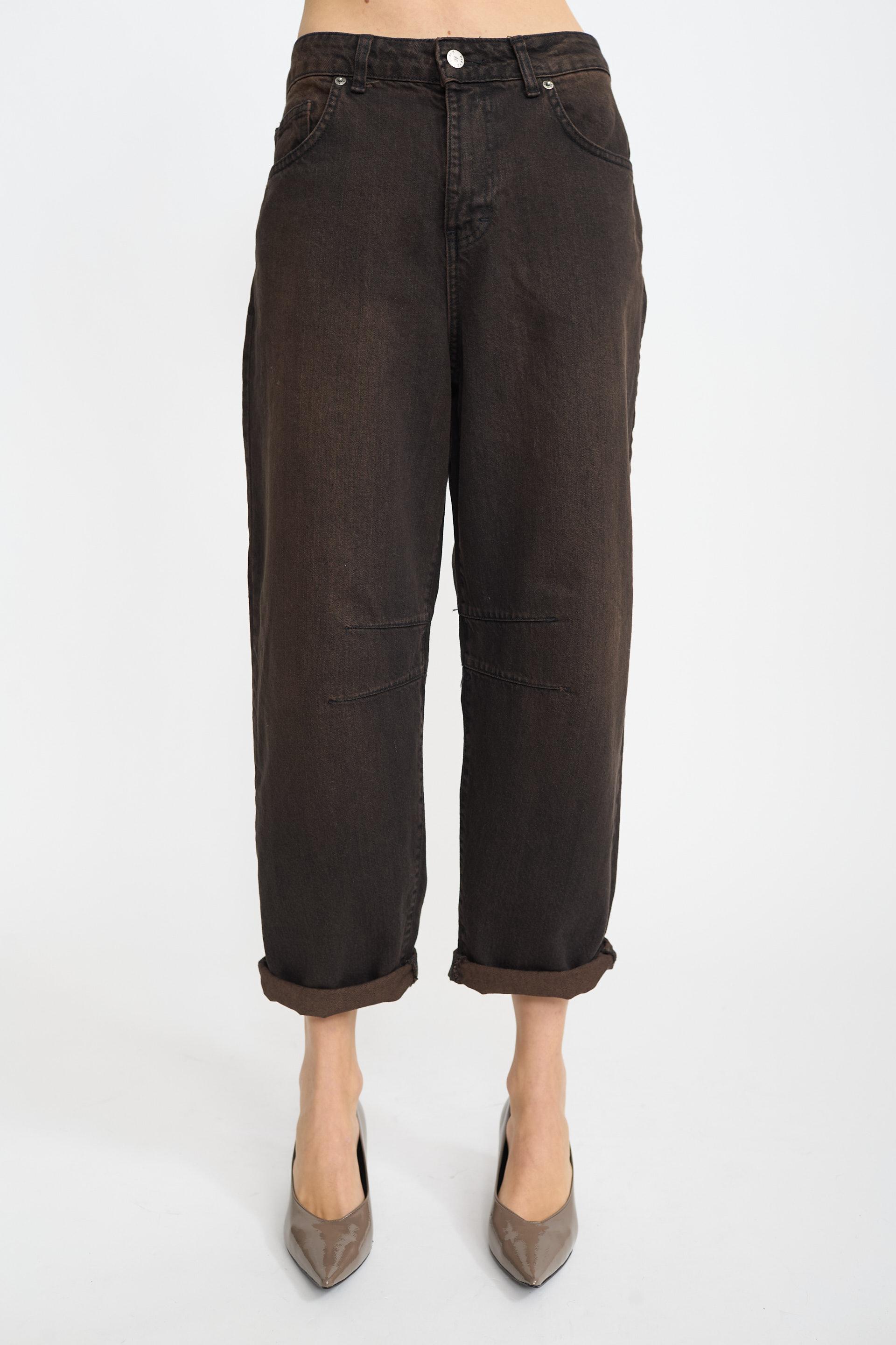 | Jeans barrel 5 tasche con doppie cuciture al ginocchio. Targhetta posteriore loggata in cuoio. Chiusura tramite bottone metallico loggato e cerniera. | ||