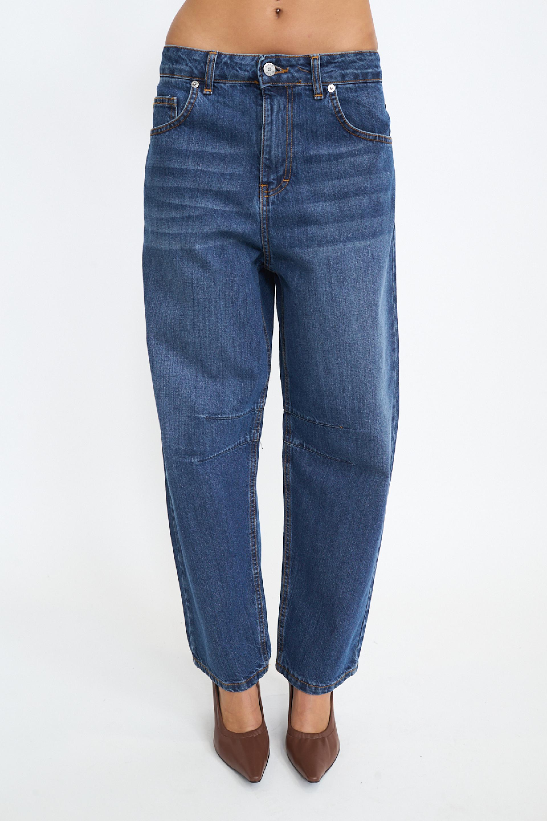 | Jeans balloon 5 tasche con doppie cuciture sul ginocchio. Passanti in vita e targhetta posteriore loggata. Chiusura tramite cerniera e bottone metallico loggato. | ||