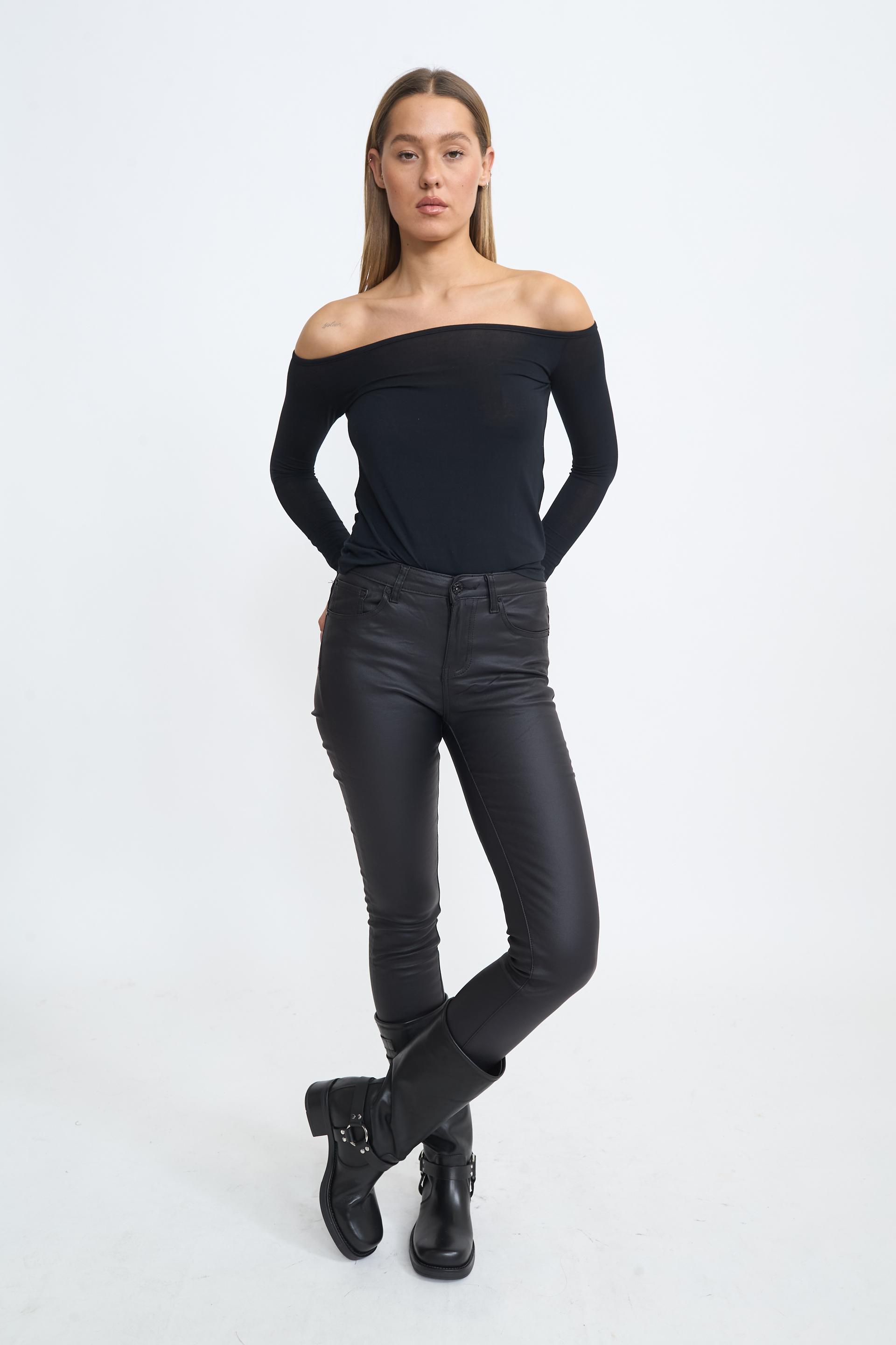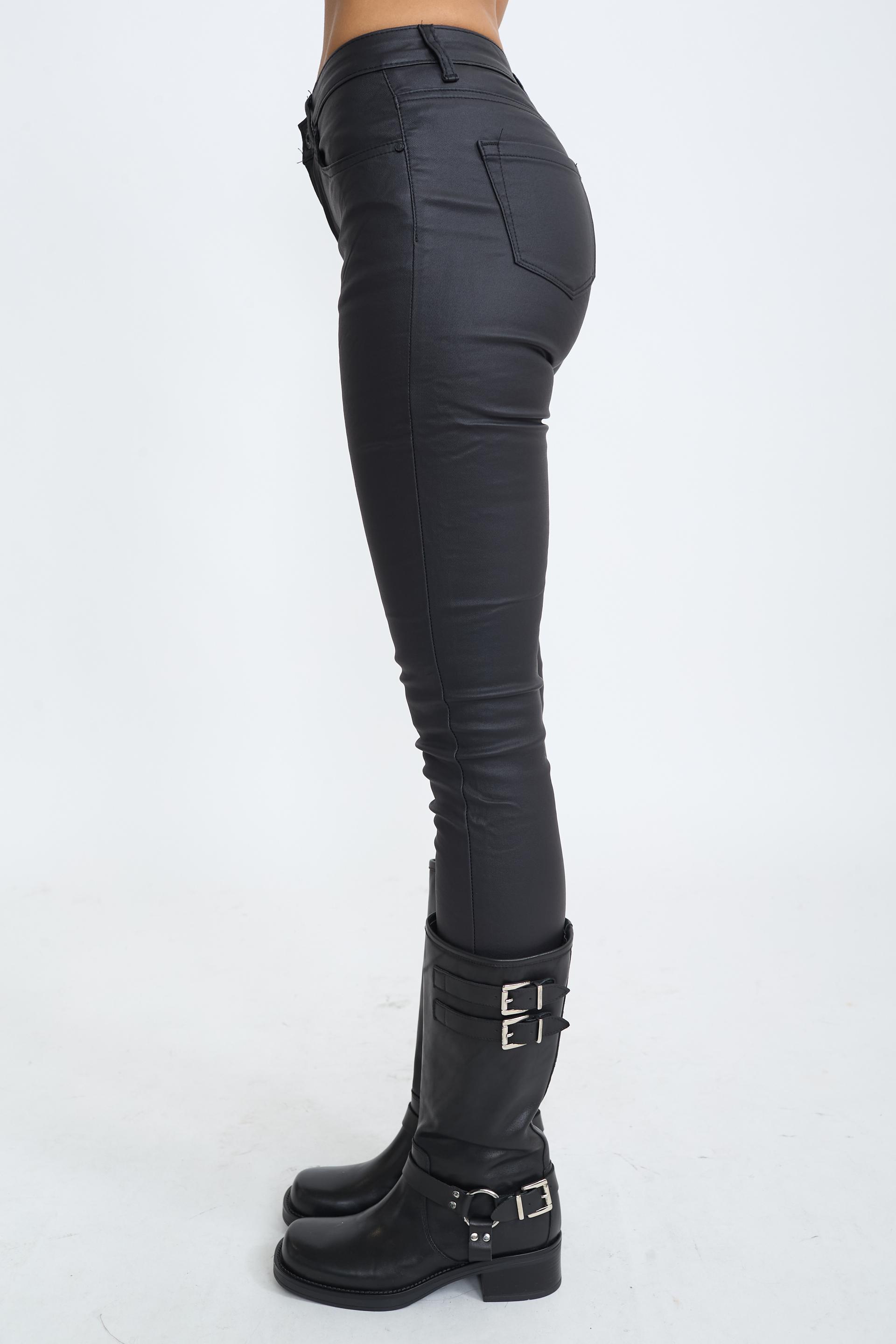 Leggins 5 tasche effetto pelle. Targhetta posteriore in cuoio loggata. Chiusura tramite cerniera e bottone metallico. | ||