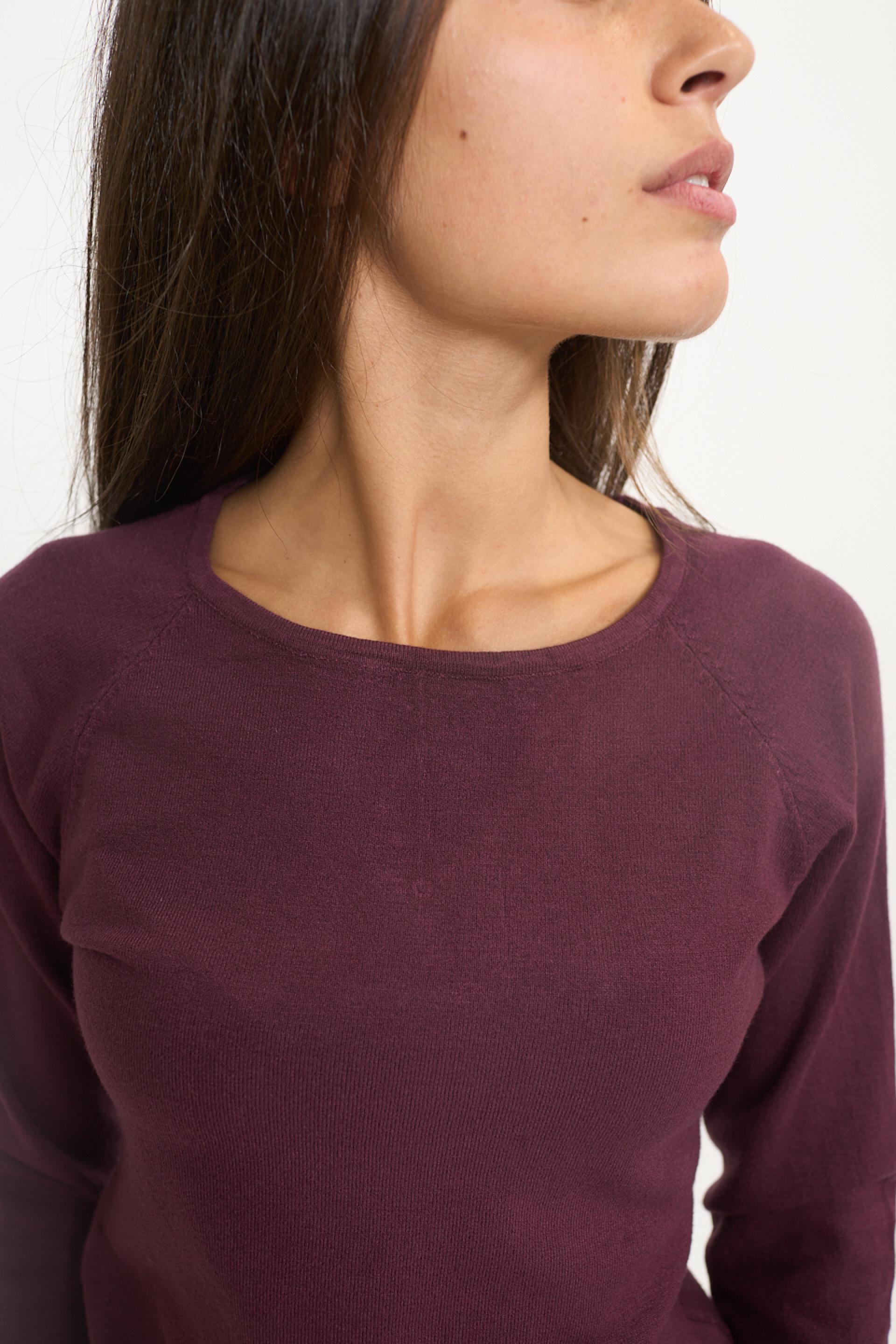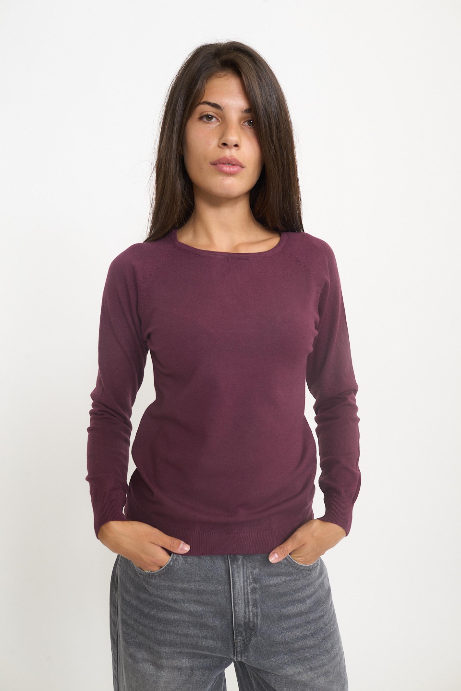 Maglia scollo barca in misto viscosa tinta unita. Dettaglio di lavorazione a coste su polsini e orlo. | ||