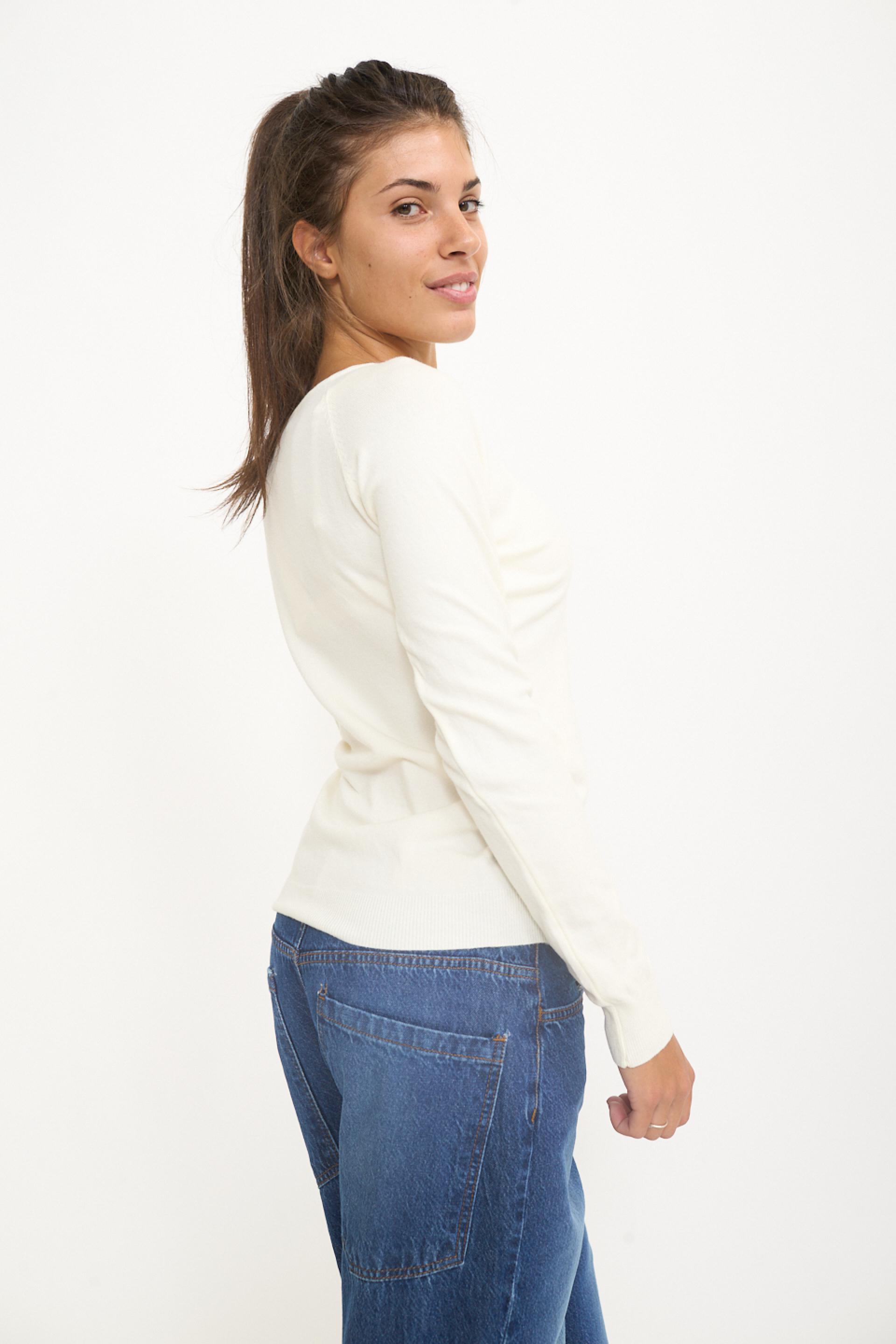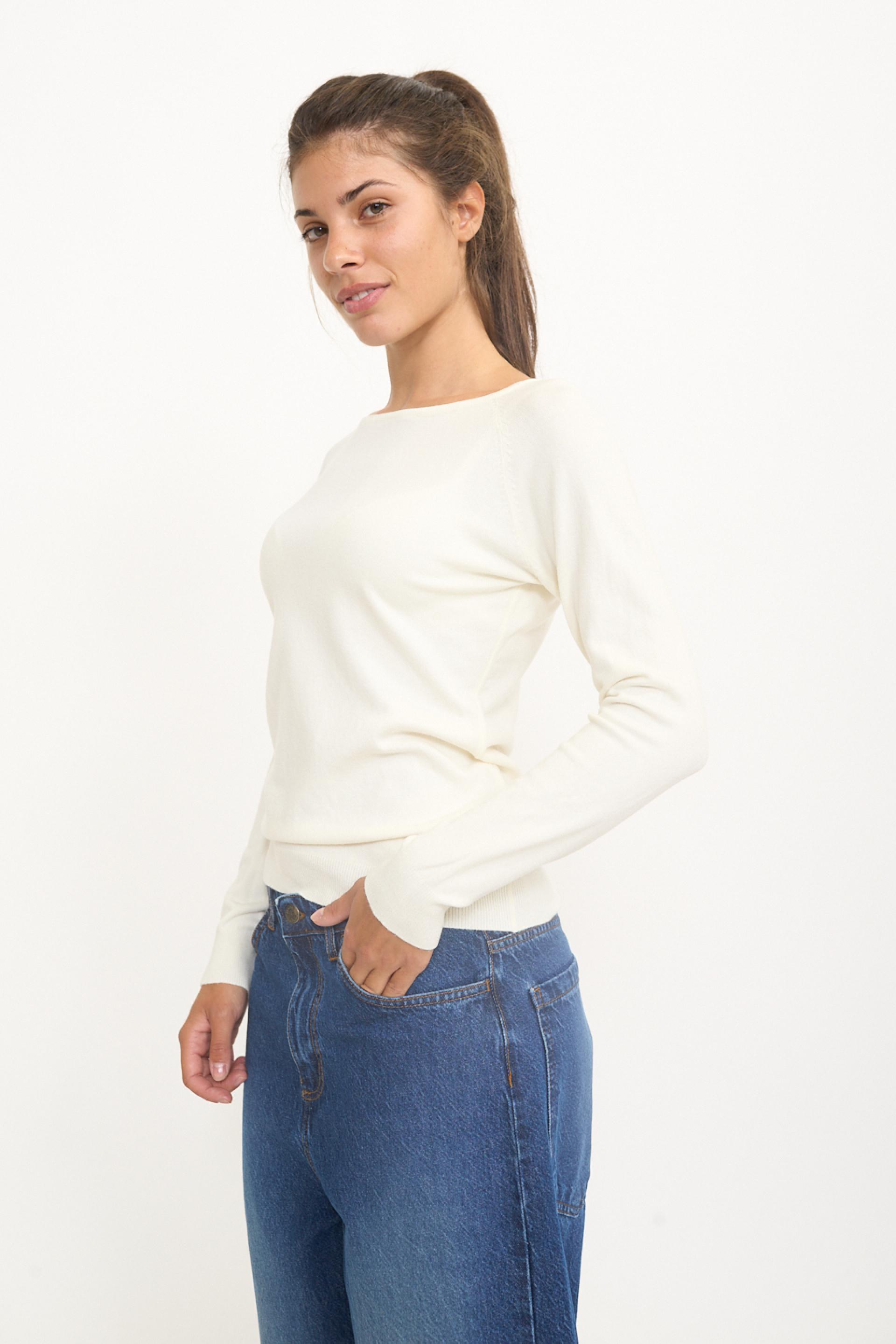 Maglia scollo barca in misto viscosa tinta unita. Dettaglio di lavorazione a coste su polsini e orlo. | ||