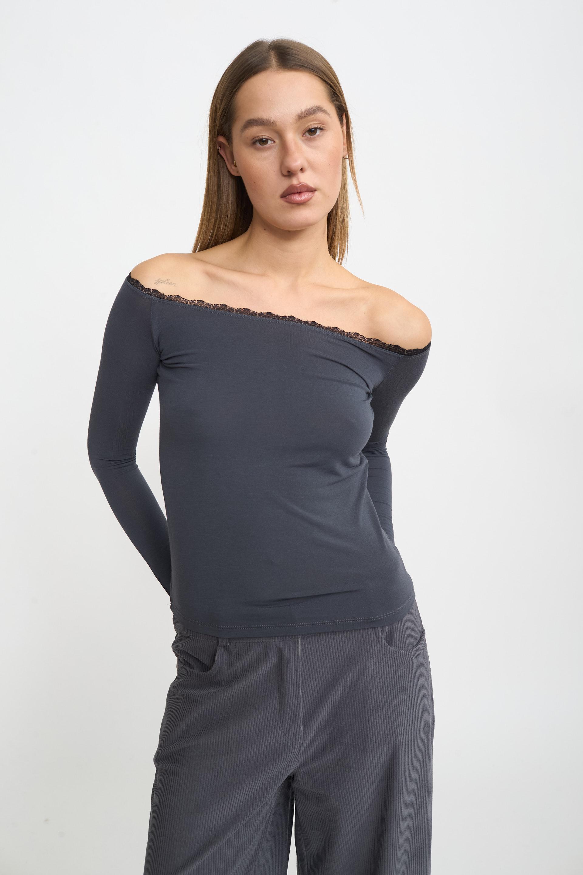 | Maglia scollo barca con pizzo in misto viscosa. | ||