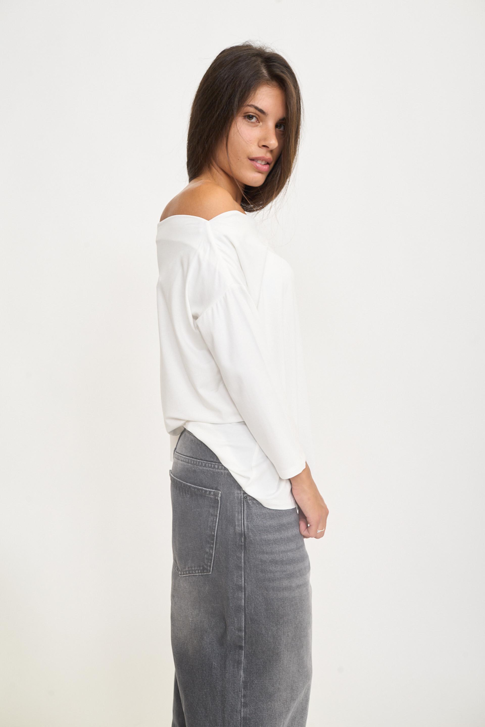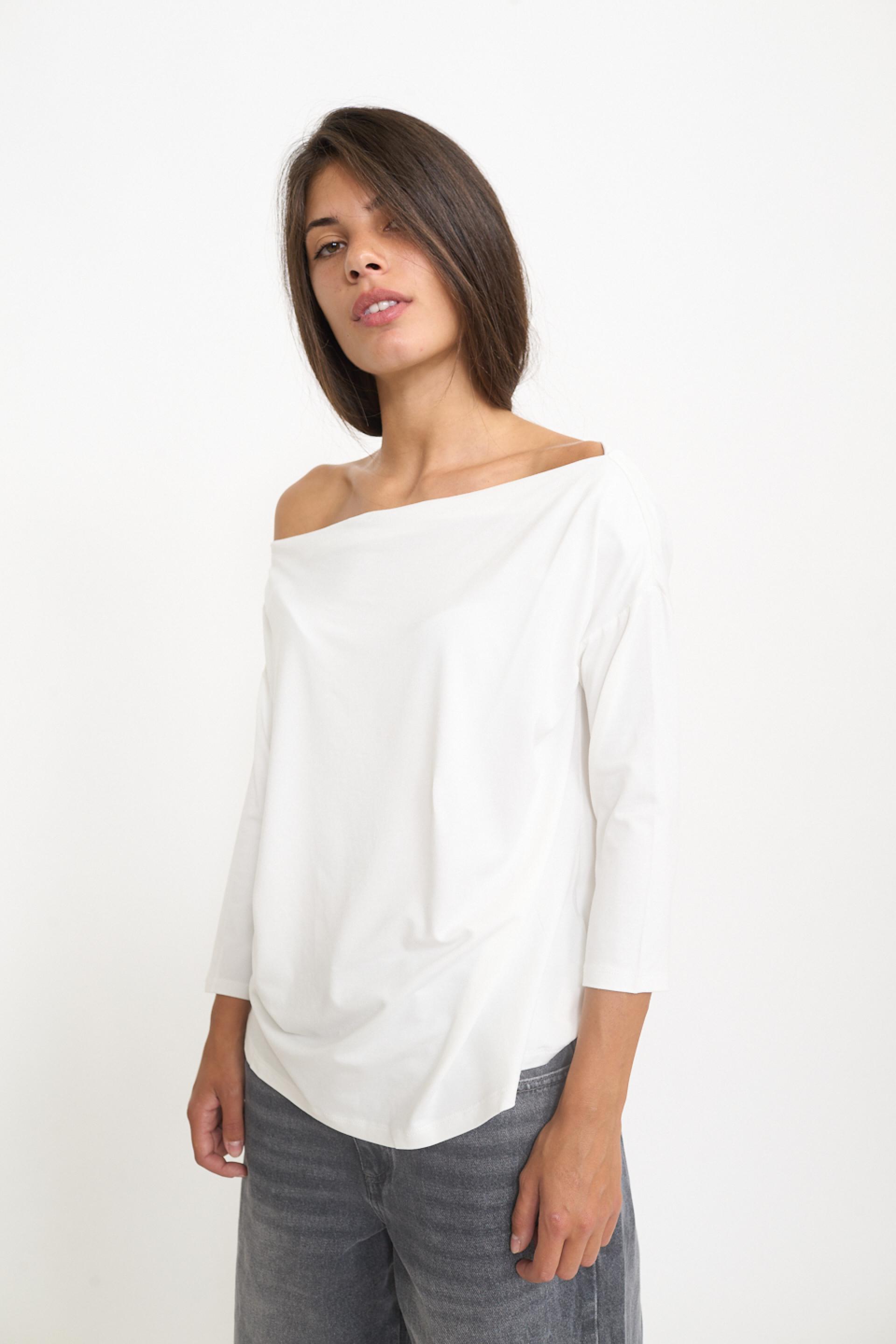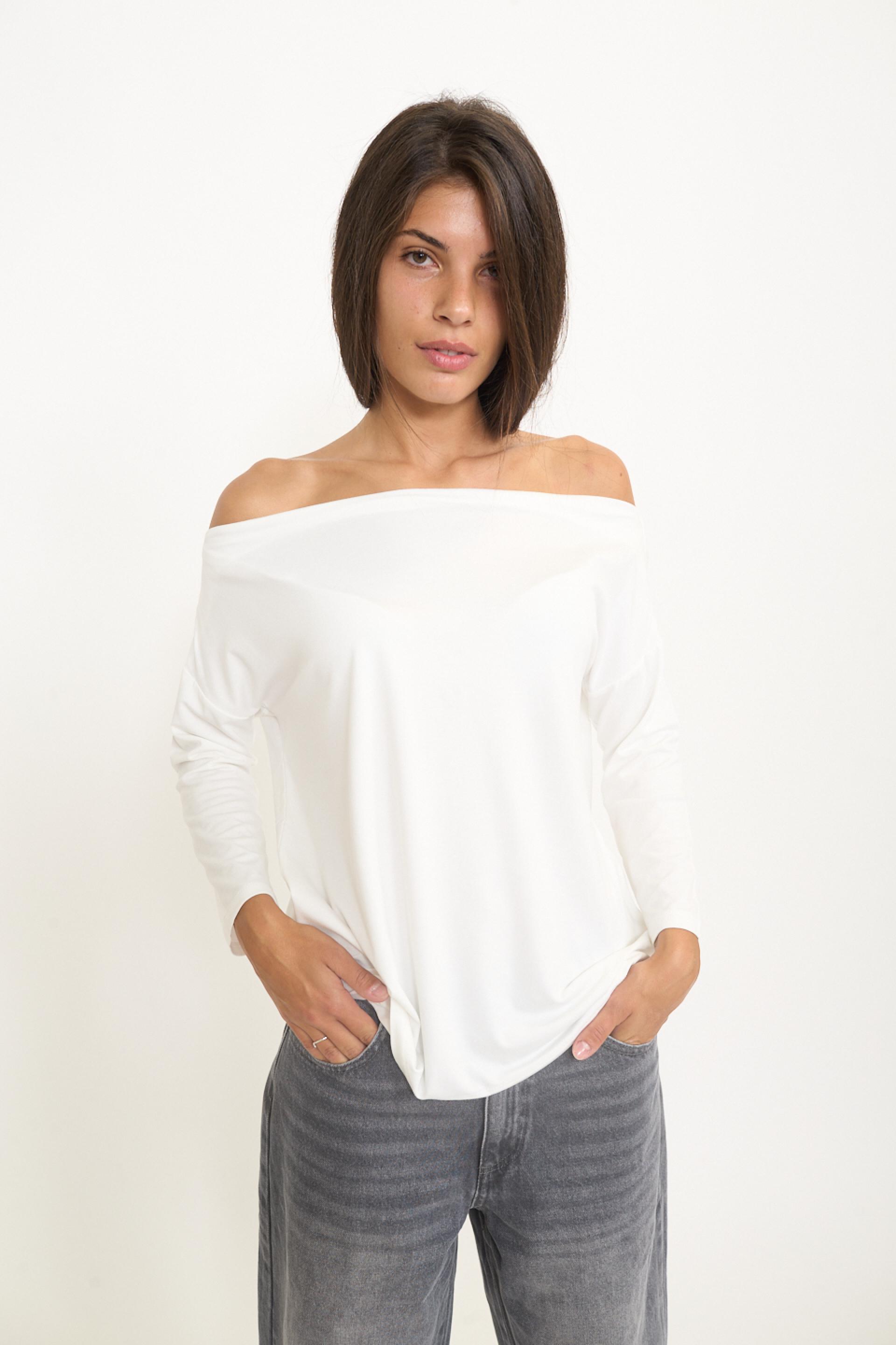 Maglia manica lunga in cotone a tinta unita con scollo a gronda. | ||