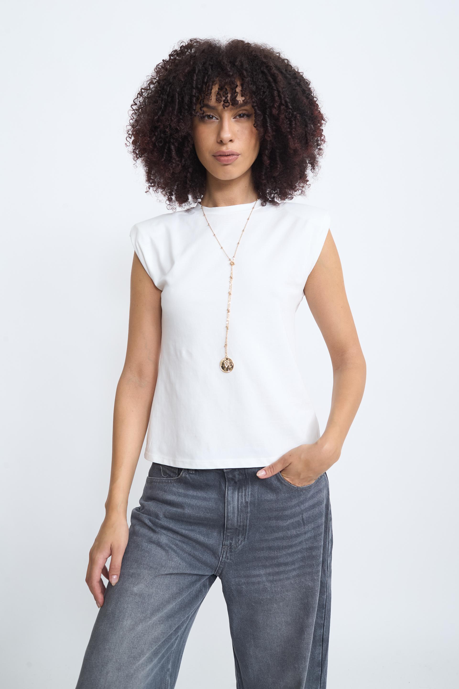 Maglia america mezza manica in cotone tinta unita con spalline. | ||