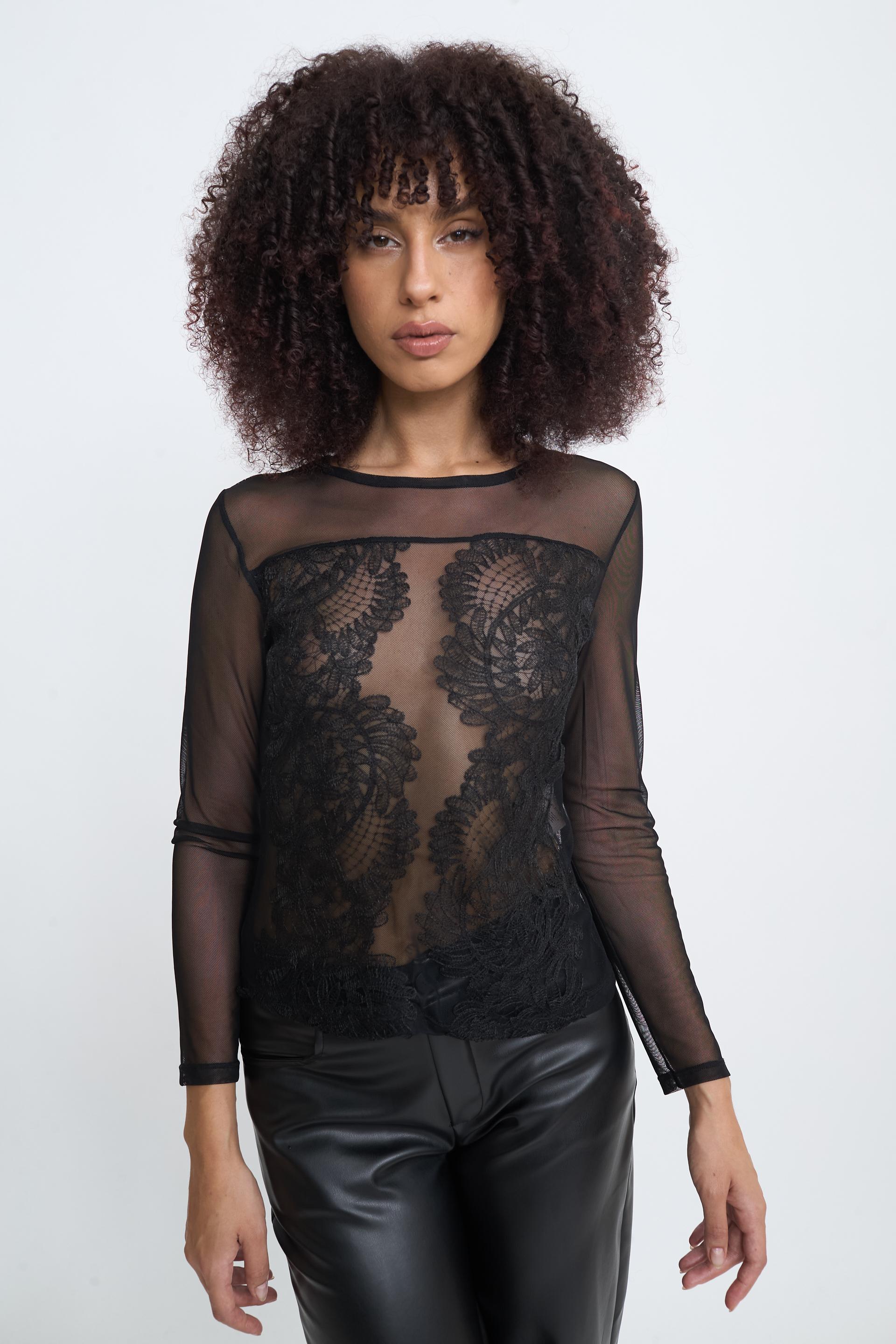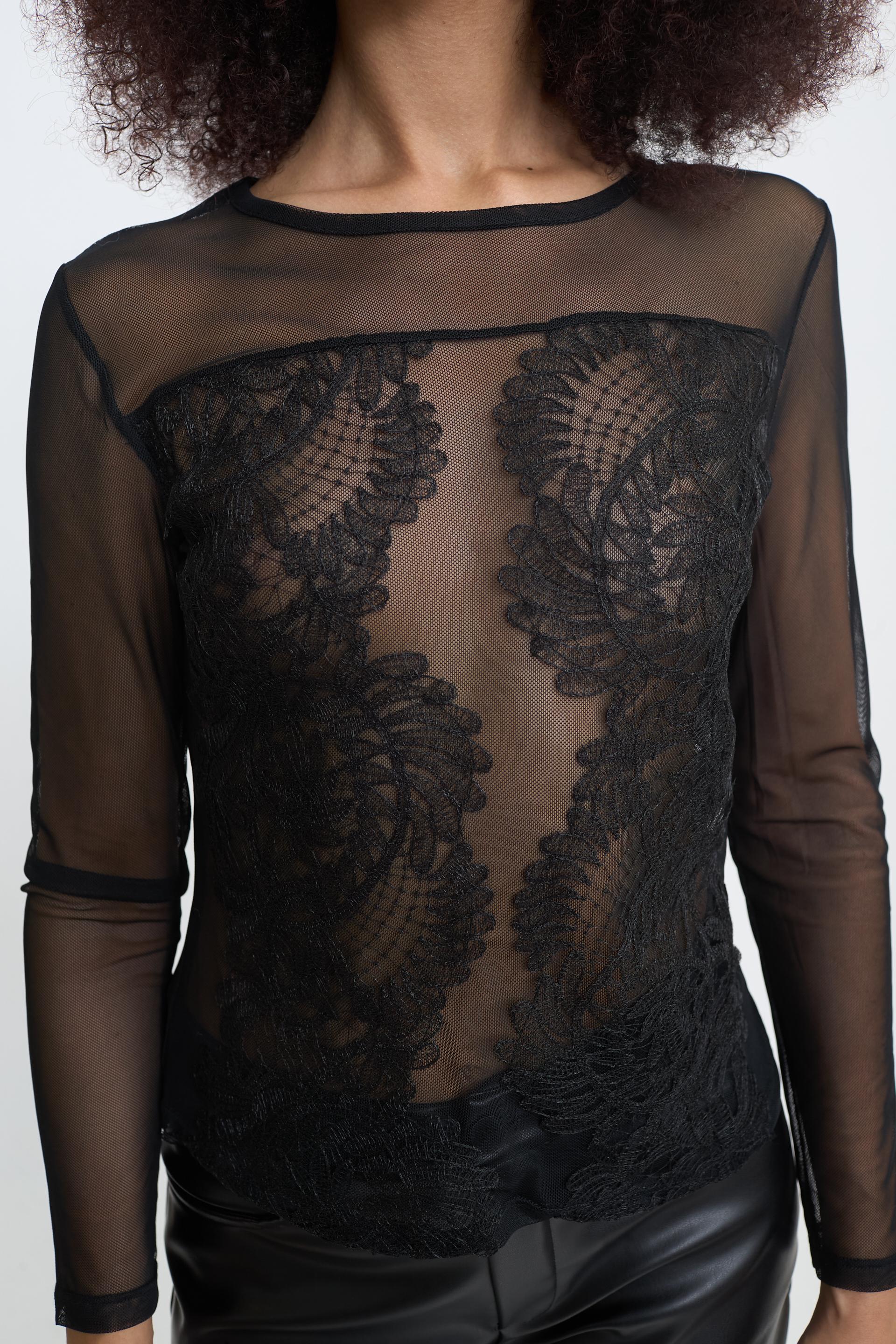 Maglia in tulle con lavorazione frontale in pizzo. | ||