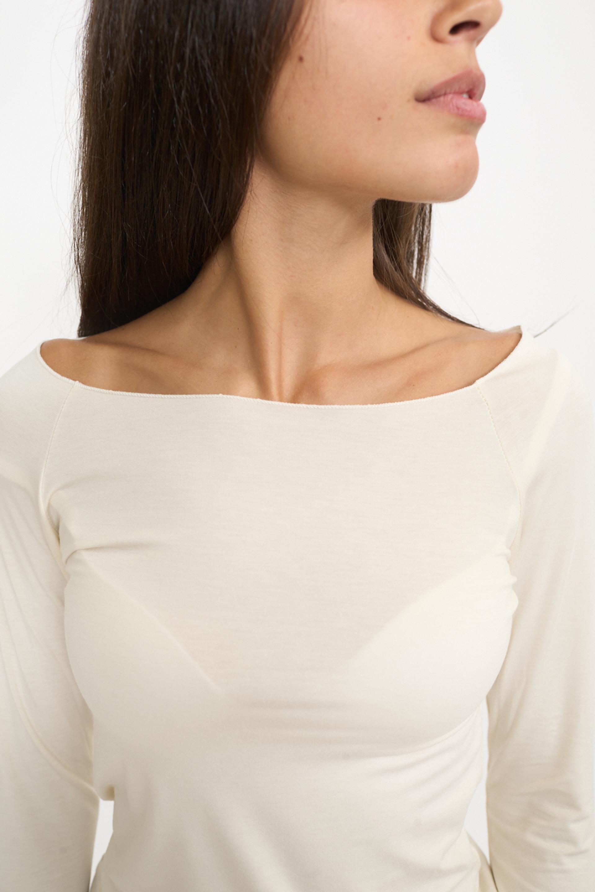 Maglia con scollo barca frullino in viscosa tinta unita. | ||