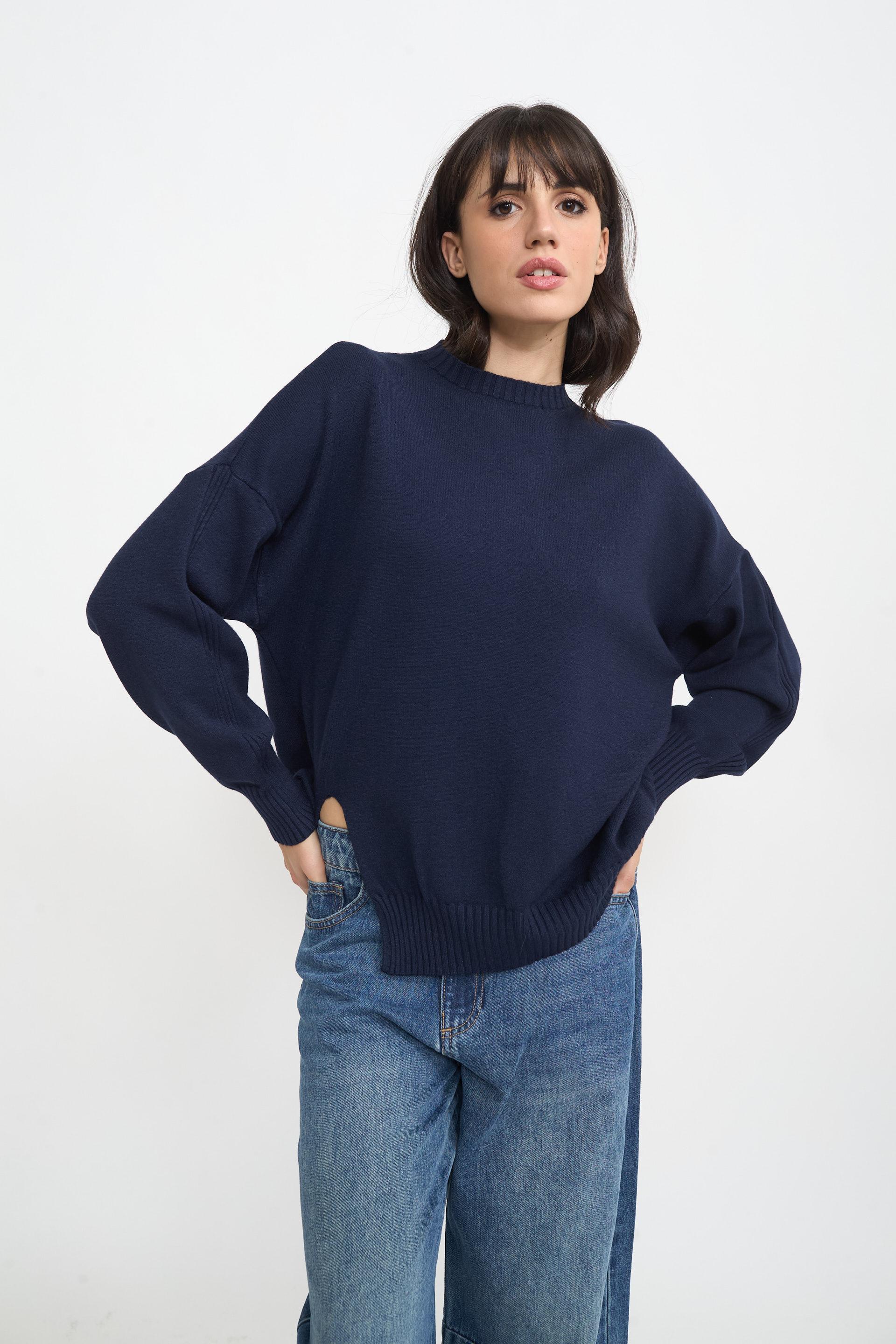 | Maglia girocollo con dettaglio di lavorazione a coste su scollo, polsini e orlo | ||