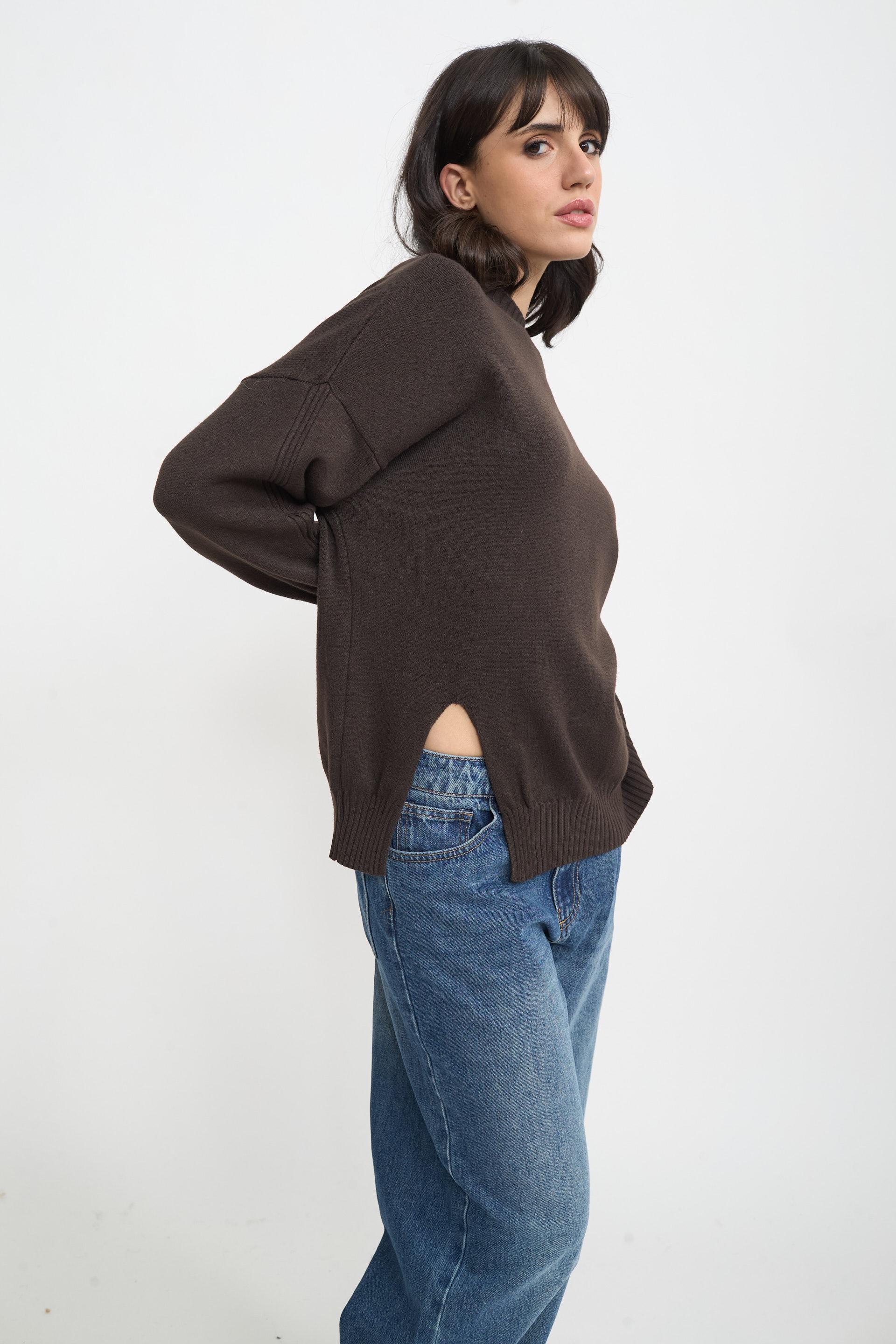 | Maglia girocollo con dettaglio di lavorazione a coste su scollo, polsini e orlo | ||