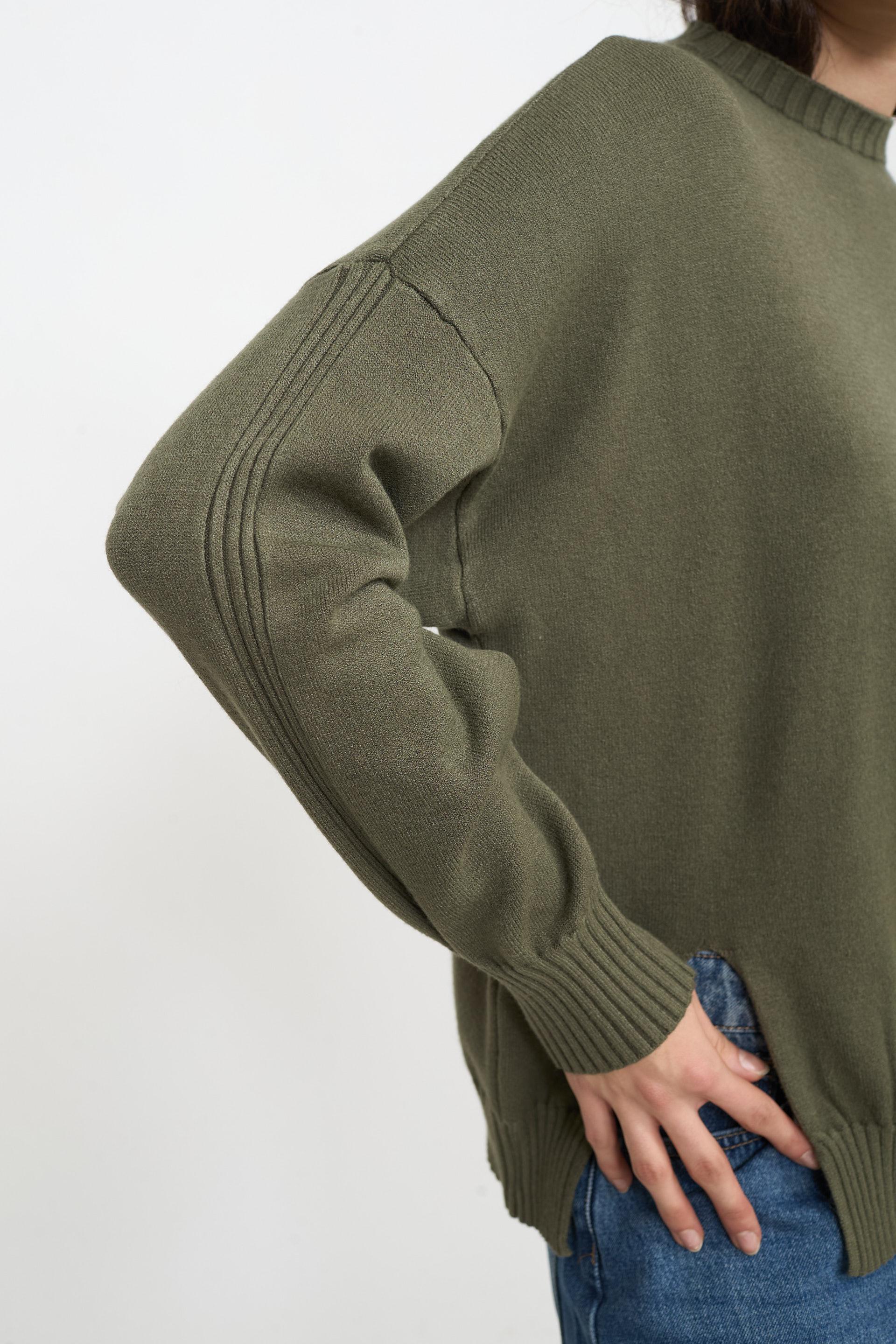 | Maglia girocollo con dettaglio di lavorazione a coste su scollo, polsini e orlo | ||