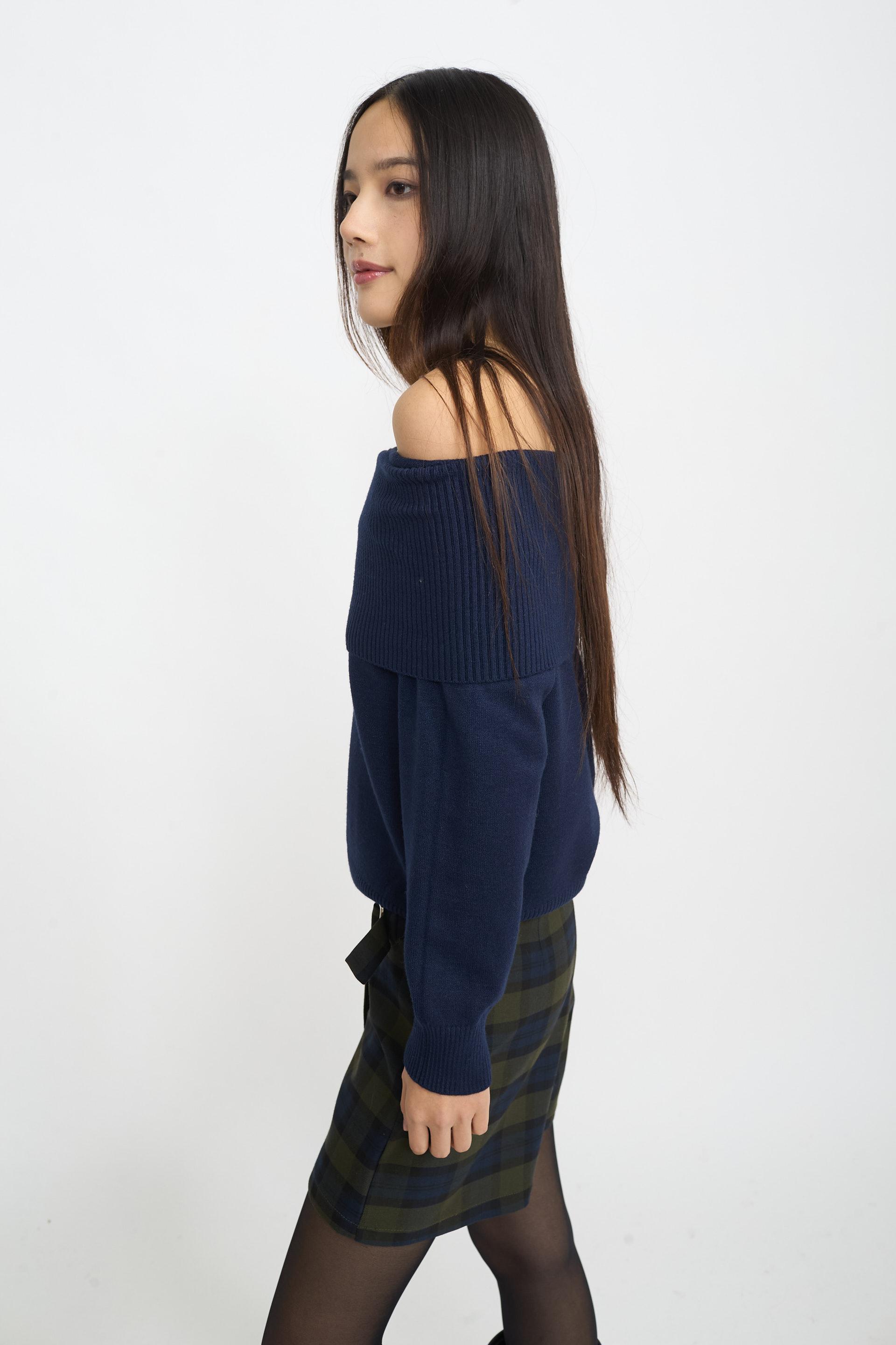 | Maglia shiffer in misto viscosa con lavorazione a costine su collo, polsini e orlo. | ||