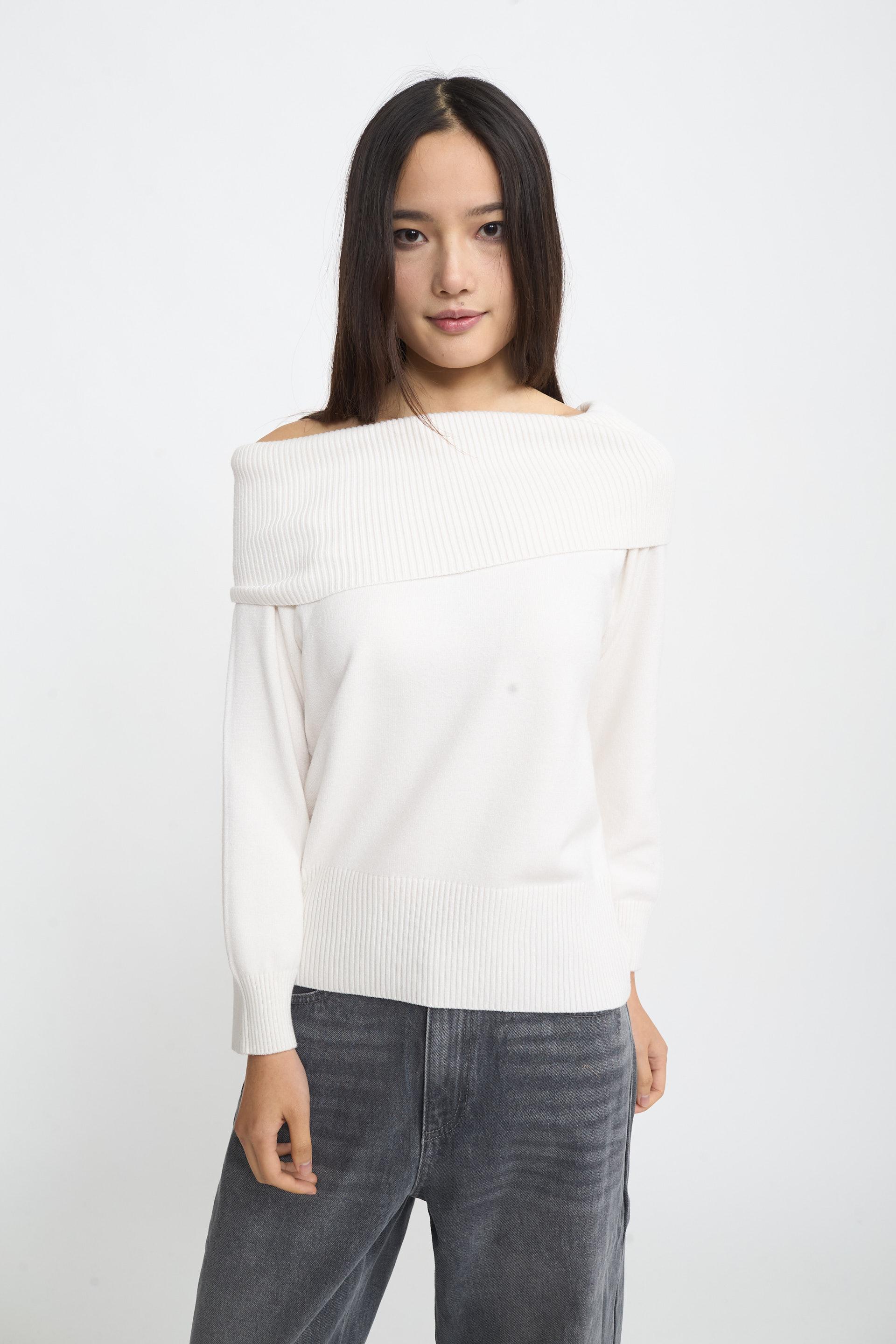 | Maglia shiffer in misto viscosa con lavorazione a costine su collo, polsini e orlo. | ||