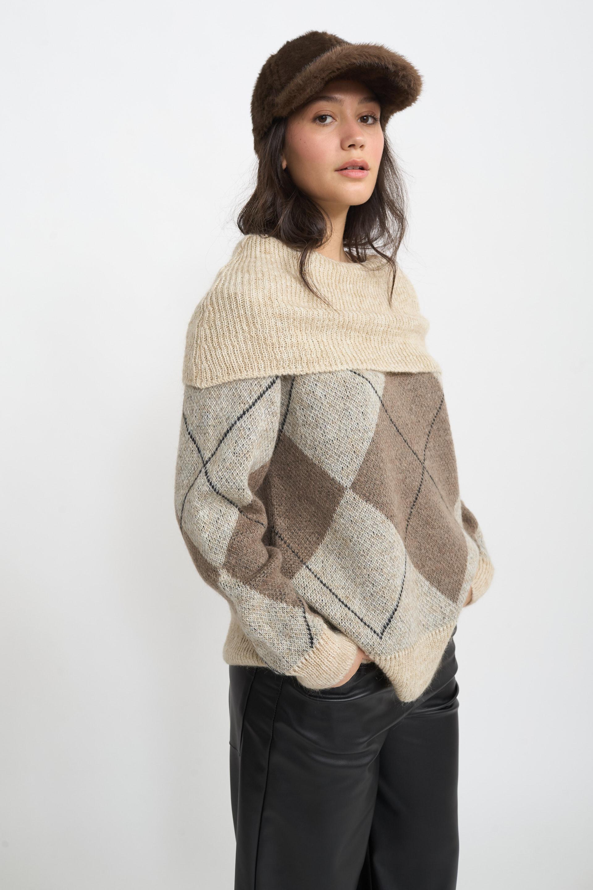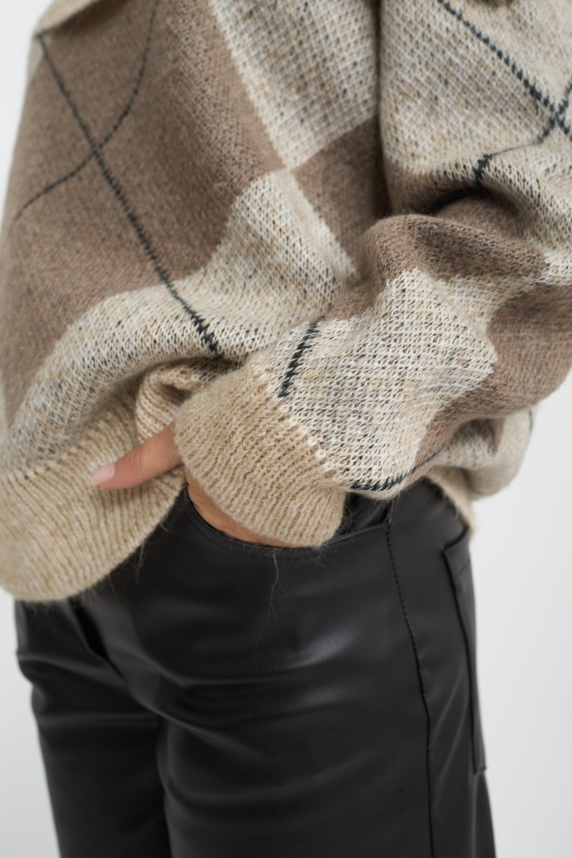 | Maglia over fantasia rombi con scollo shiffer in misto mohair. | ||