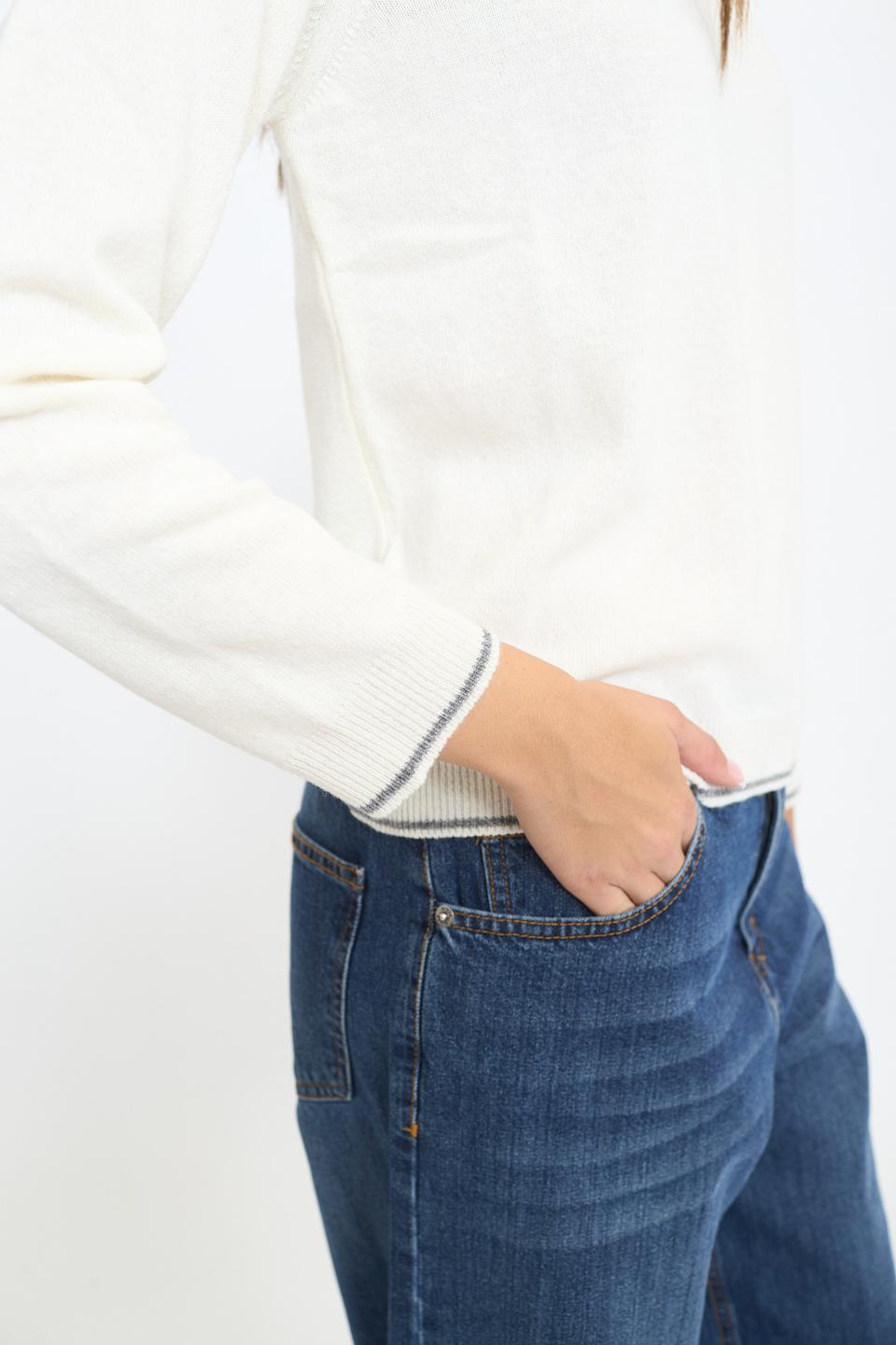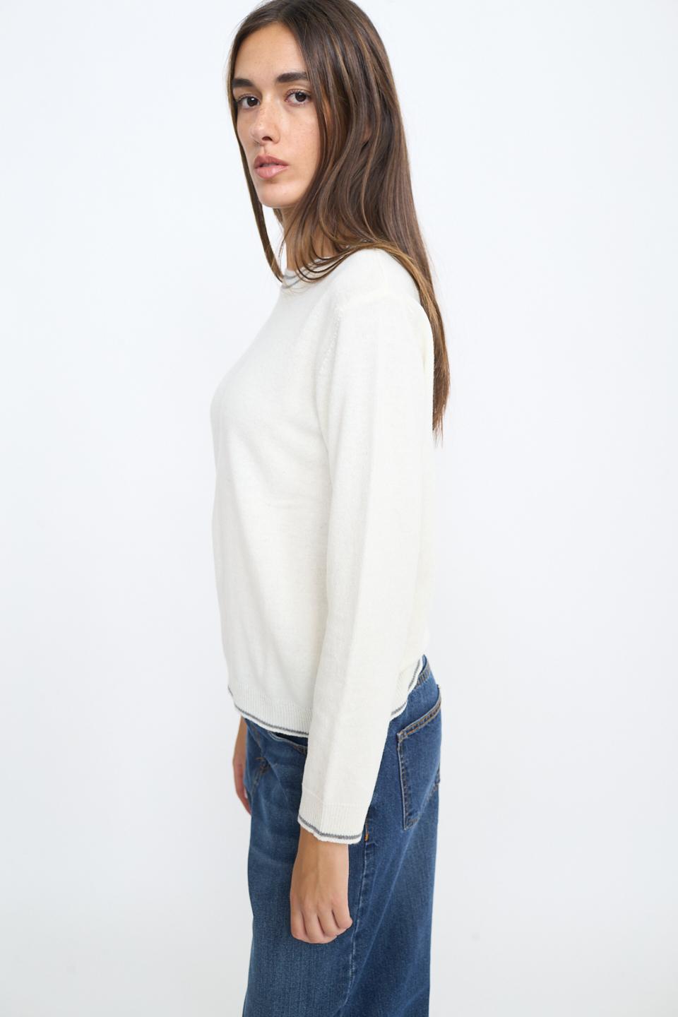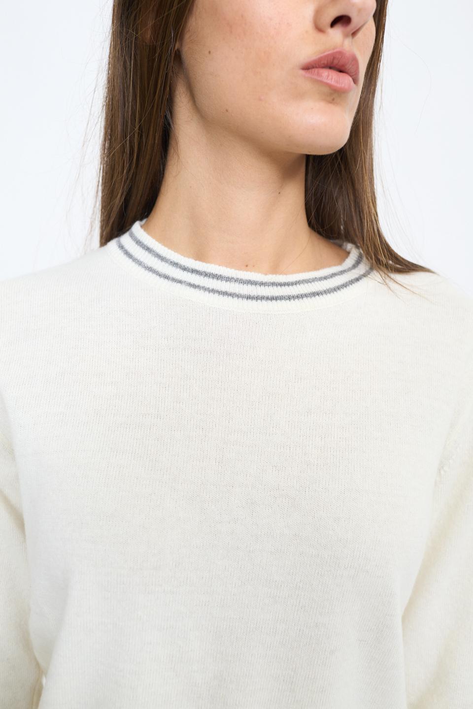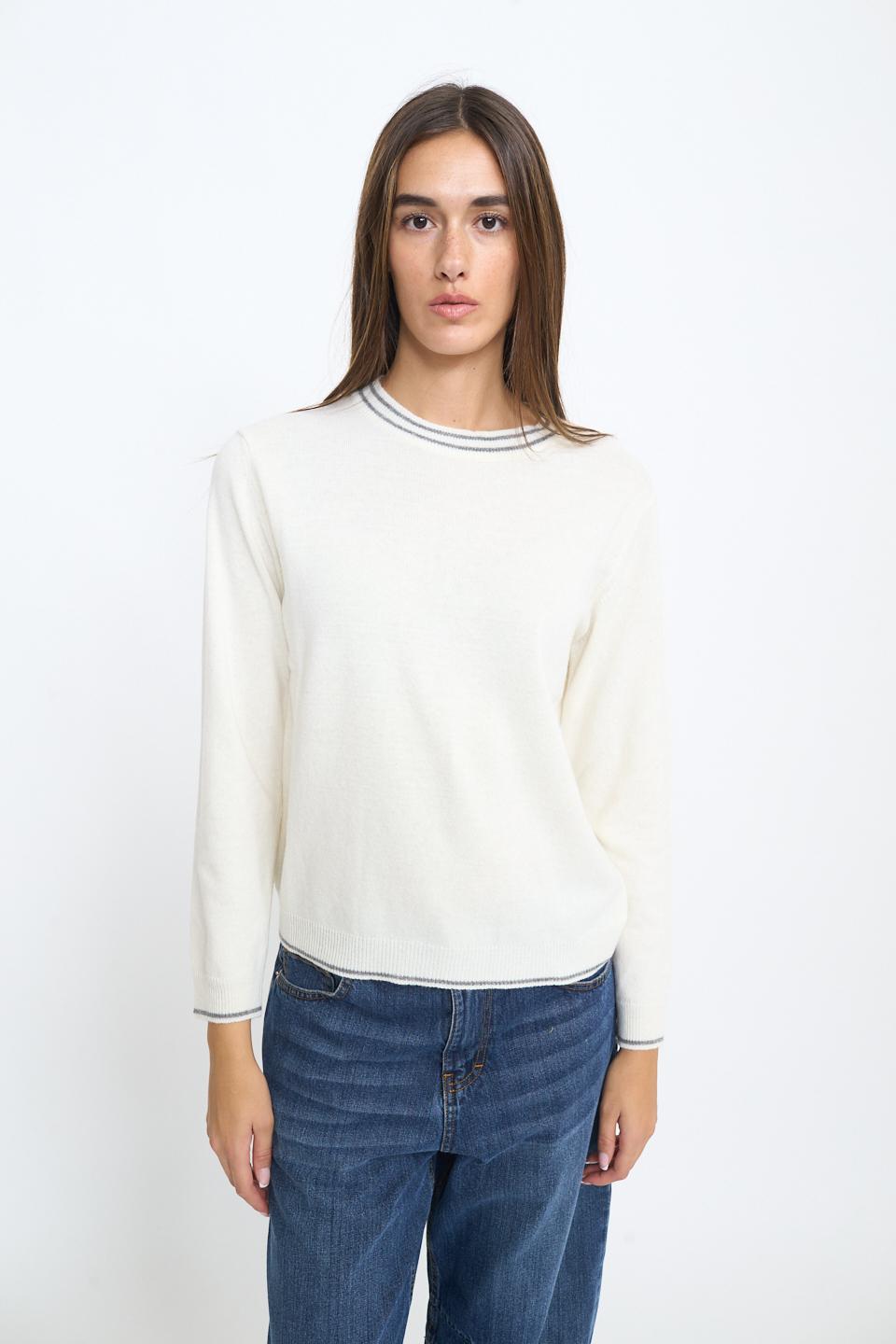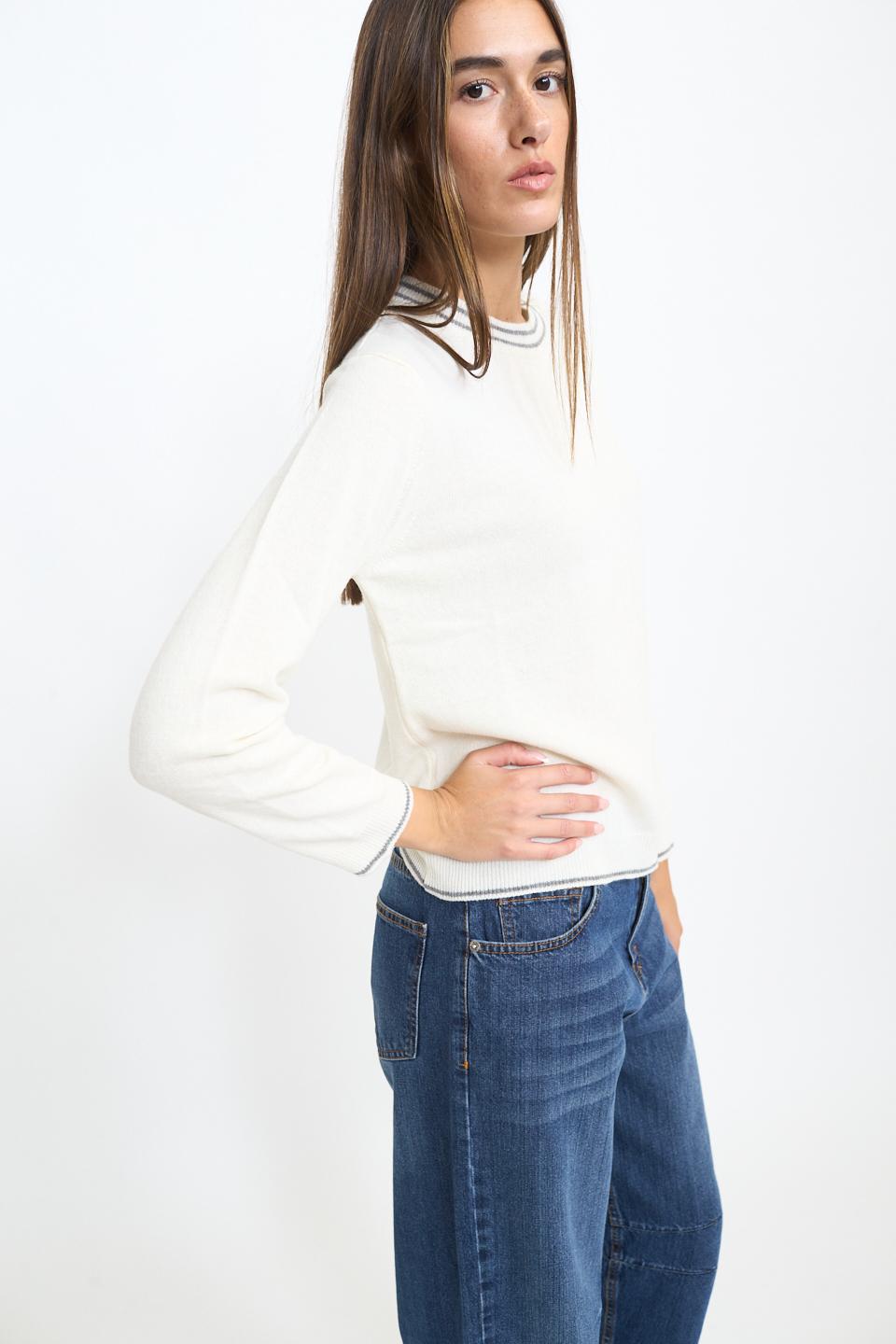 Maglia girocollo in misto cachemire con bordini a contrasto in misto lana. | ||