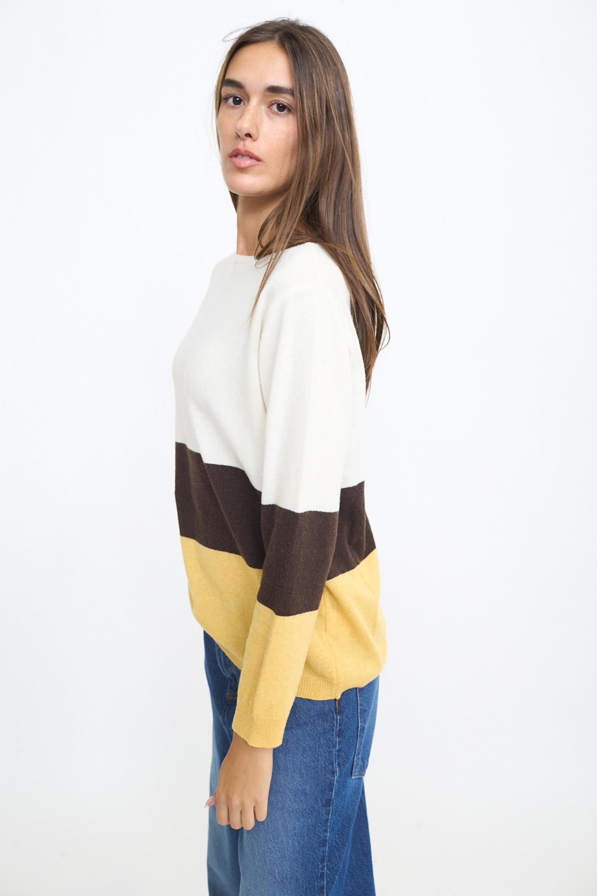| Maglia paricollo fascia bicolore in misto cachemire. | ||