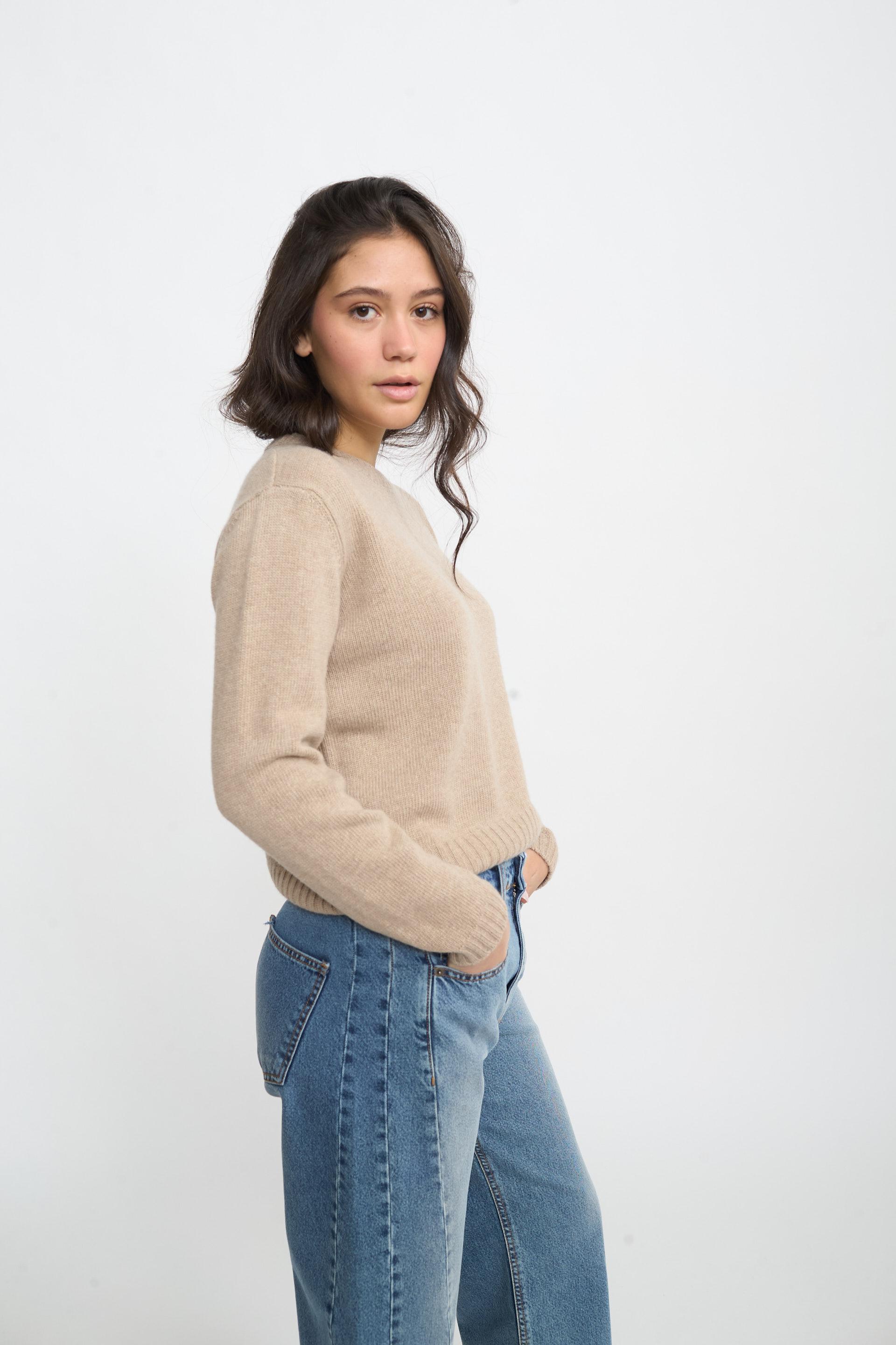 | Maglia girocollo in misto cachemire. Lavorazione a coste su scollo, polsini e orlo. | ||