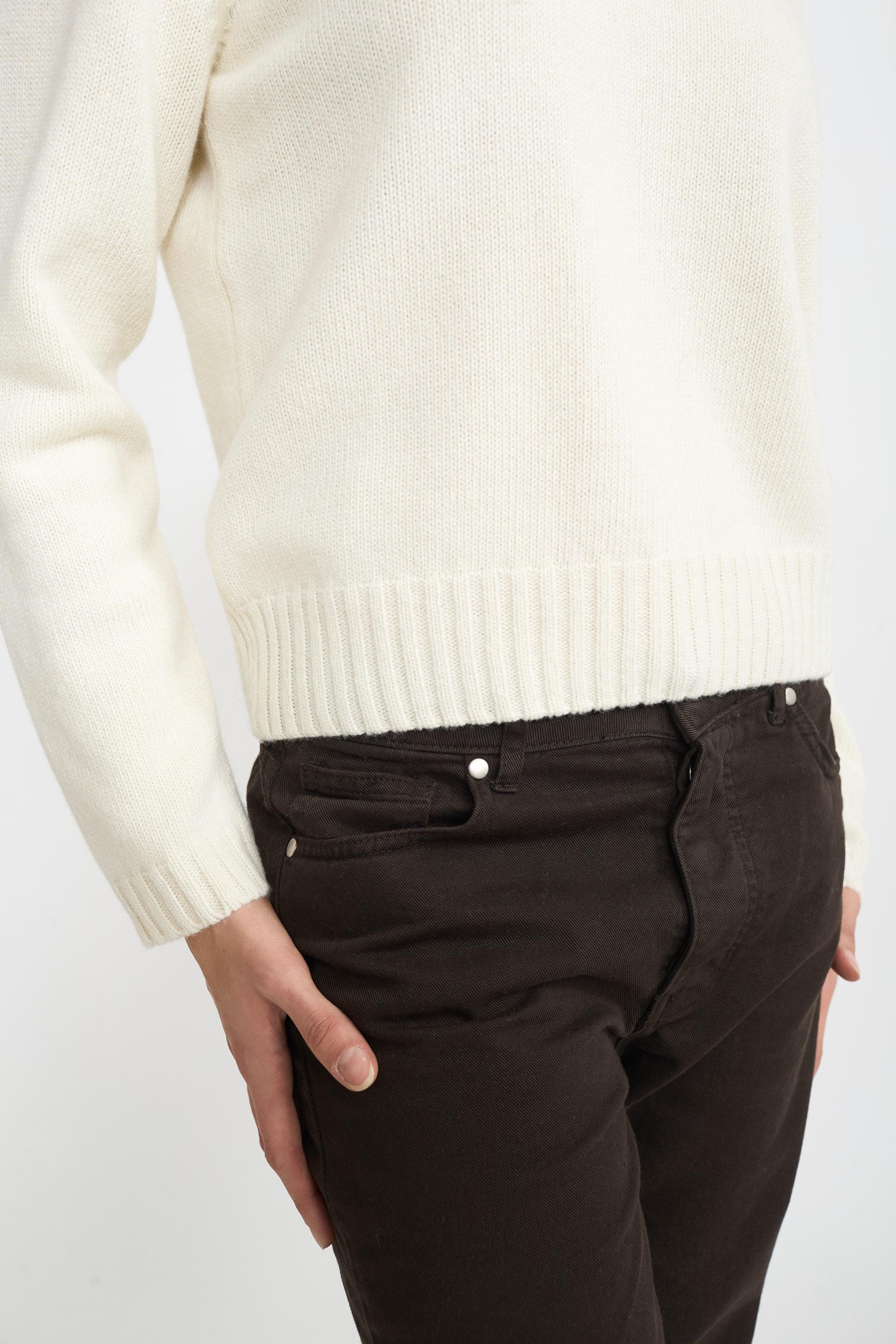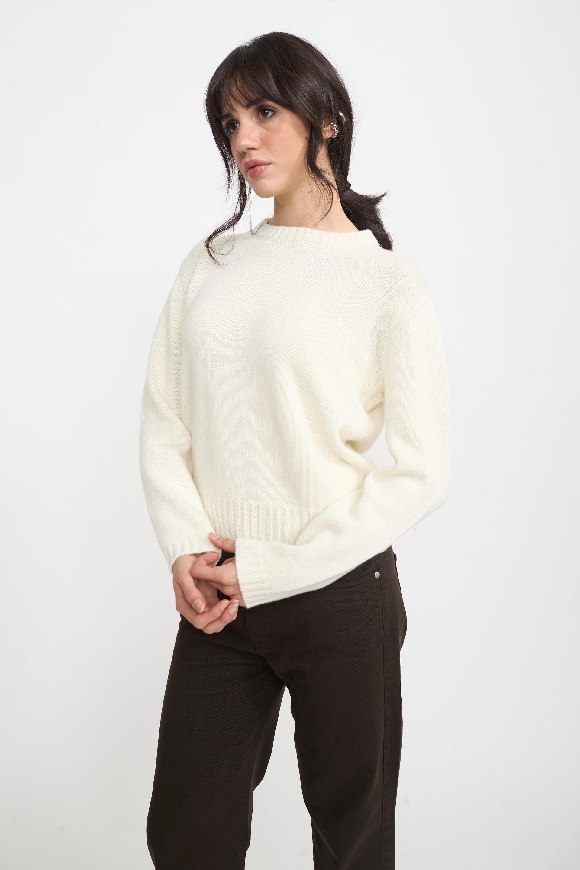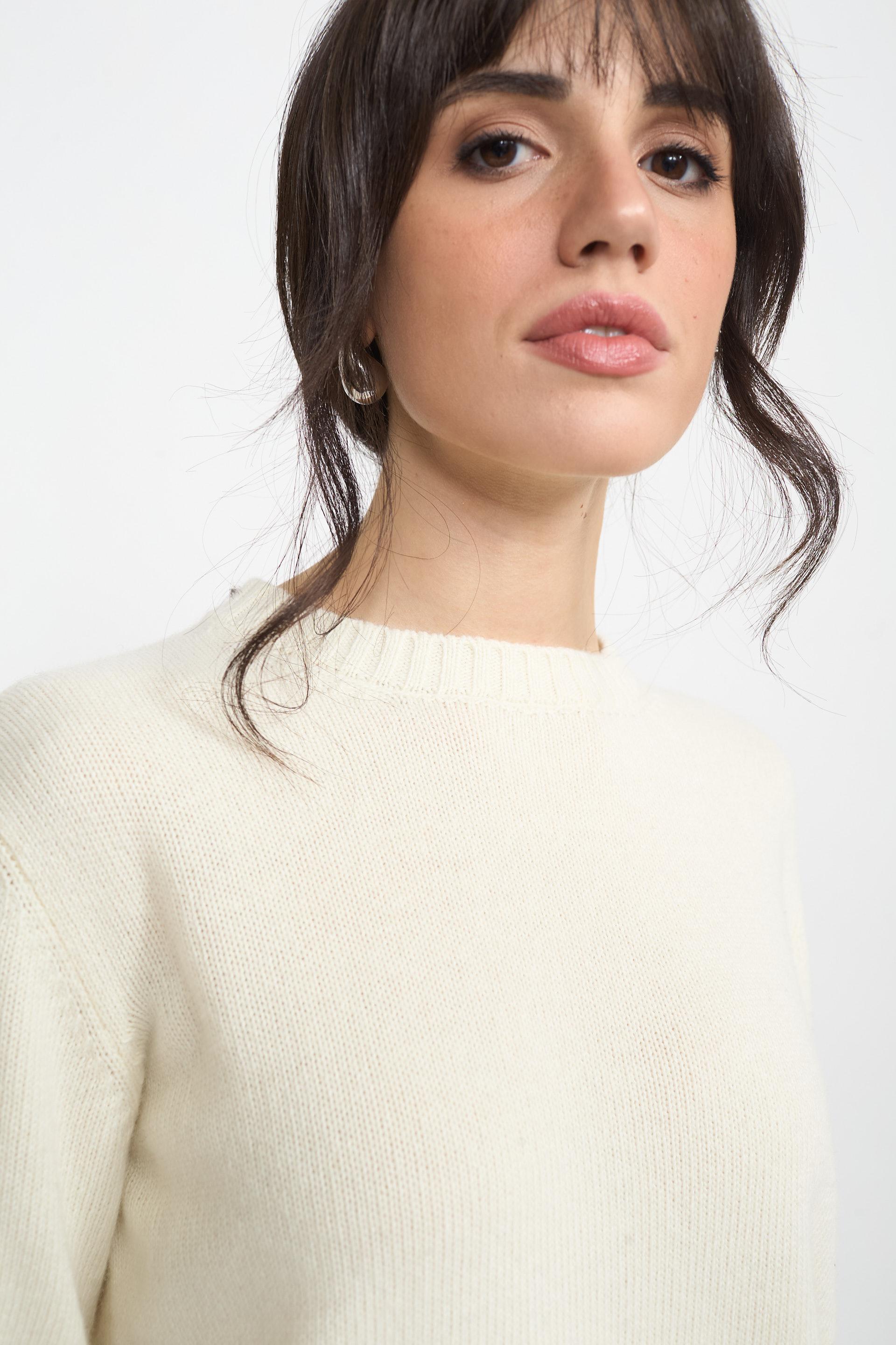 | Maglia girocollo in misto cachemire. Lavorazione a coste su scollo, polsini e orlo. | ||