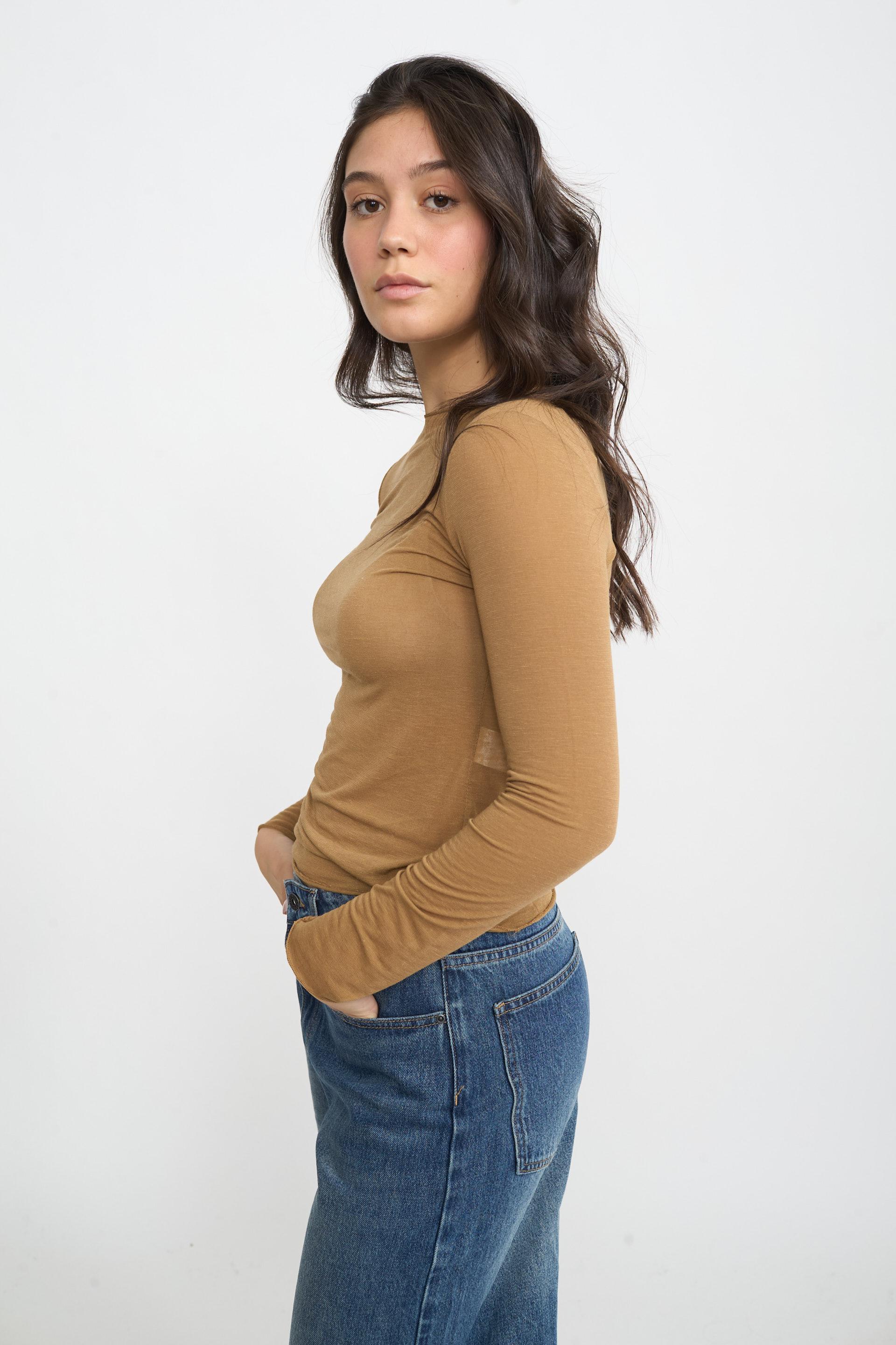 | Maglia girocollo tinta unita in misto cachemire. | ||