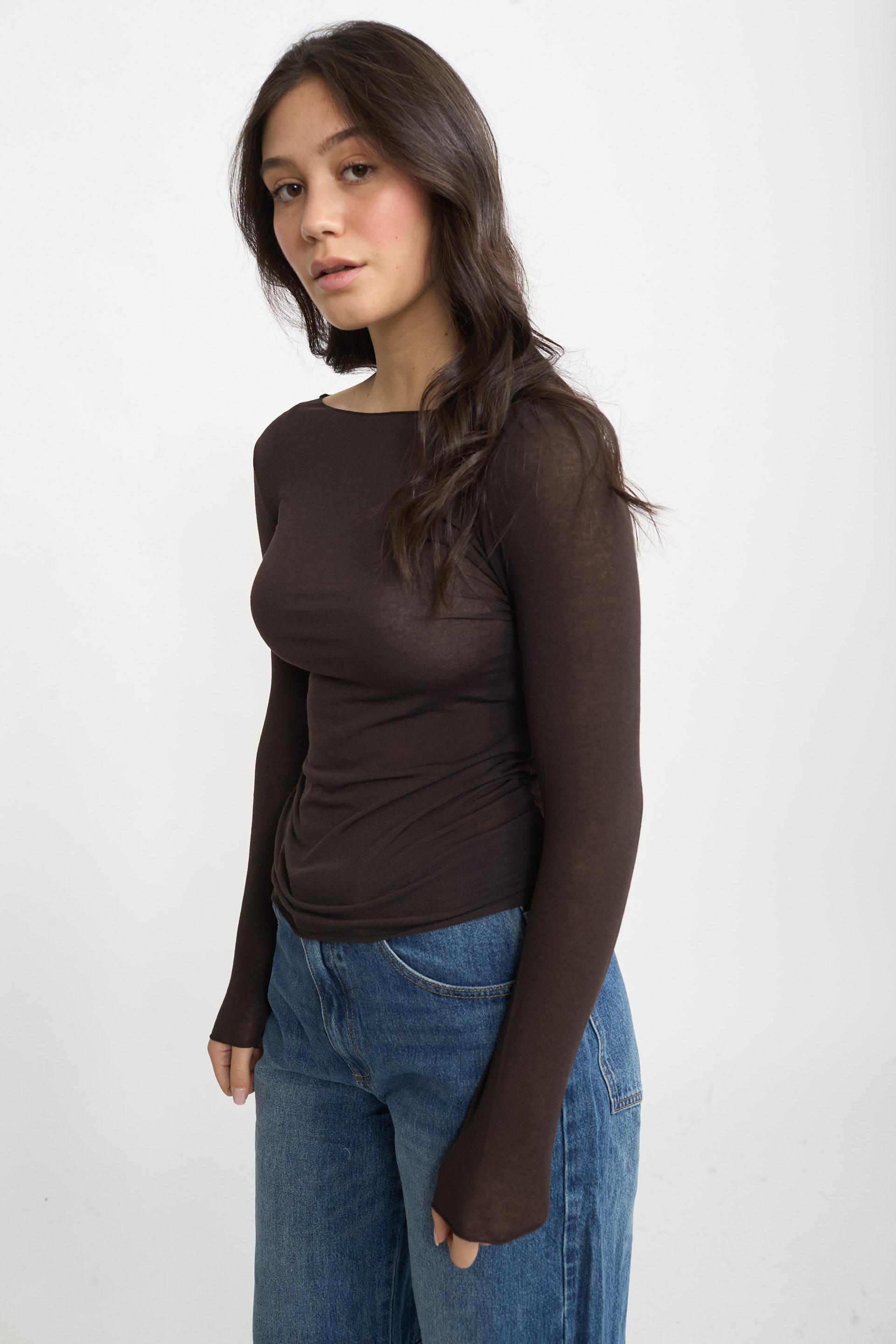 | Maglia girocollo tinta unita in misto cachemire. | ||