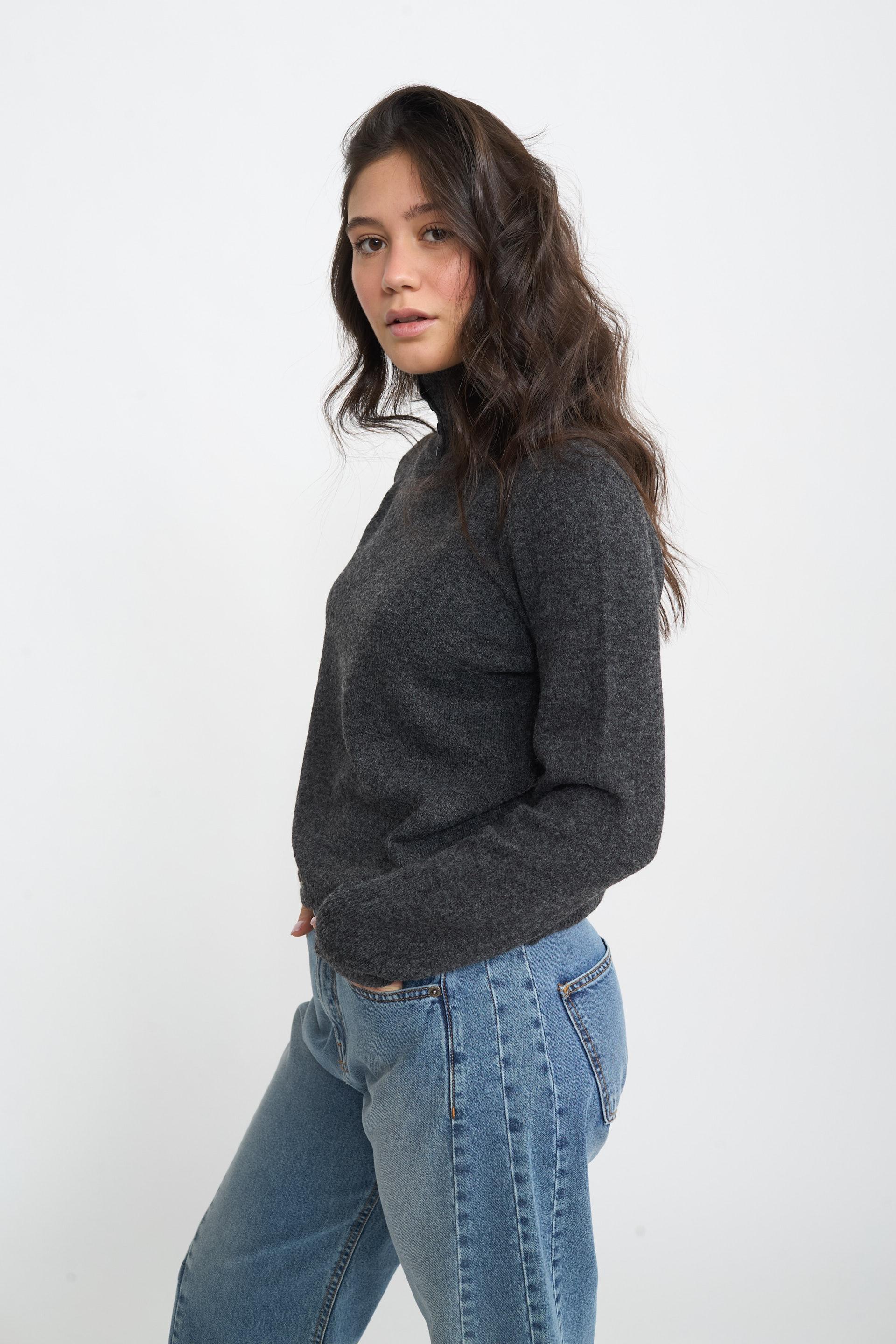 | Maglia collo alto con dettaglio di 4 bottoni squadrati tono su tono. | ||