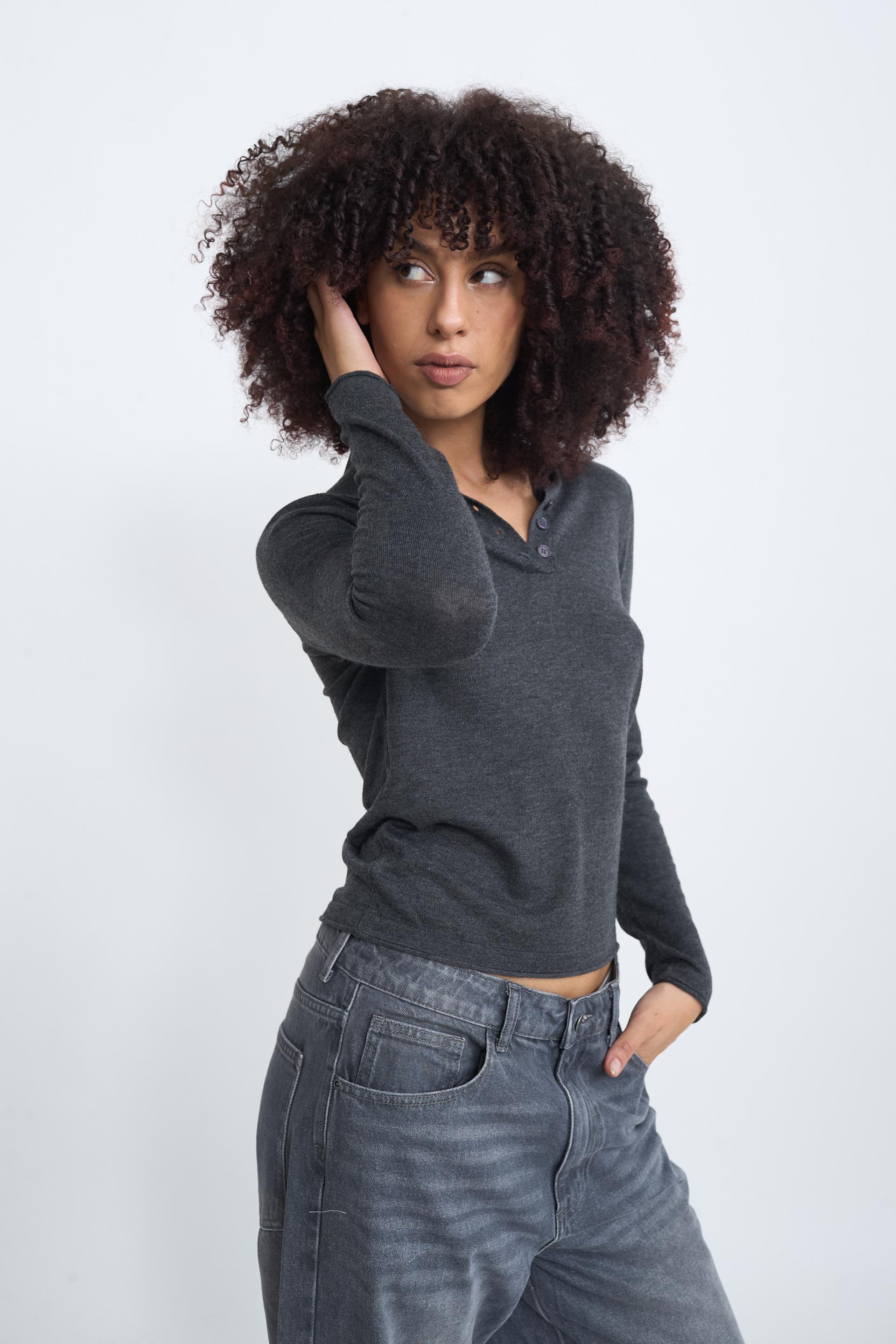 Maglia modello polo con scollatura con bottoni tono su tono. | ||