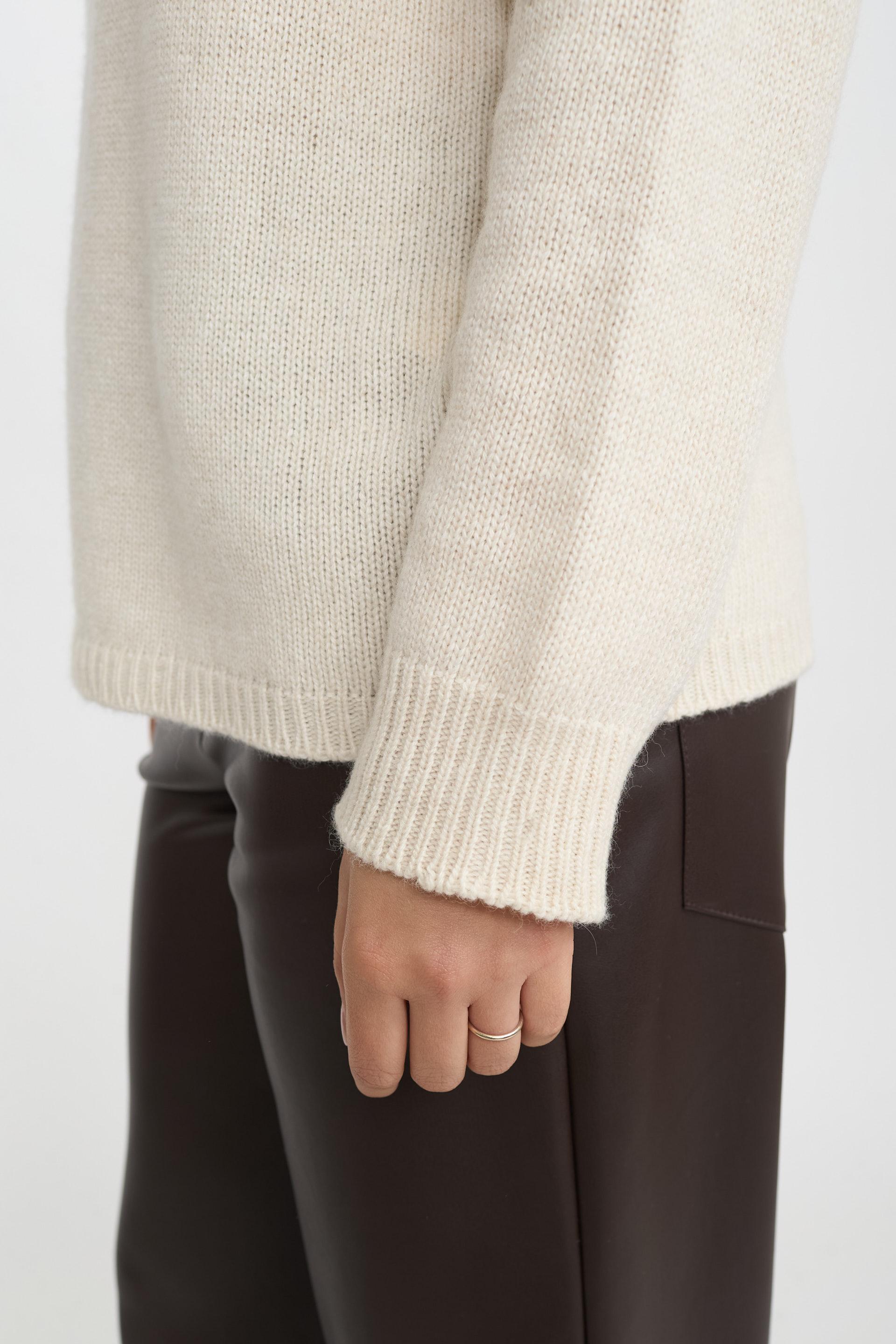 | Maglia collo alto a costine in misto lana con dettaglio di lavorazione a coste su collo, polsini e orlo. | ||
