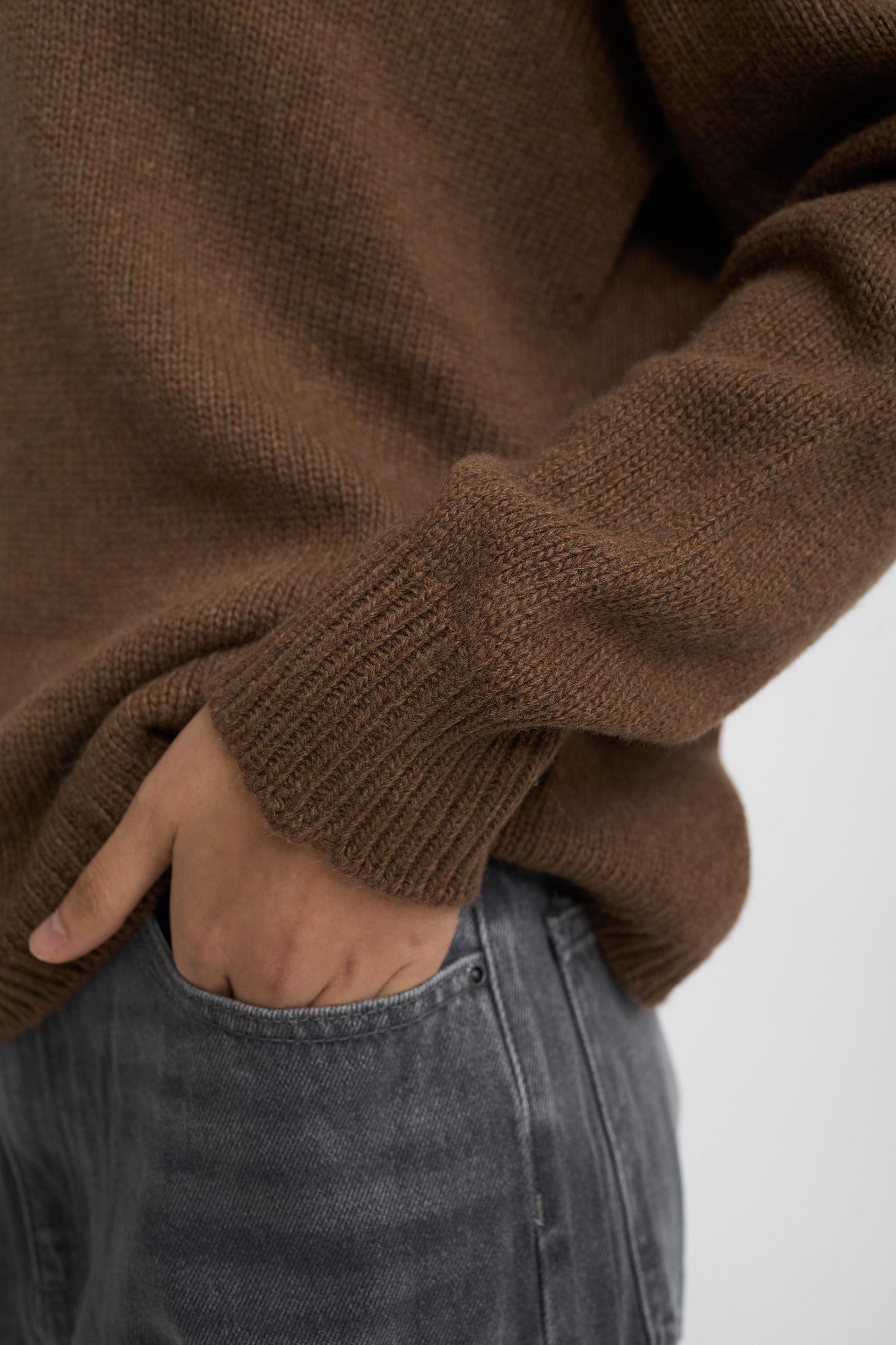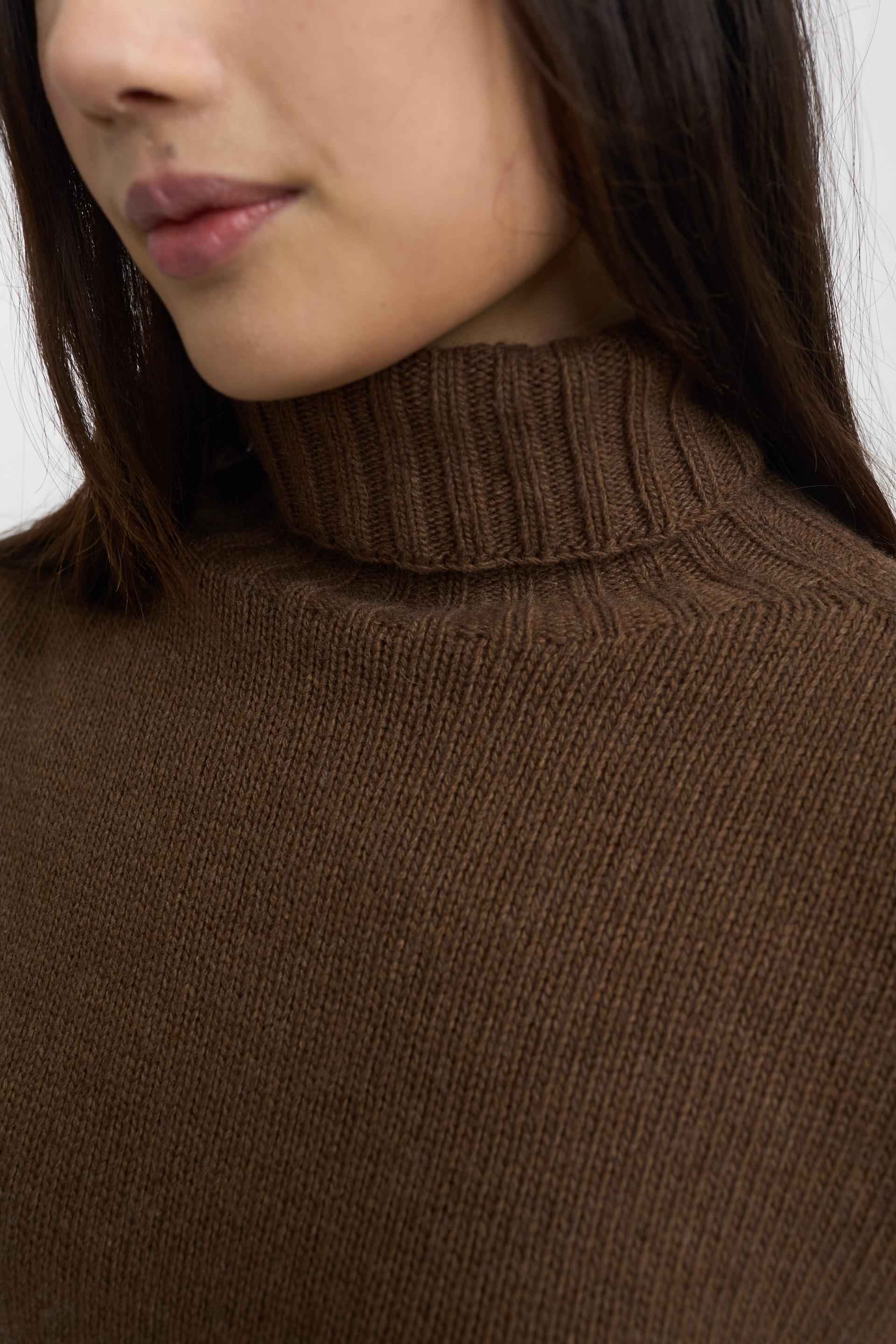 | Maglia collo alto a costine in misto lana con dettaglio di lavorazione a coste su collo, polsini e orlo. | ||