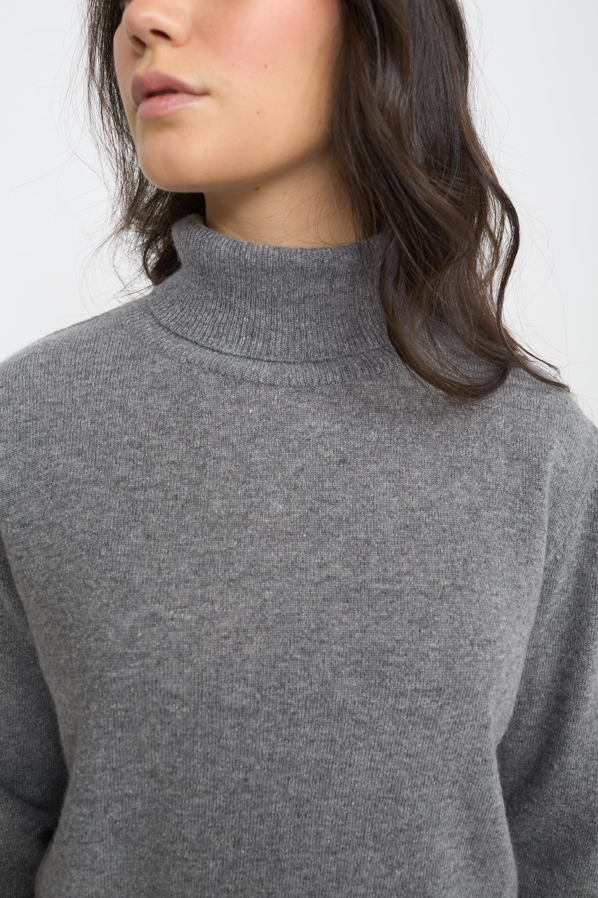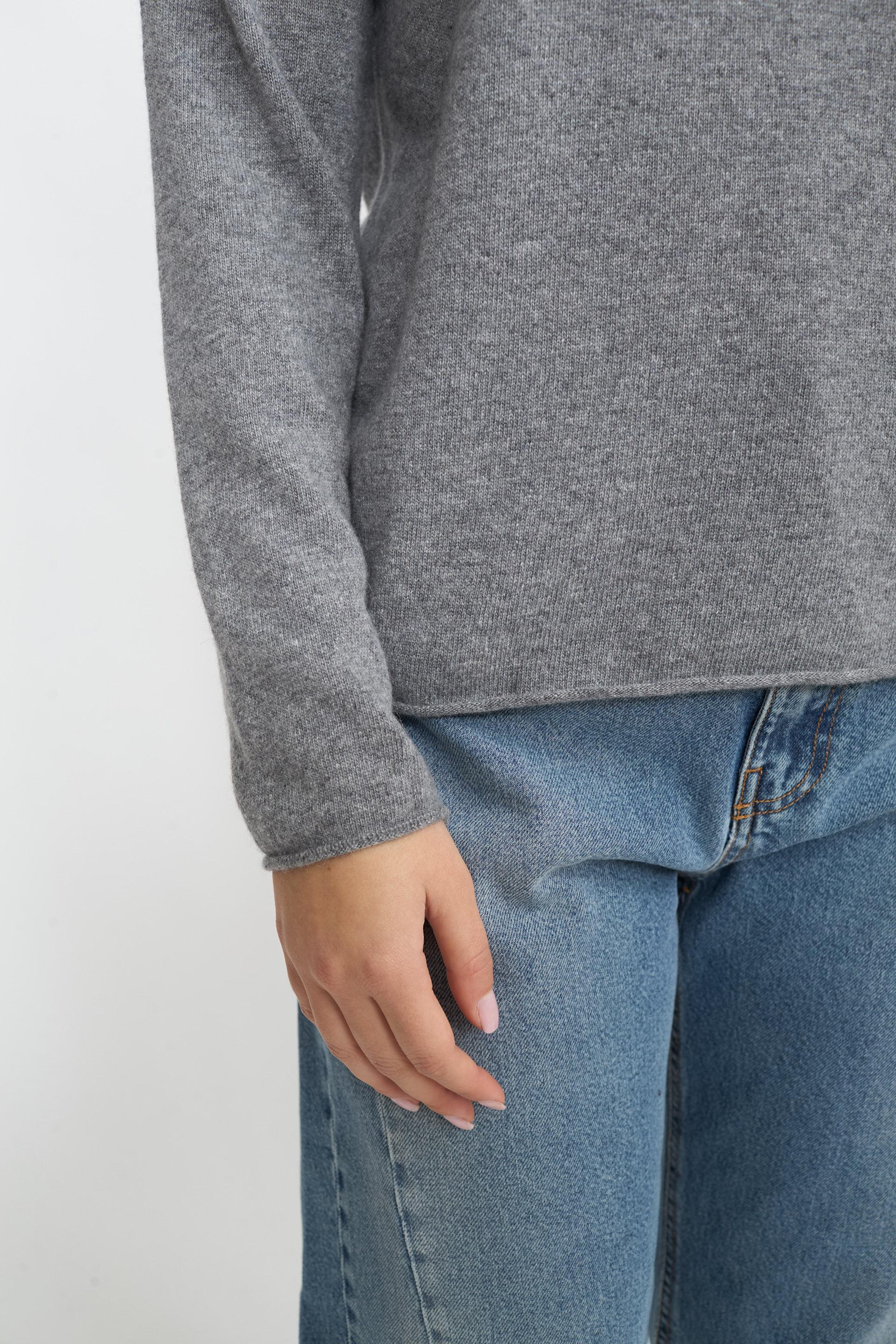 | Maglia a collo alto in misto cachemire con polsini e orlo a vivo. Dettaglio di lavorazione a costine su collo. | ||